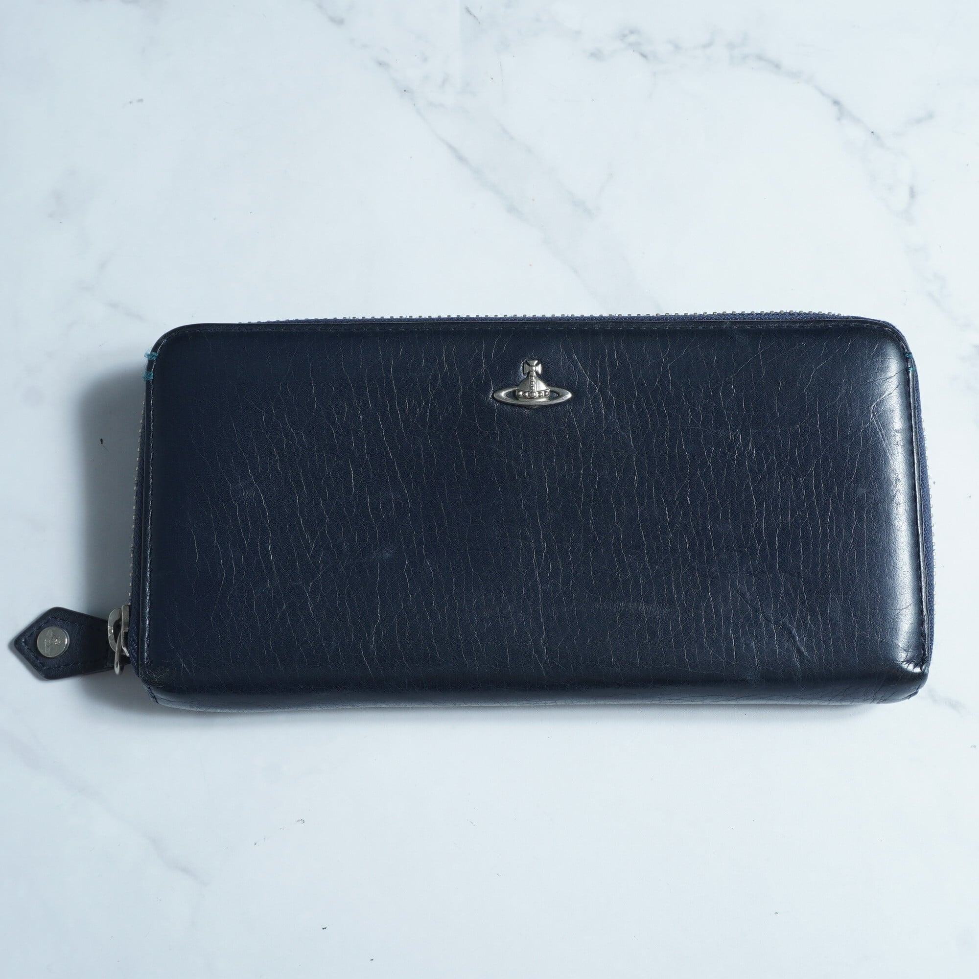 【Vivienne Westwood】ヴィヴィアンウエストウッド オーブモチーフ ラウンドジップスムースレザー長財布 navy
