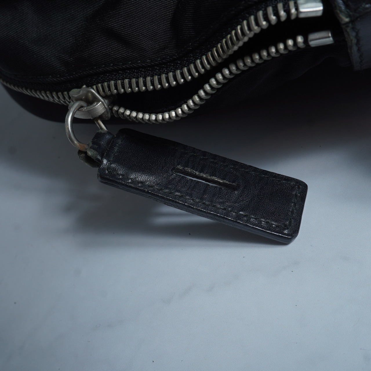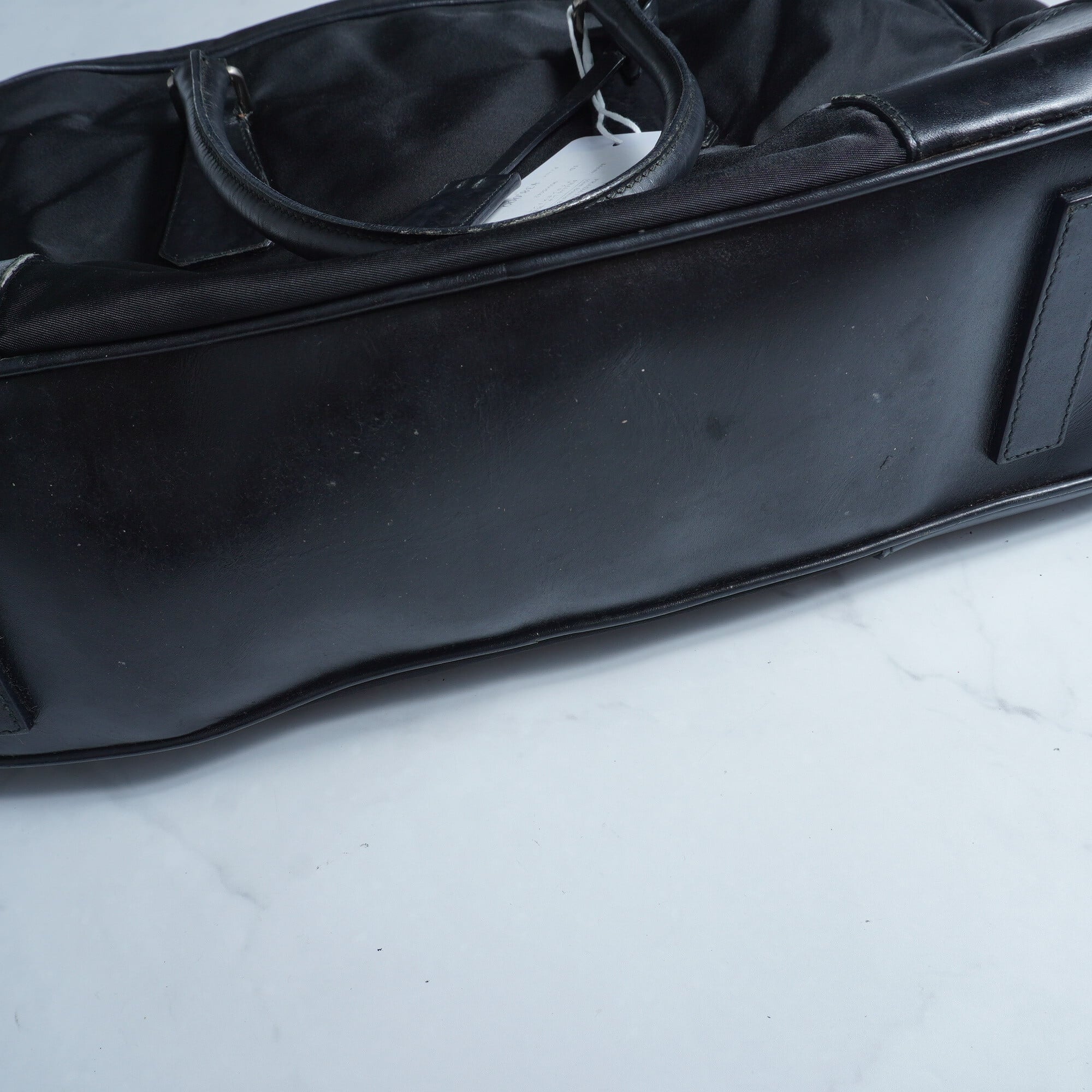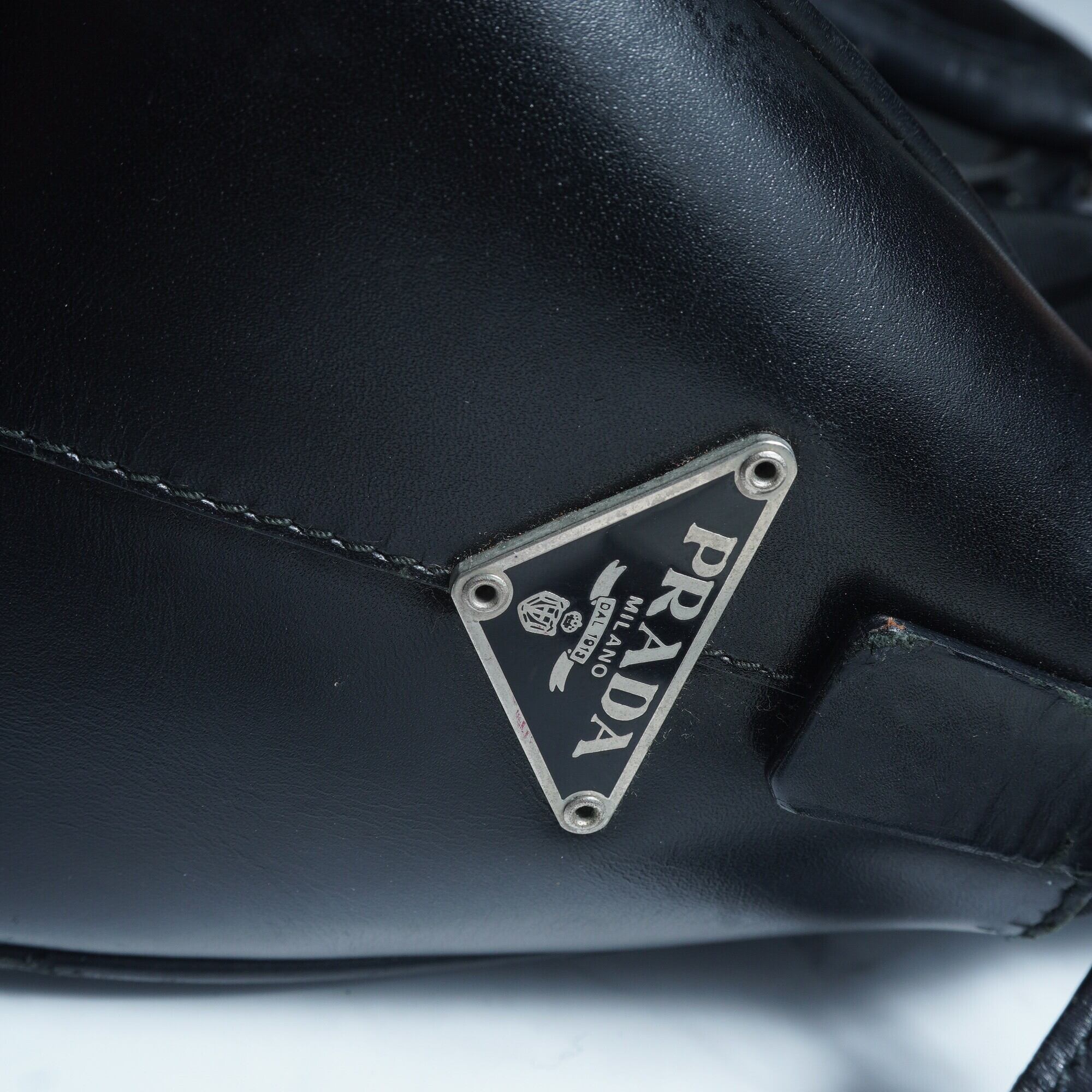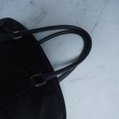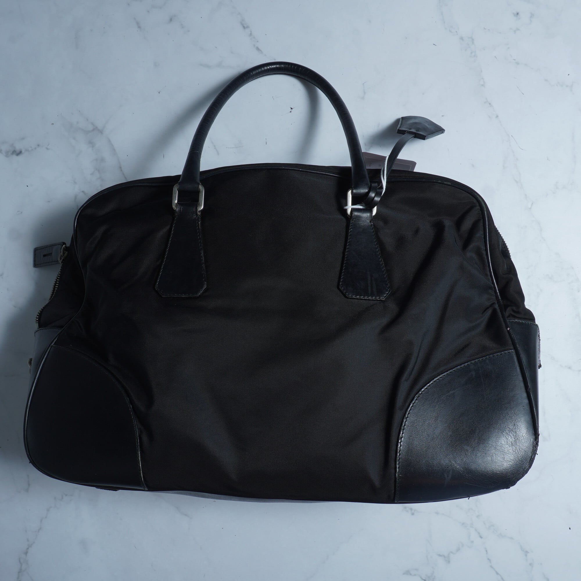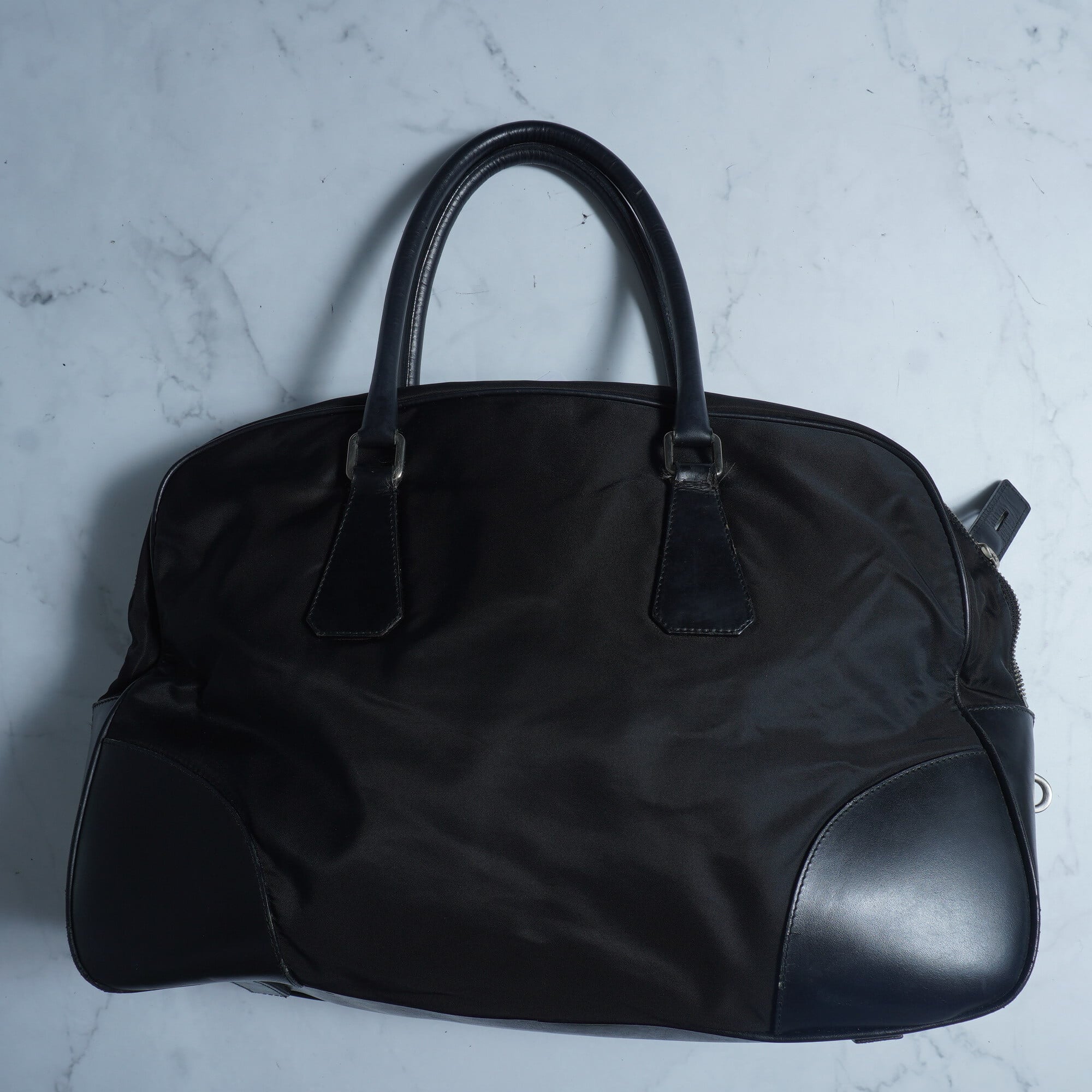 【PRADA】プラダ レザー切り替え三角プレートデザイン ナイロンボストンバッグ black