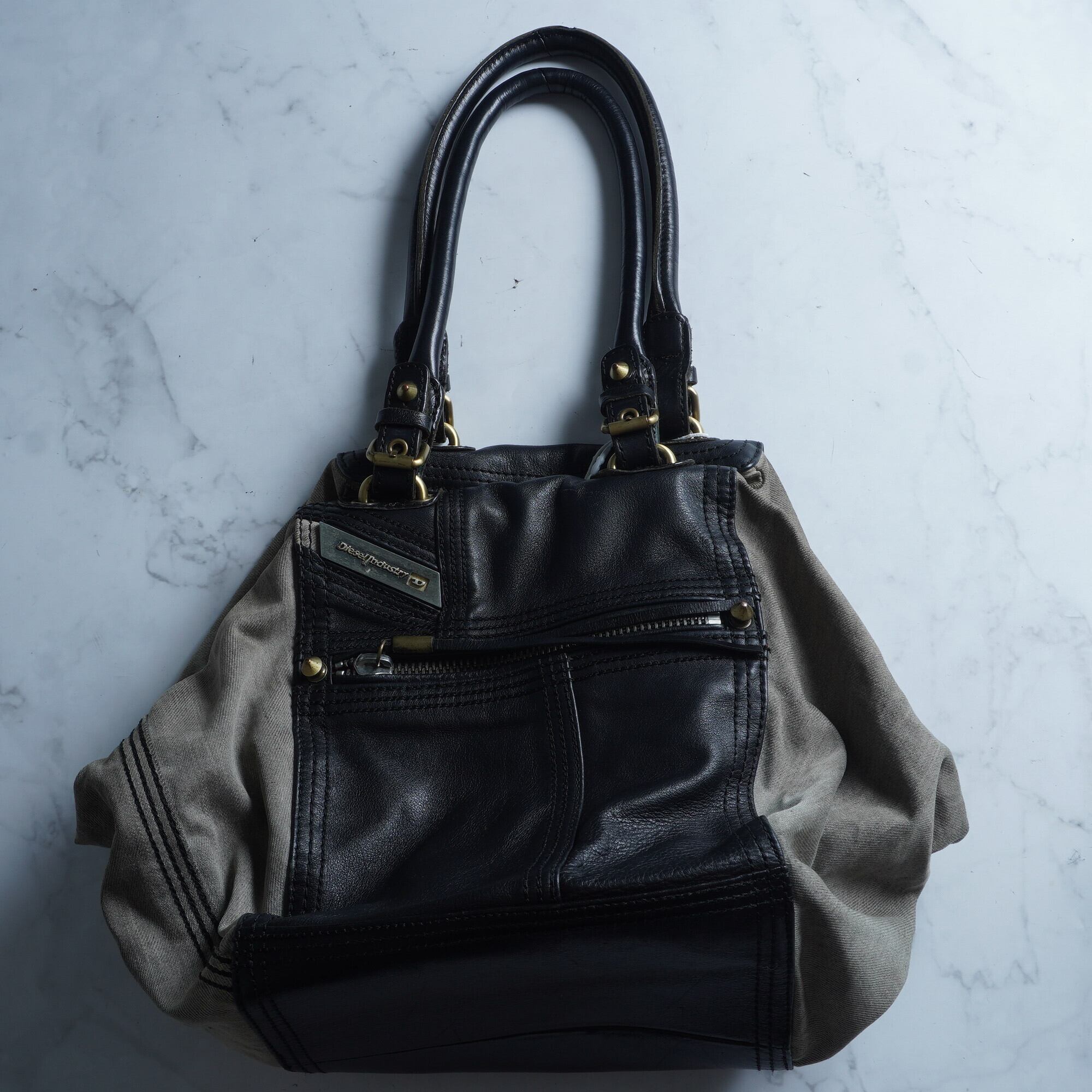 【DIESEL】ディーゼル 00's ARECHIVES レザー切替デニムボストンバッグ black