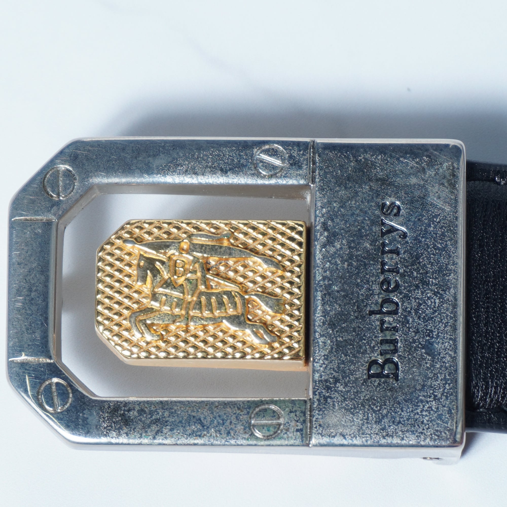 【BURBERRY】バーバリー ゴールドホースロゴ シルバーバックルベルト black