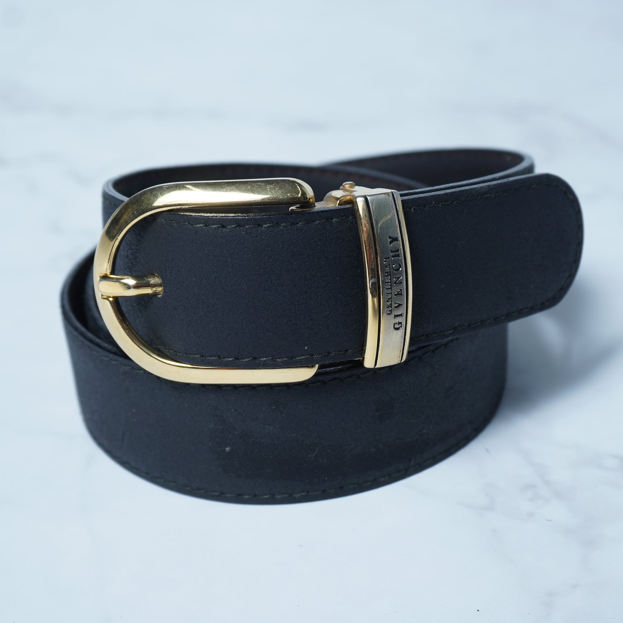 【GIVENCHY】ジバンシー ”ロゴ入” ゴールドバックルレザーベルト black