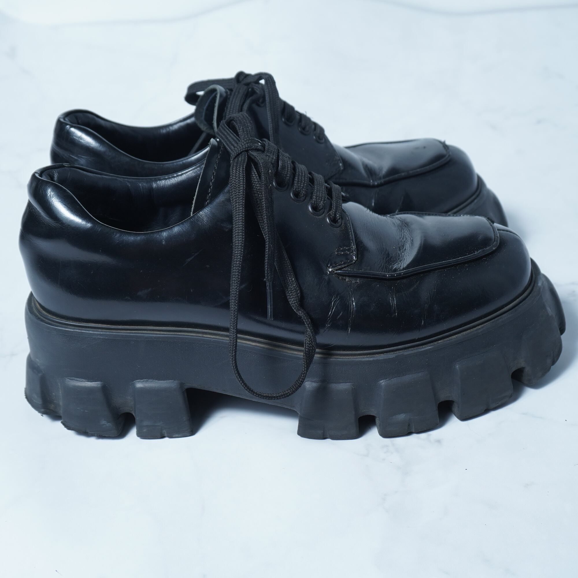 【PRADA】プラダ "ARCHIVE" レザー厚底シューズ black
