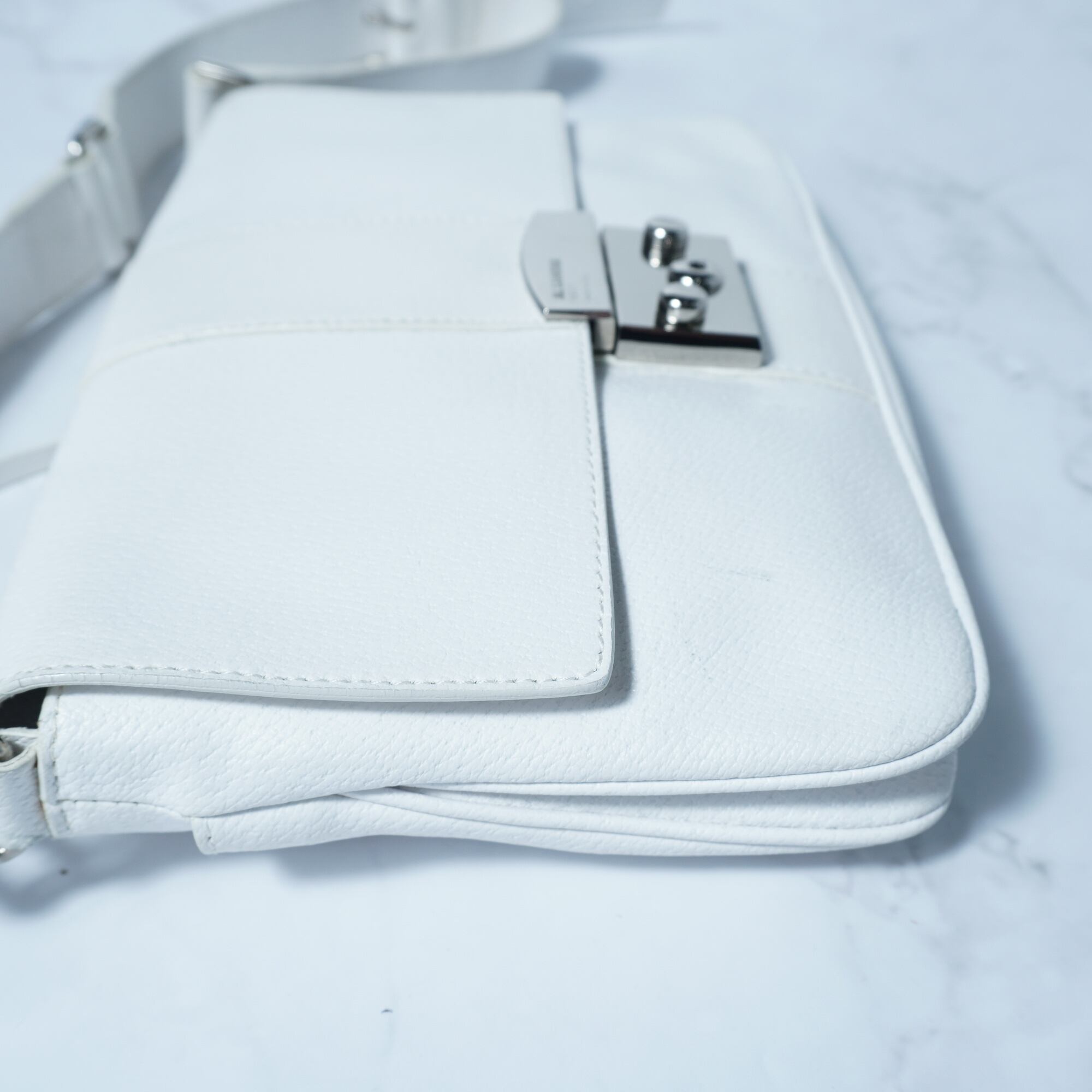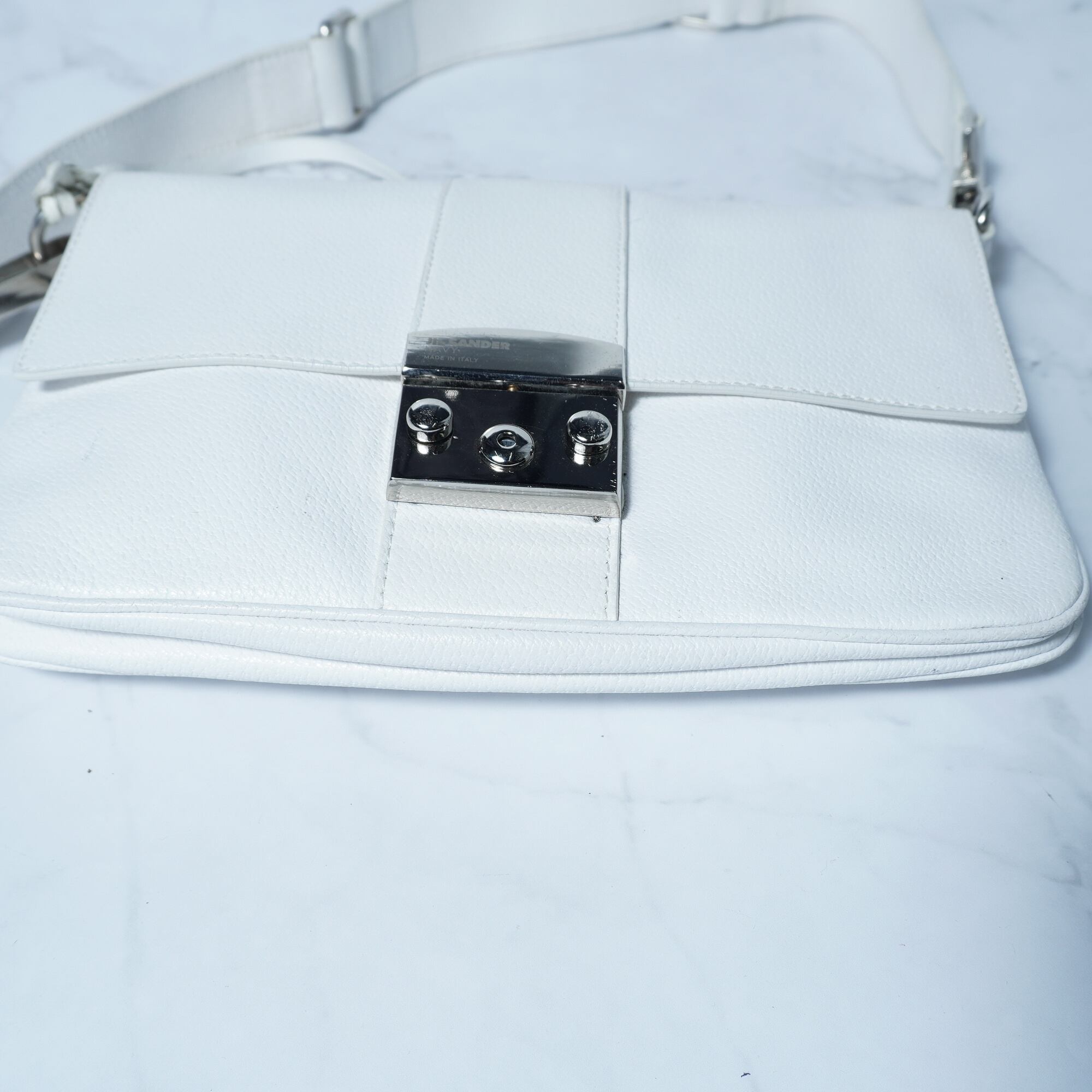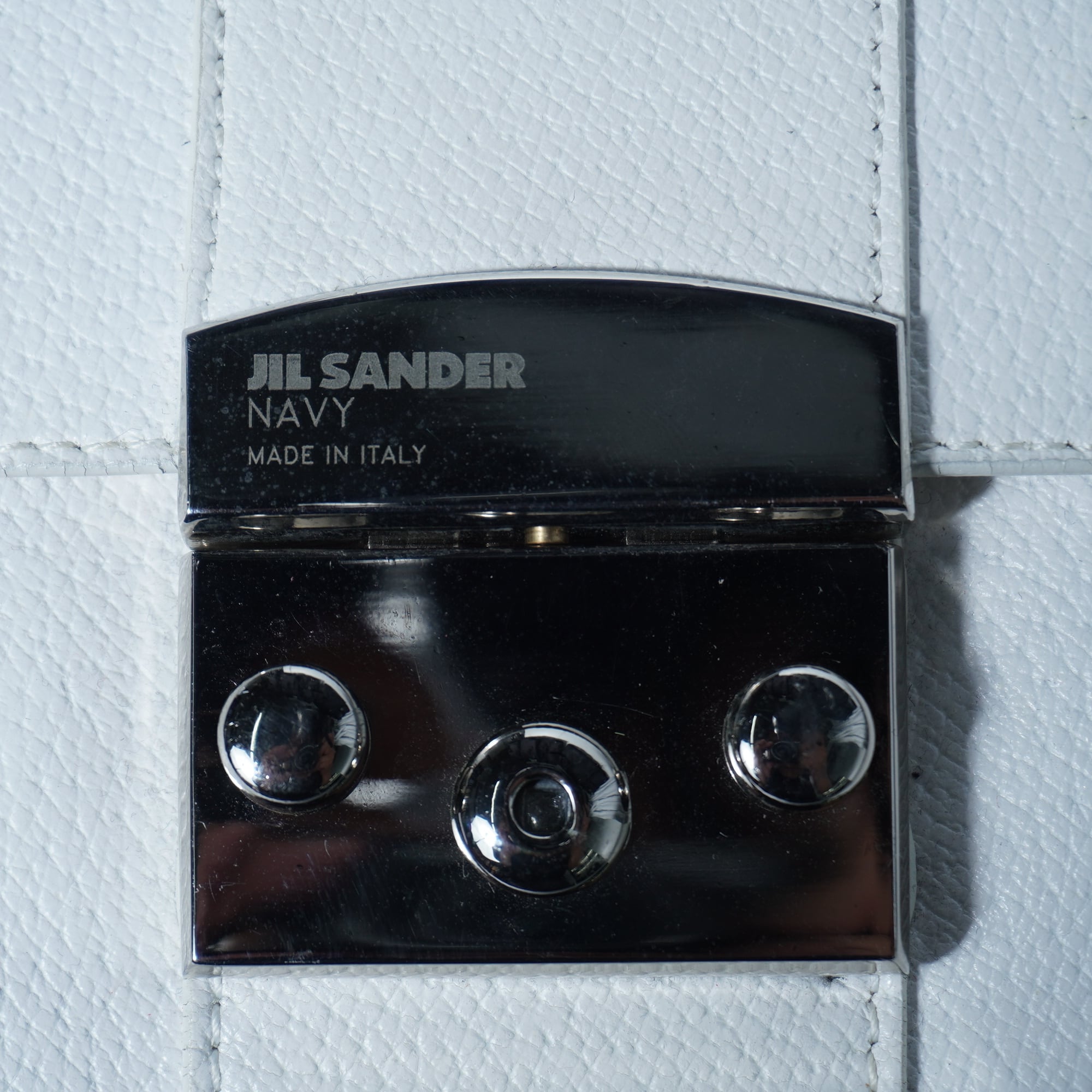 【JIL SANDER】ジルサンダー ロゴ入 シルバーバックルレザーショルダーバッグ white