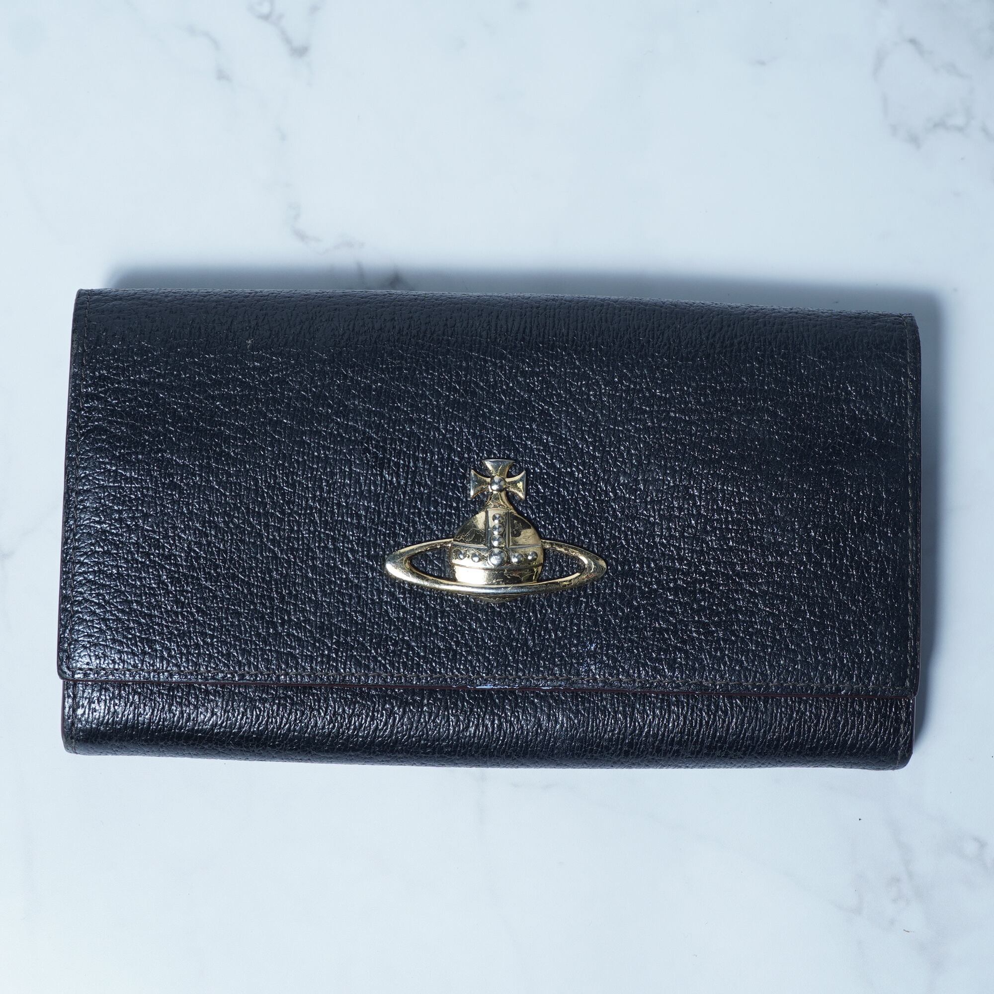 【Vivienne Westwood】ヴィヴィアンウエストウッド ”ゴールドオーブロゴ”シボレザーロングウォレット black