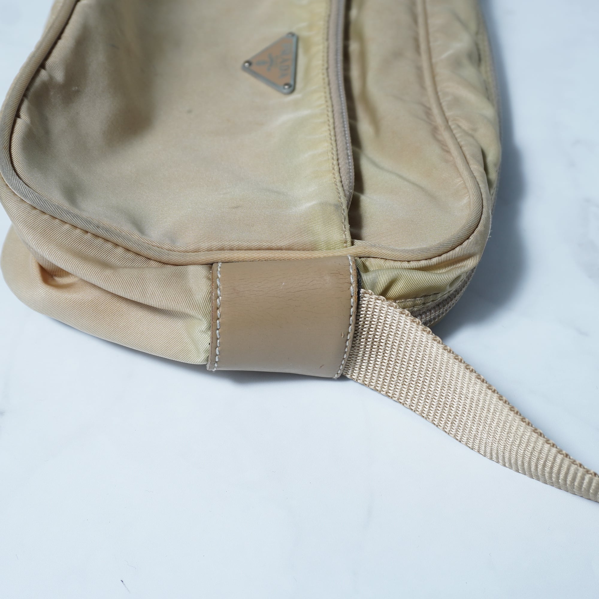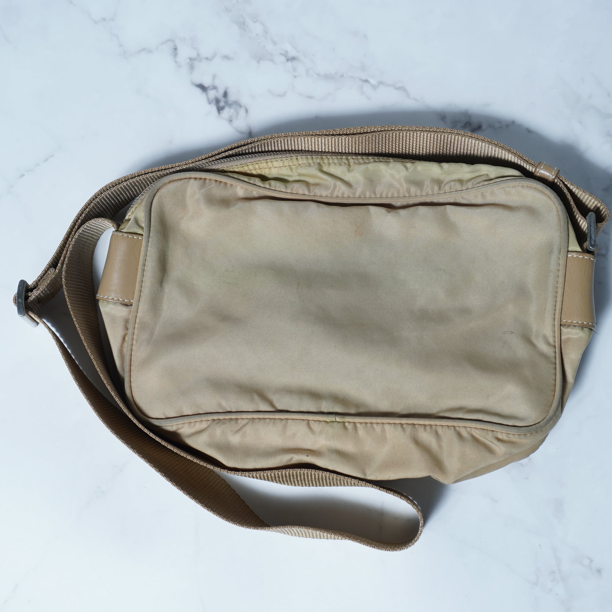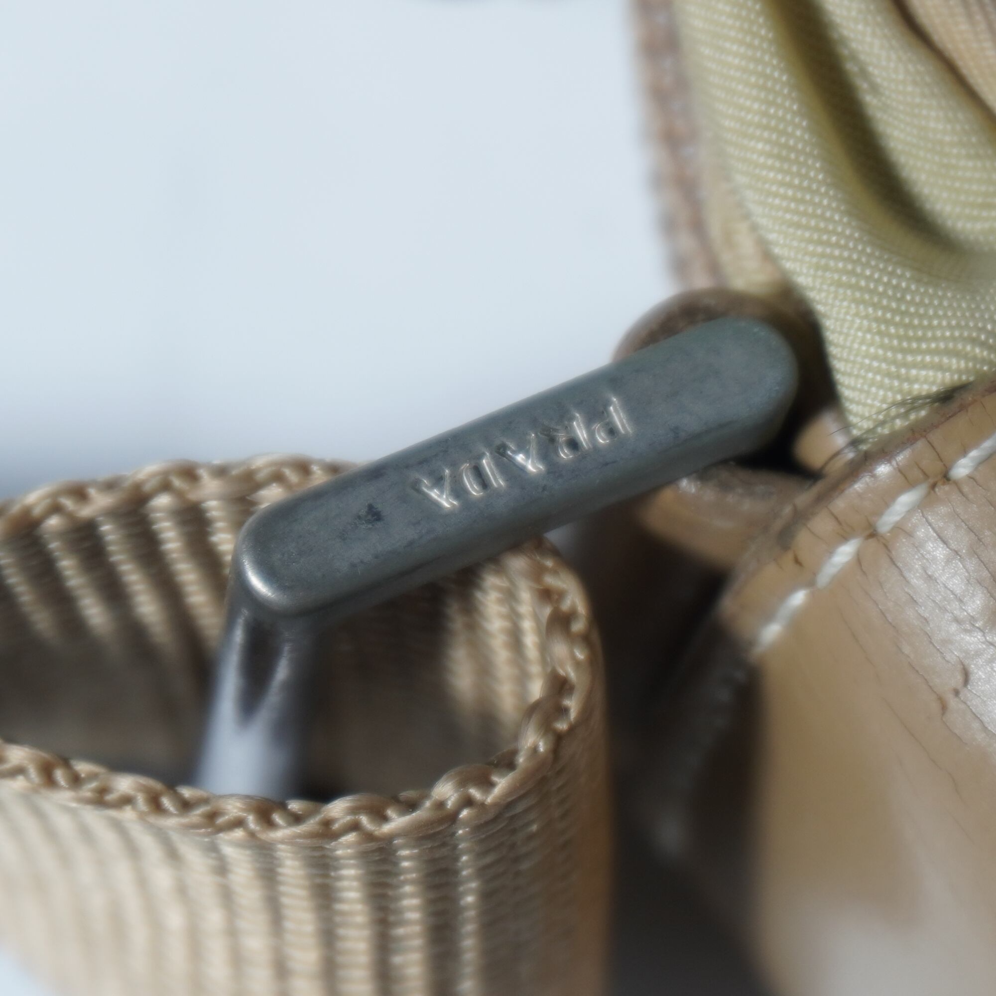 【PRADA】プラダ "三角プレートロゴ”レザー切り替え高密度ナイロンショルダーバッグ beige
