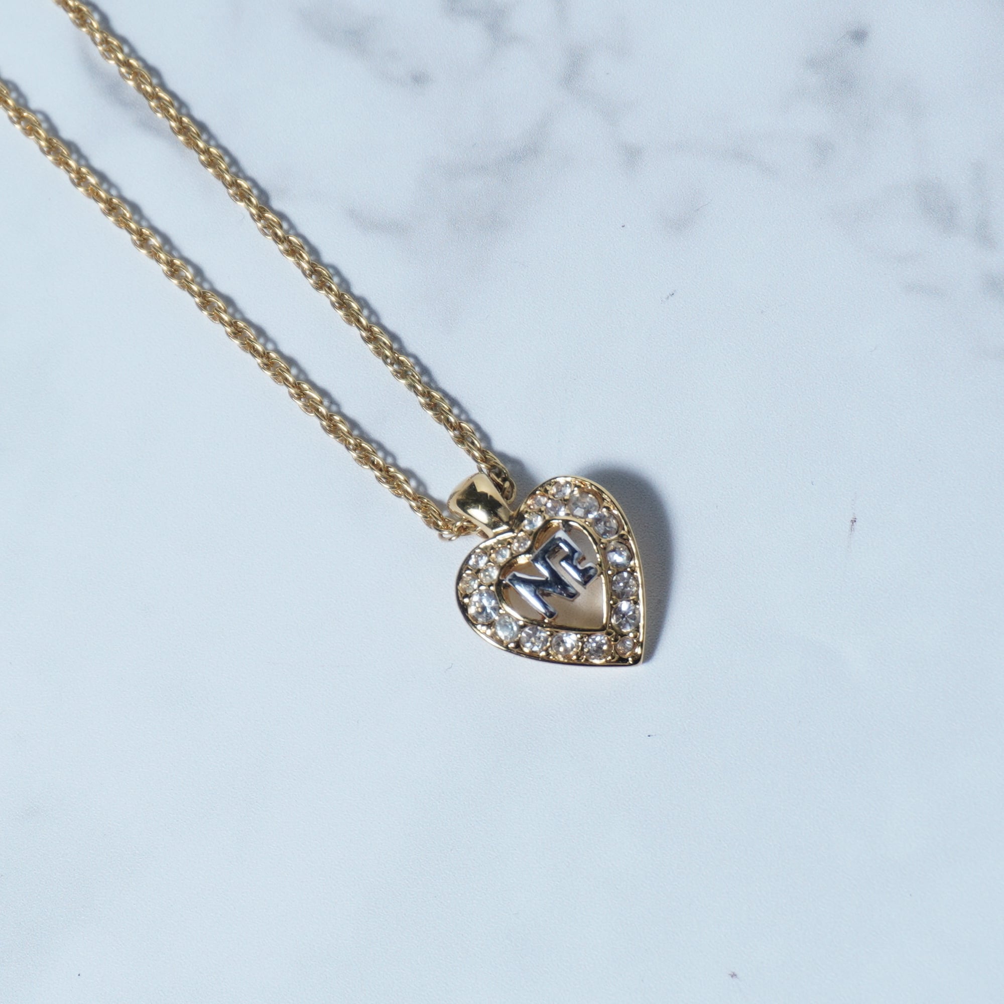 【NINA RICCI】ニナリッチ ラインストーンハートロゴネックレス gold