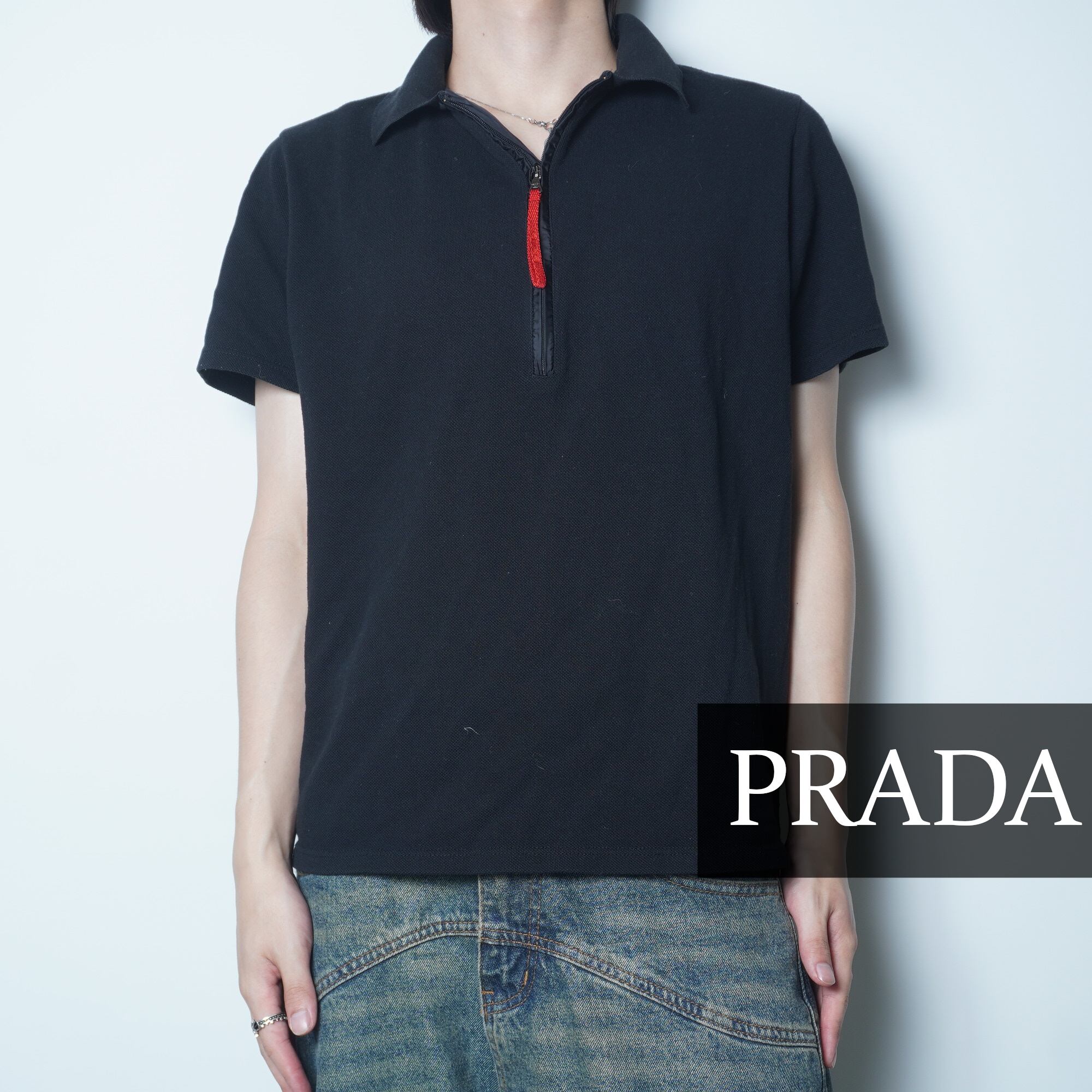 【PRADA】プラダ バックポケットデザイン ジップポロシャツ black