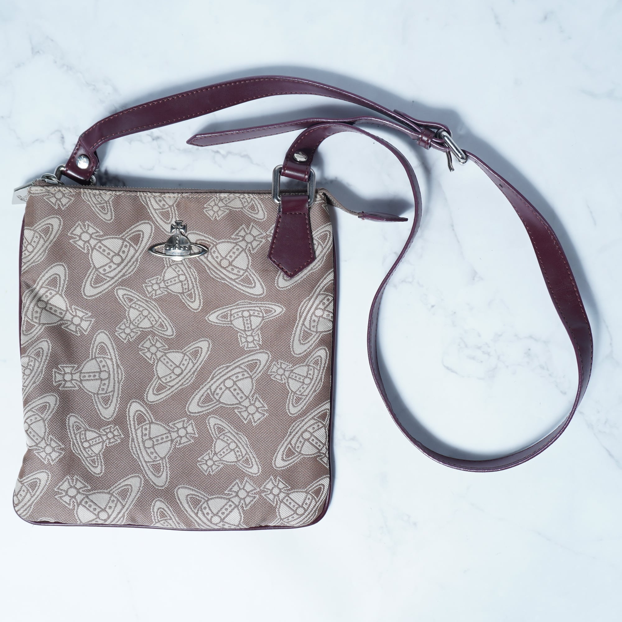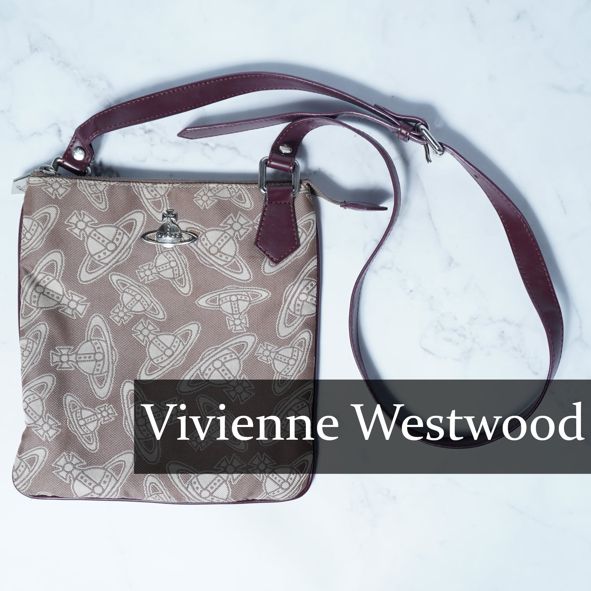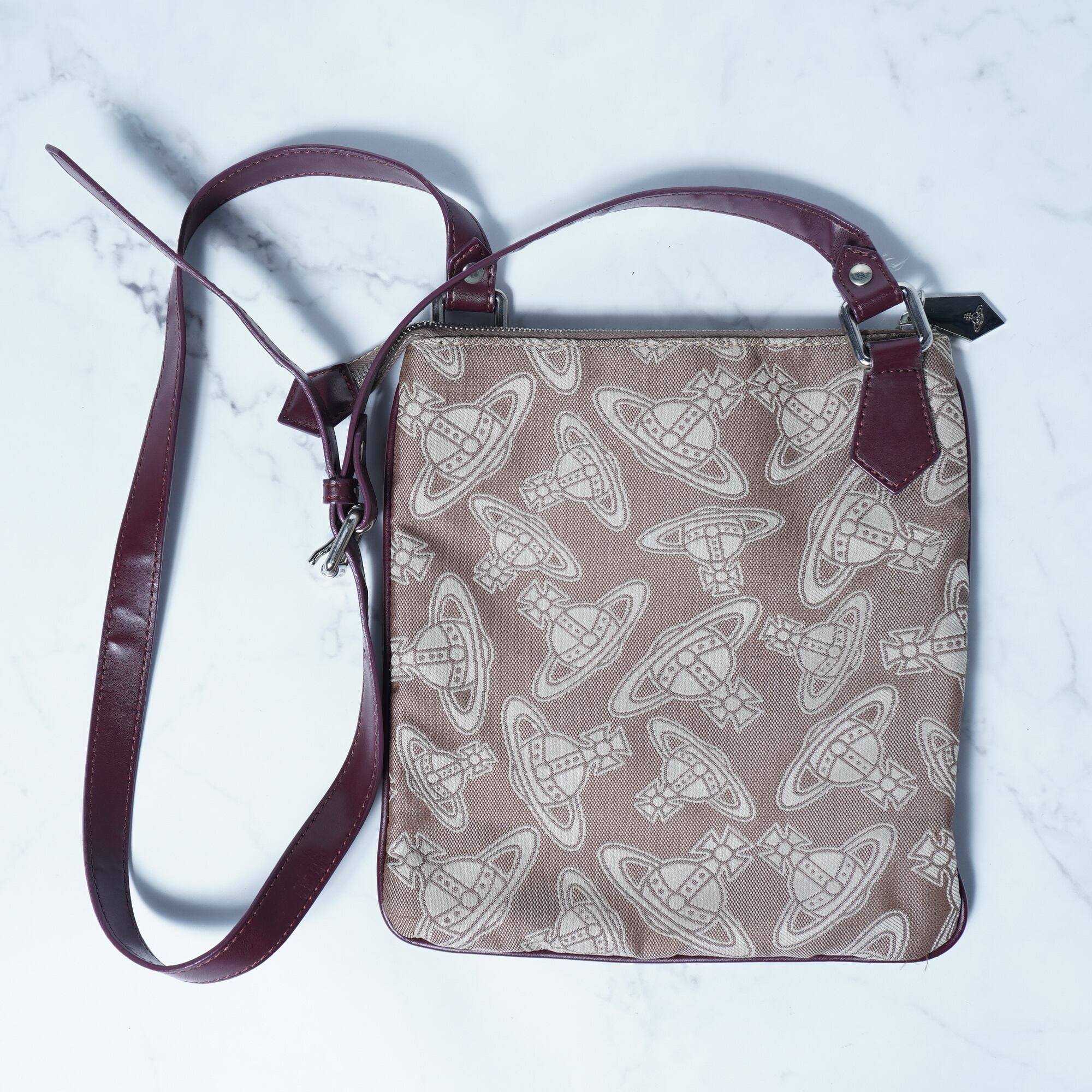 【Vivienne Westwood】ヴィヴィアンウエストウッド ”オーブロゴ”レザー切り替えキャンバスショルダーバッグ light brown