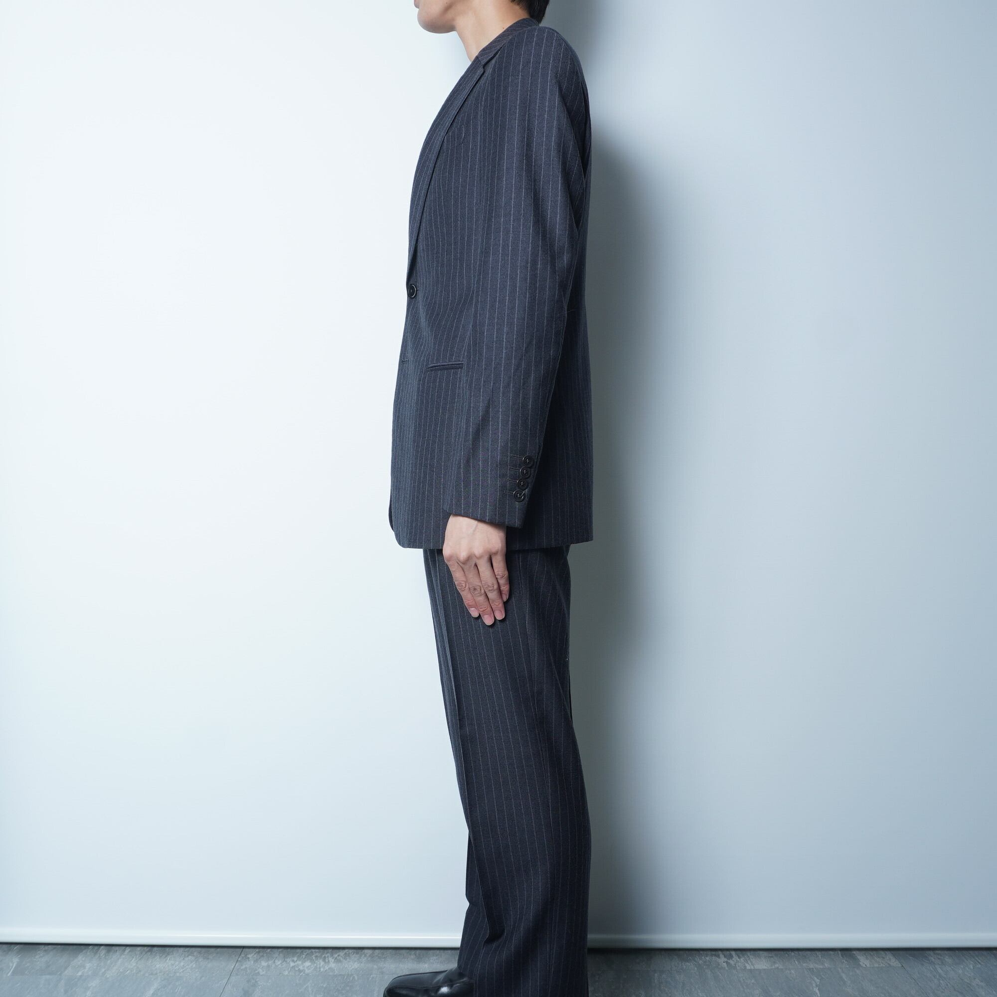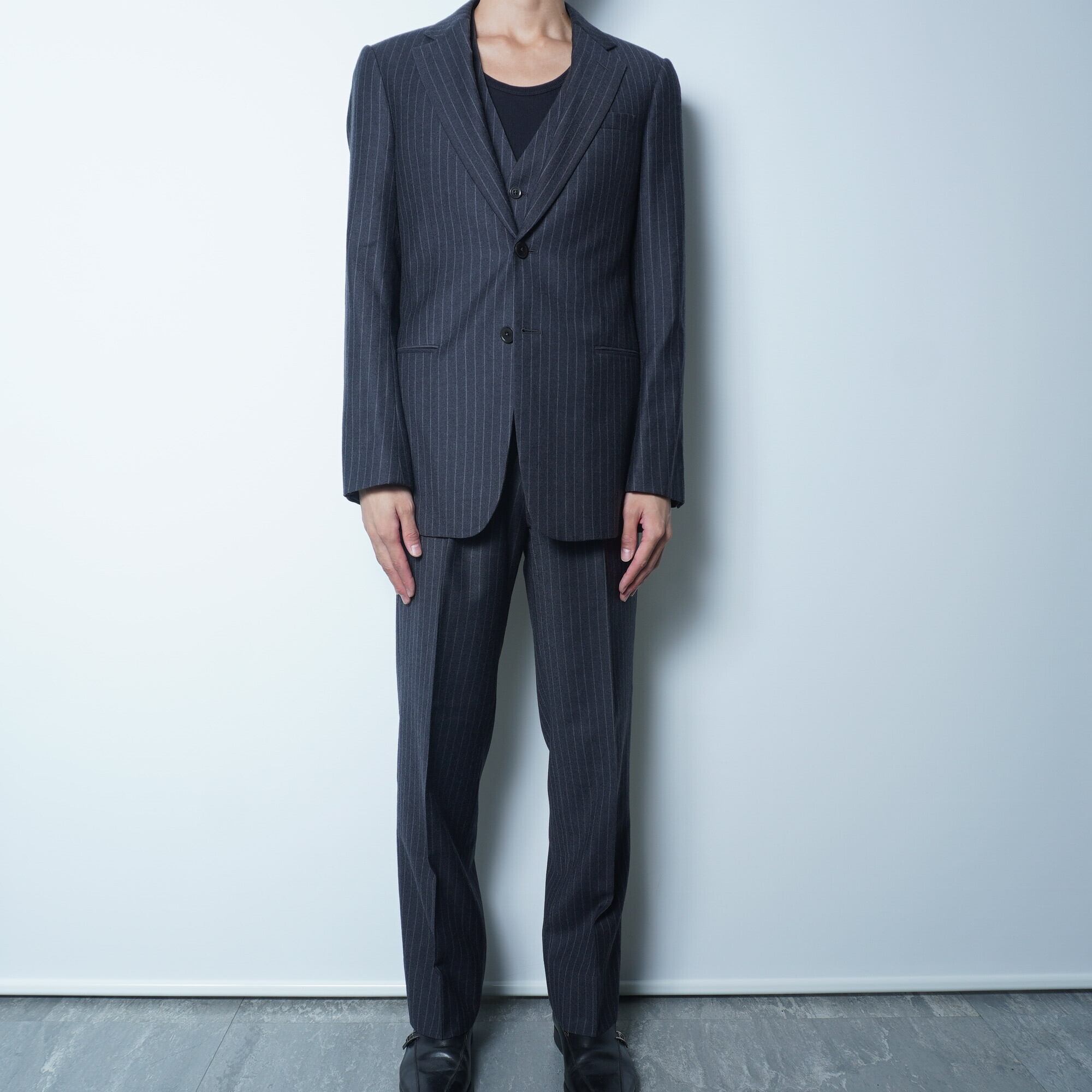 【ARMANI COLLEZIONI】アルマーニコレツォ―ニ イタリア製”現行品”カシミヤ混2Bチョークストライプスリーピースセットアップスーツ charcoal