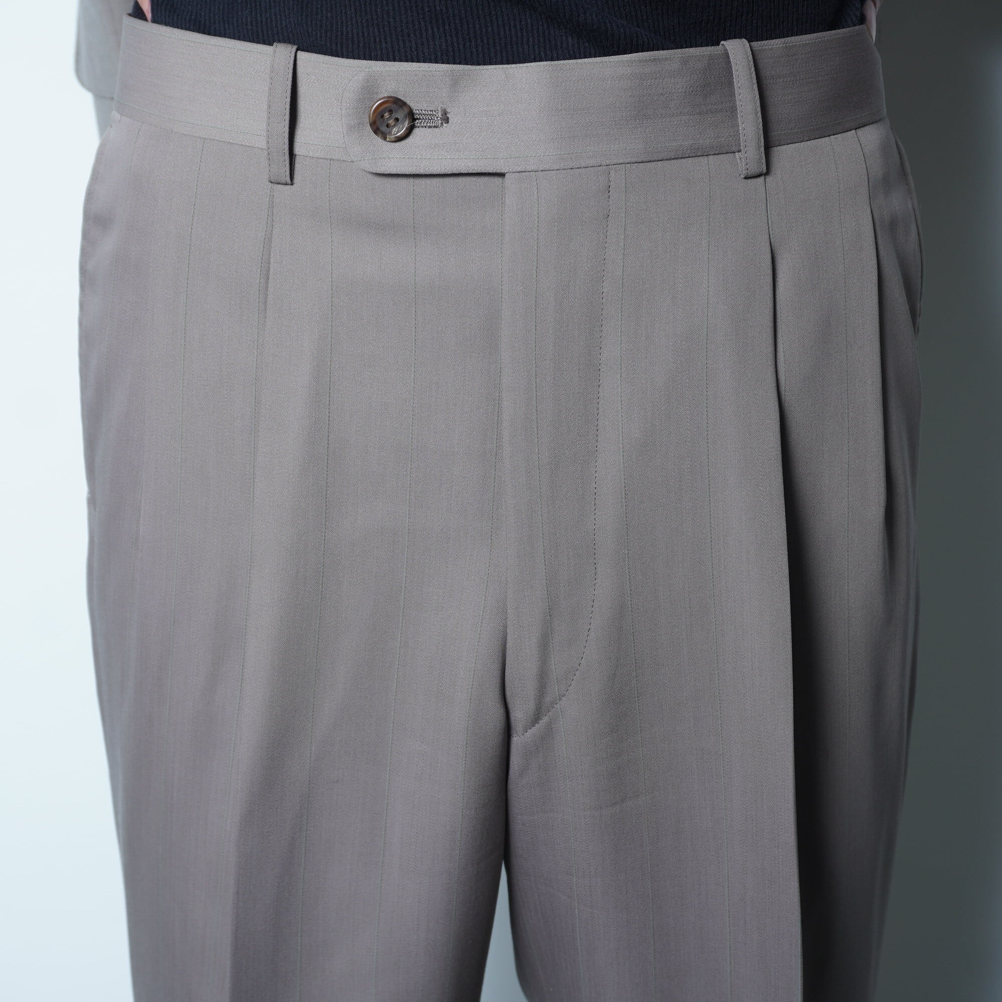 【Christian Dior】クリスチャンディオール つや感背抜きシャドーストライプウールダブルセットアップスーツ beige