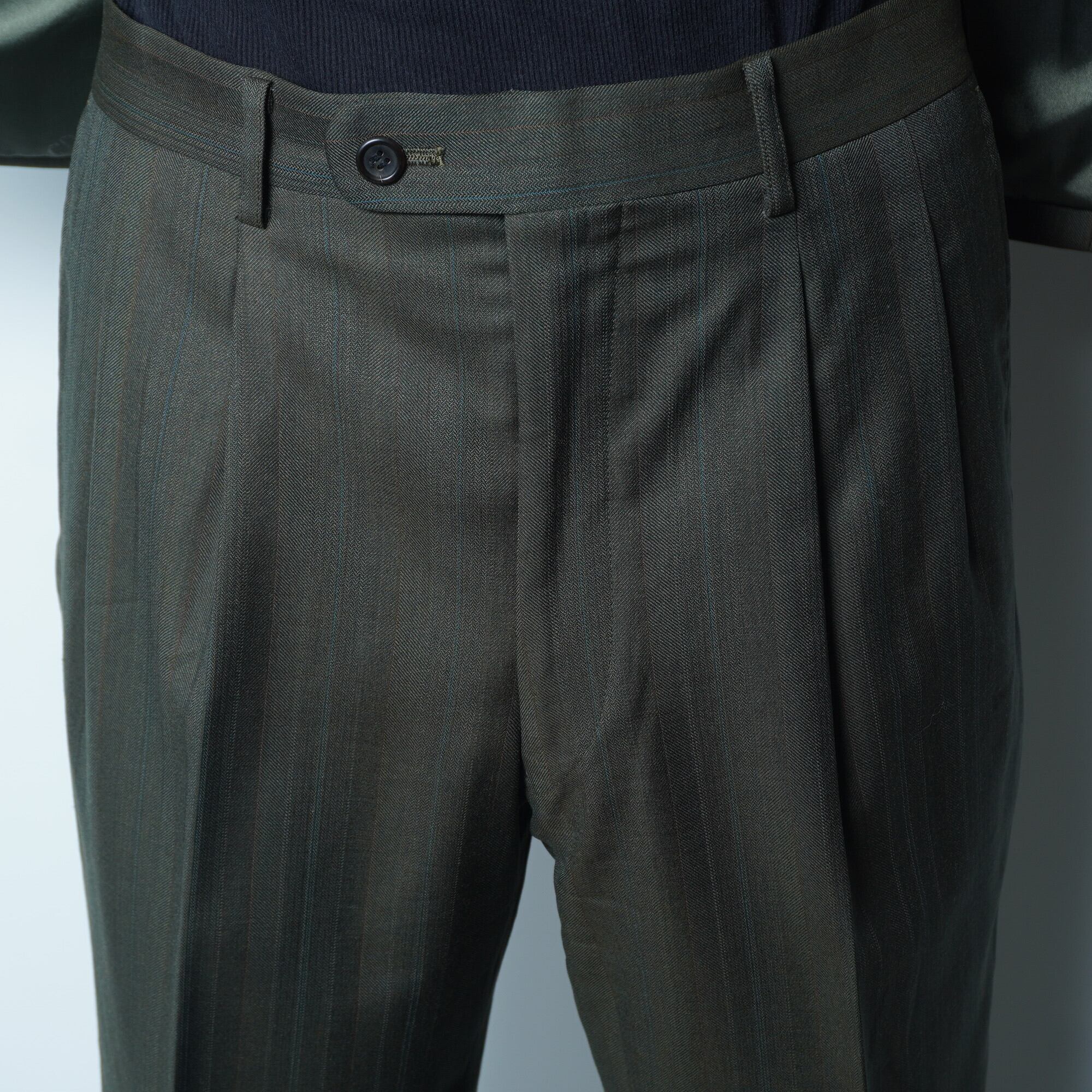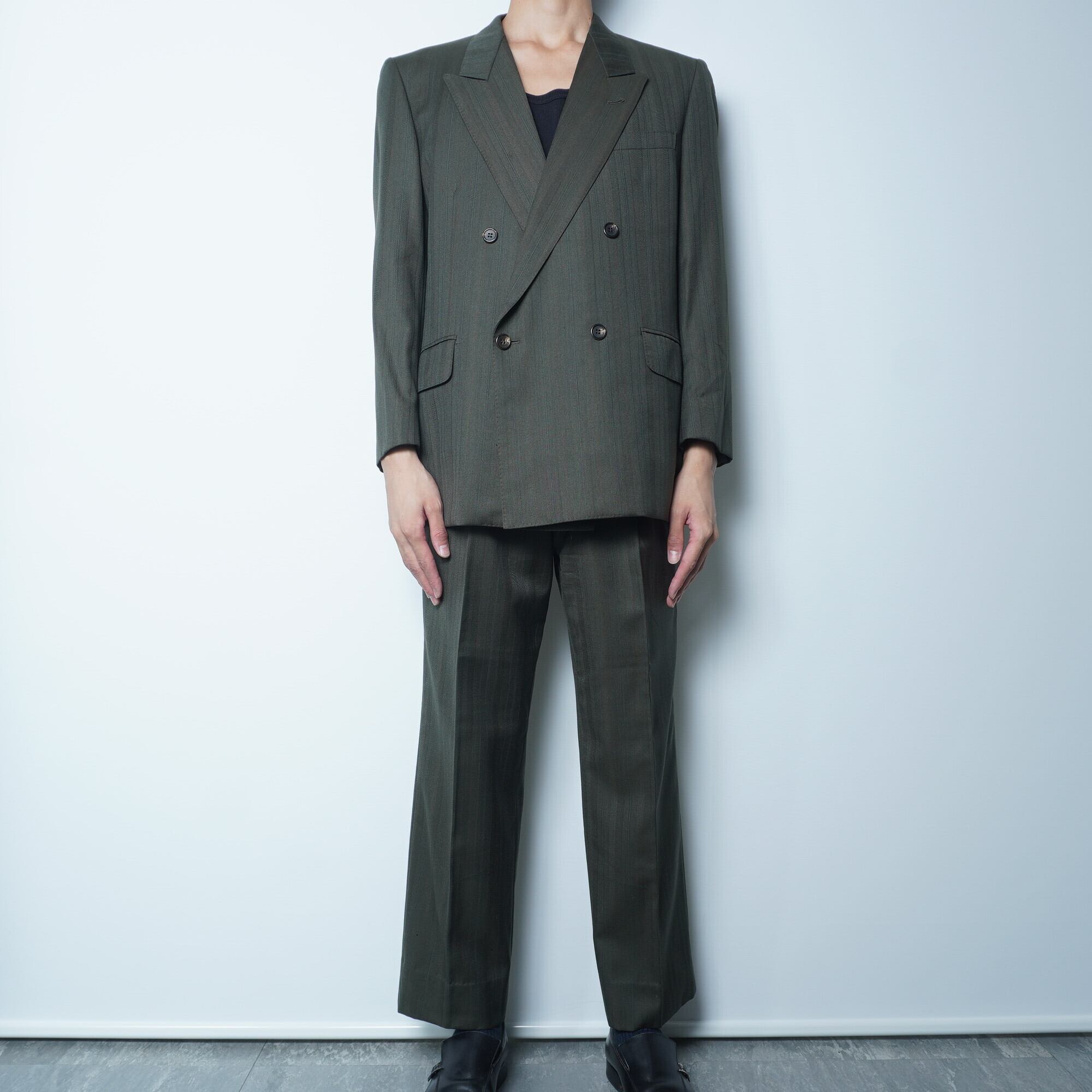 【Christian Dior】クリスチャンディオール シルク混 総裏ストライプウールダブルセットアップスーツ khaki brown