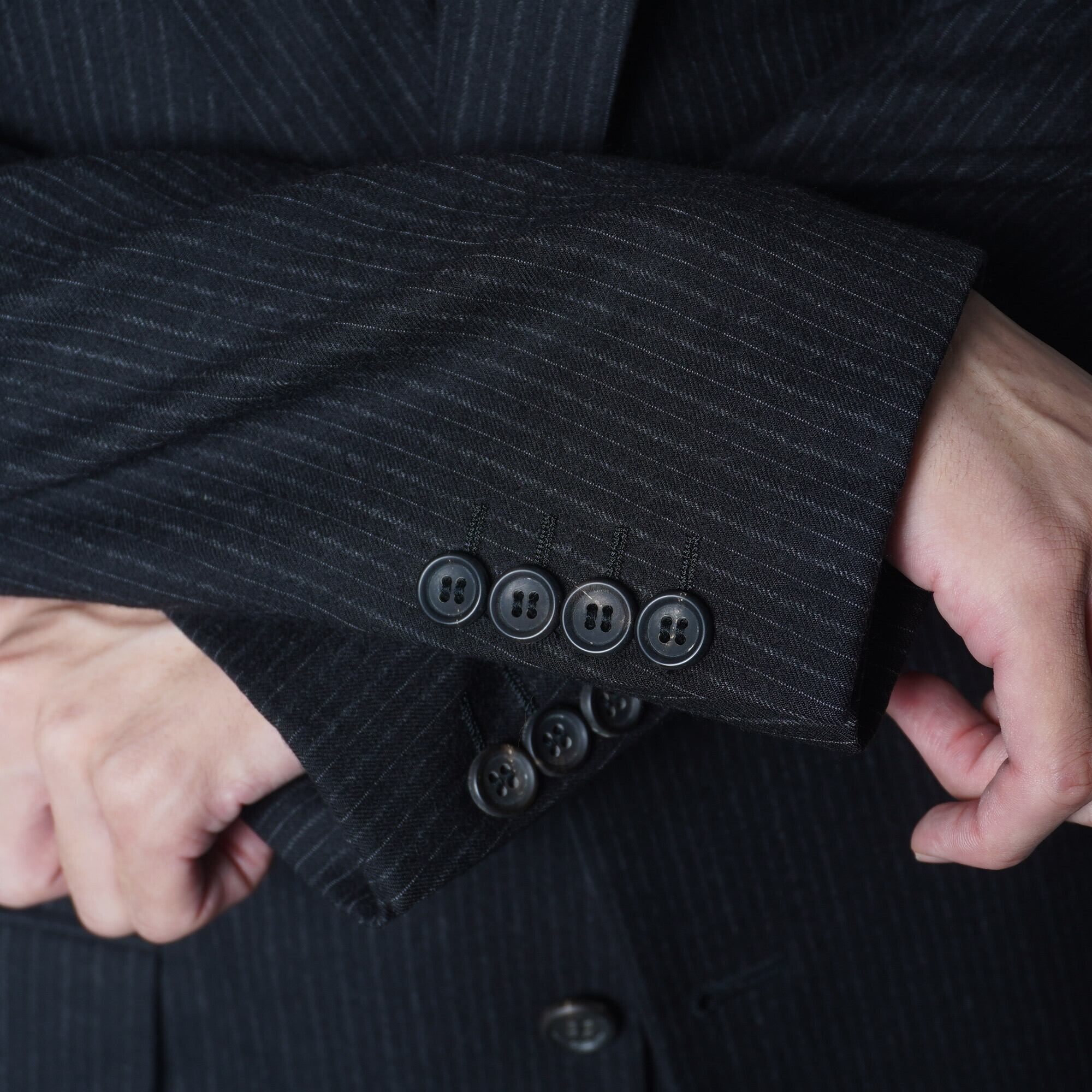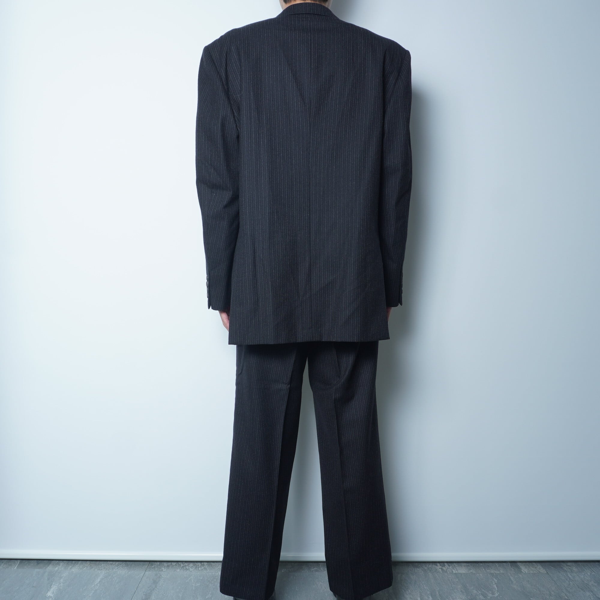 【Christian Dior】クリスチャンディオール ポリ混ウール総裏チョークストライプ2Bシングルセットアップスーツ black