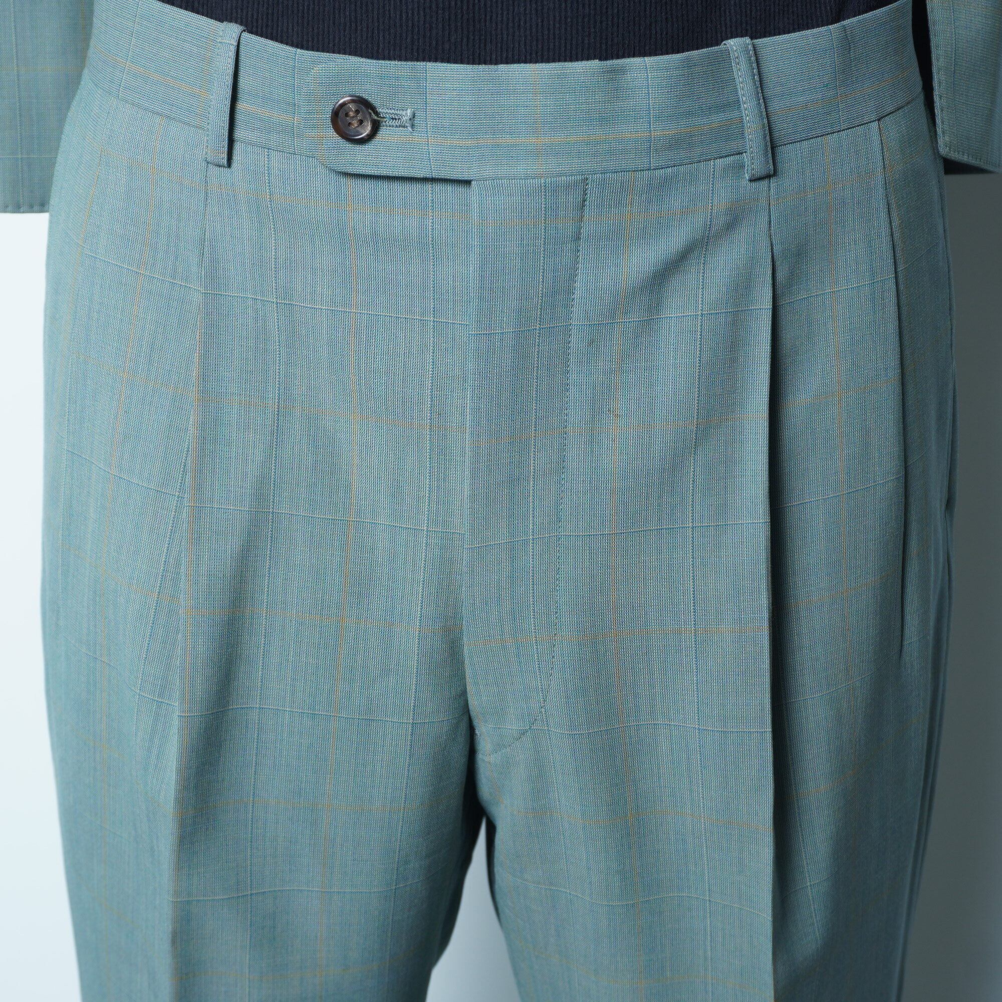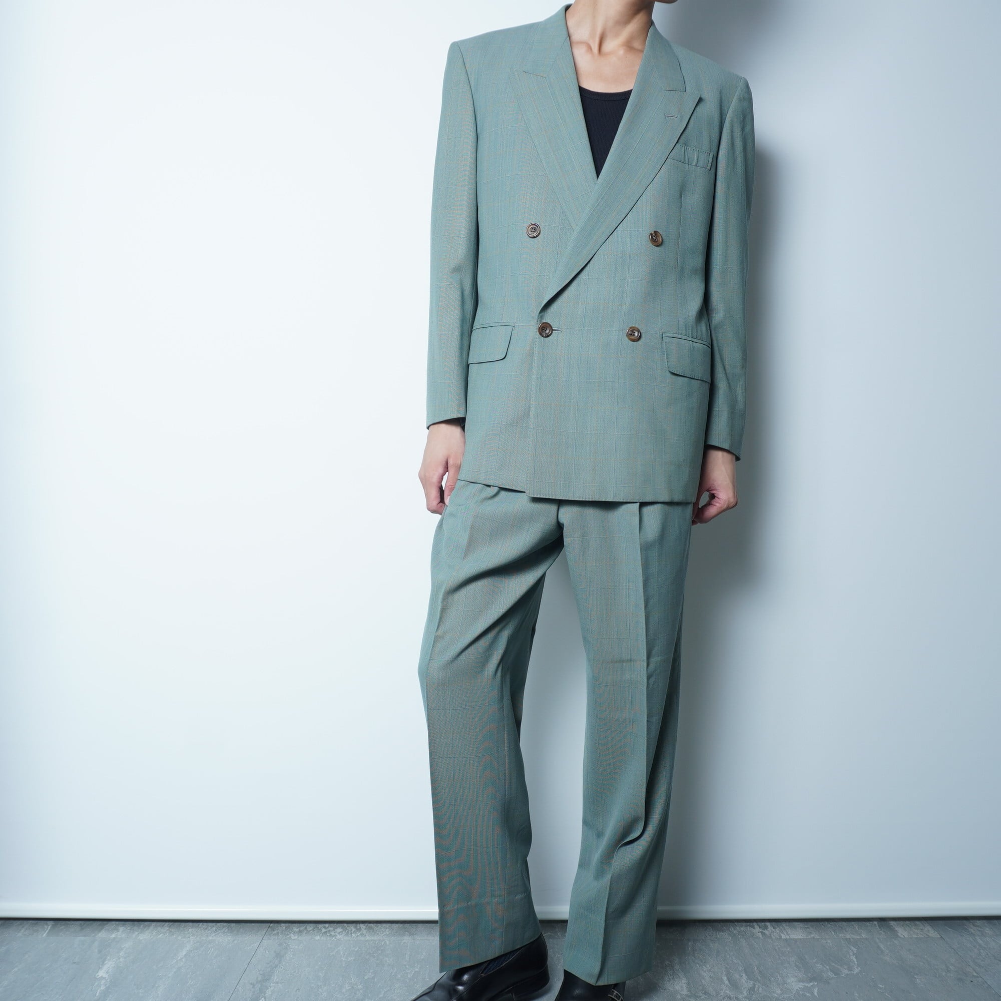 【Christian Dior】クリスチャンディオール シルク混 背抜きチェック柄ウールダブルセットアップスーツ green