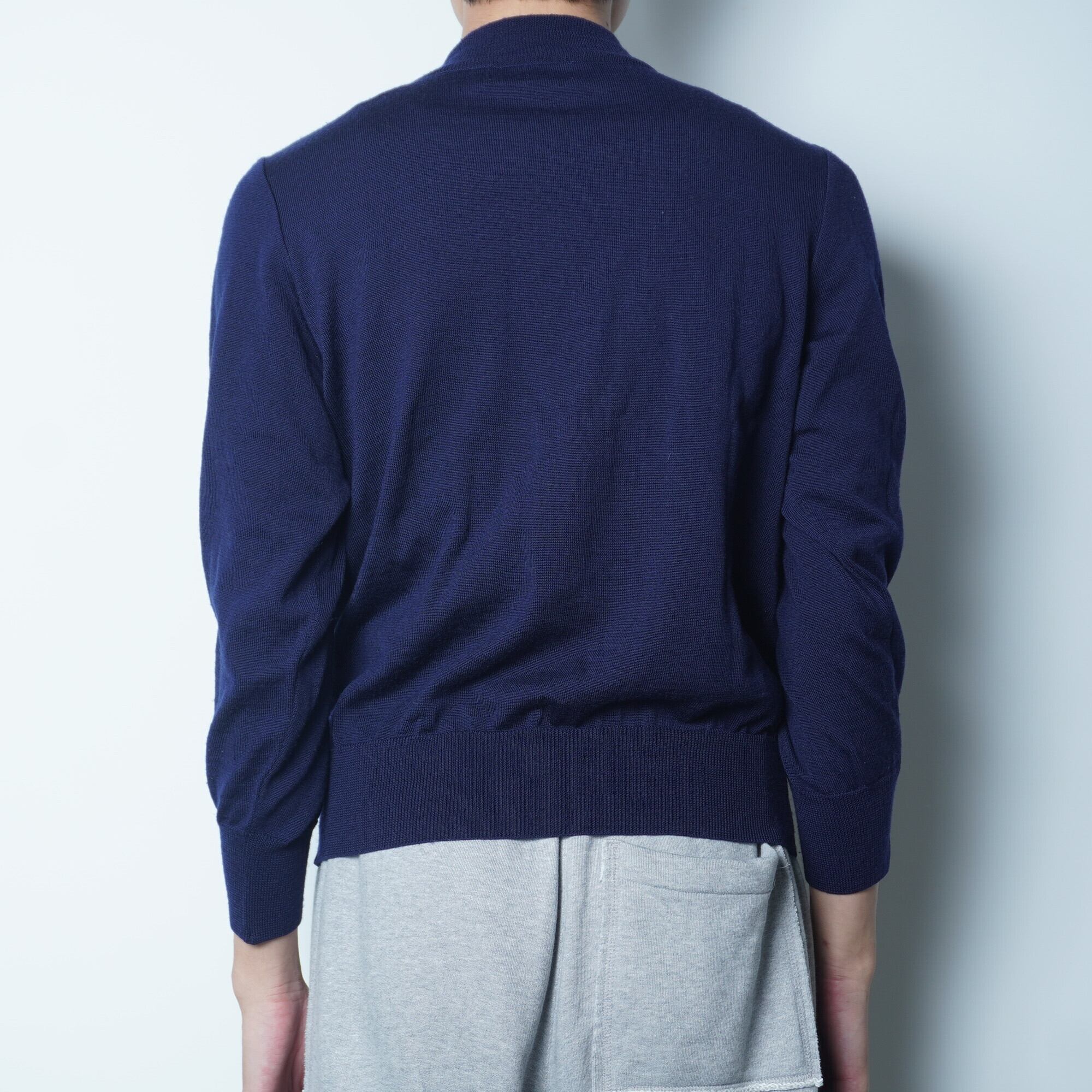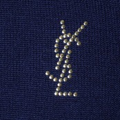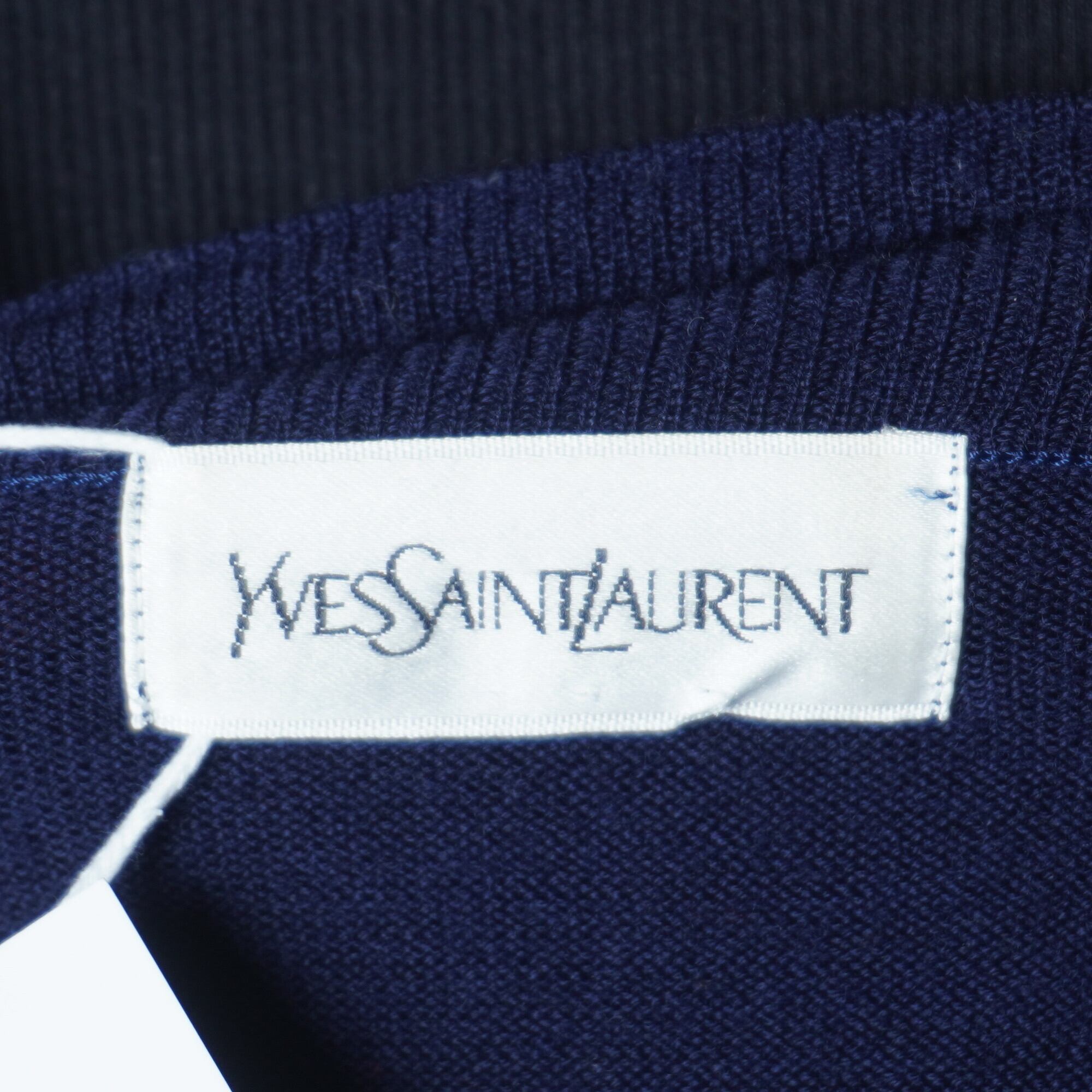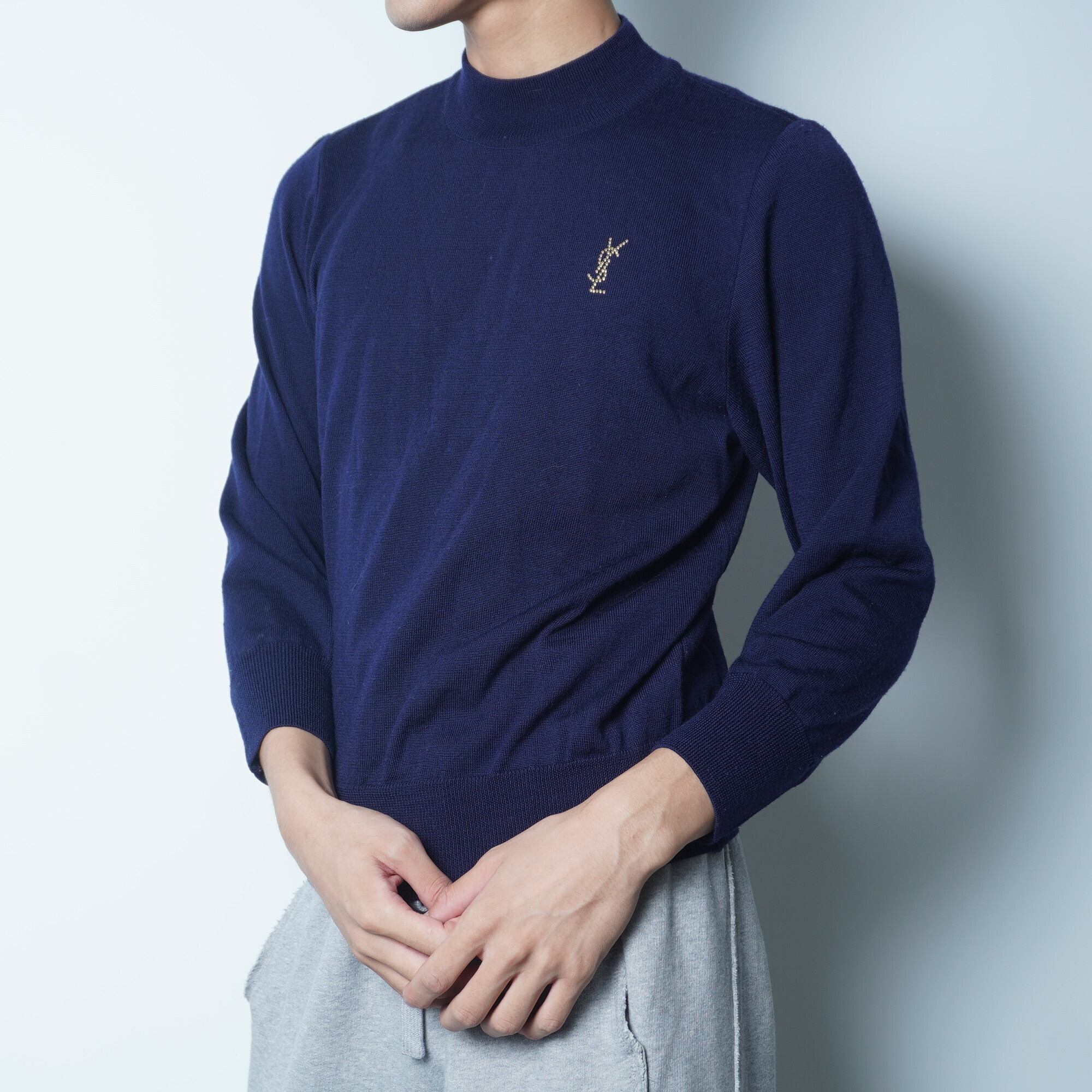 【Yves Saint Laurent】イブサンローラン YSLロゴワンポイント ウール100% モックネックニットソー navy