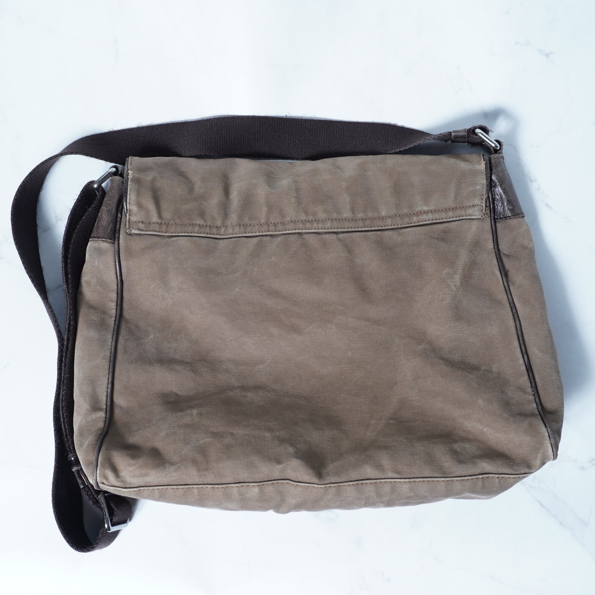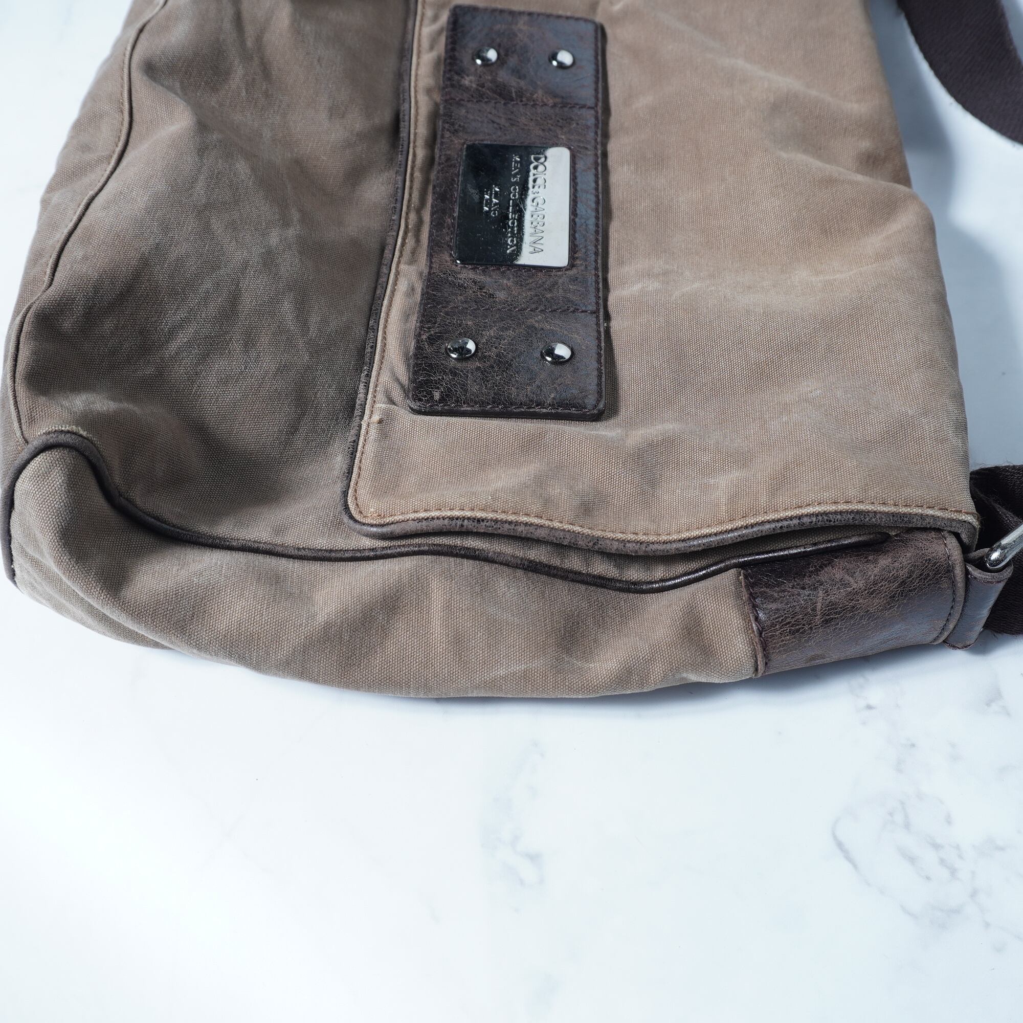 【DOLCE&GABBANA】ドルチェ&ガッバーナ "プレートロゴ”レザー切り替えショルダーバッグ gray&brown