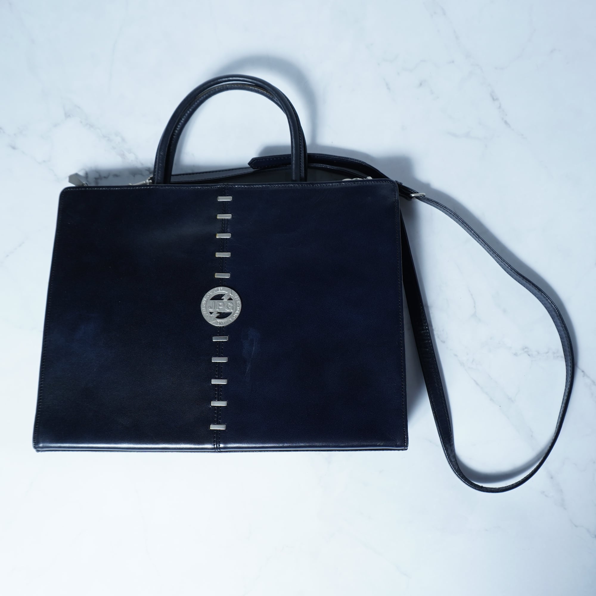 【Jean Paul GAULTIER】ジャンポールゴルチエ "ARCHIVE" メタルロゴ2WAYレザーショルダーハンドバッグ black