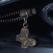 ・上品なデザインのバタフライロゴが魅力的なレザートートバッグ