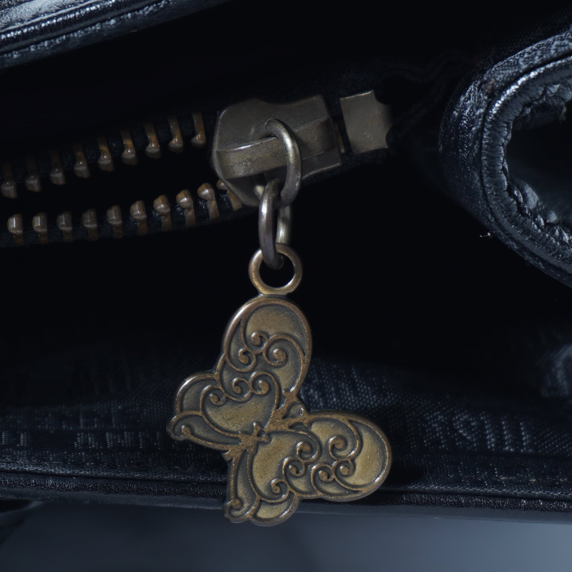 【ANNA SUI】アナスイ "バタフライロゴ”レザートートバッグ black