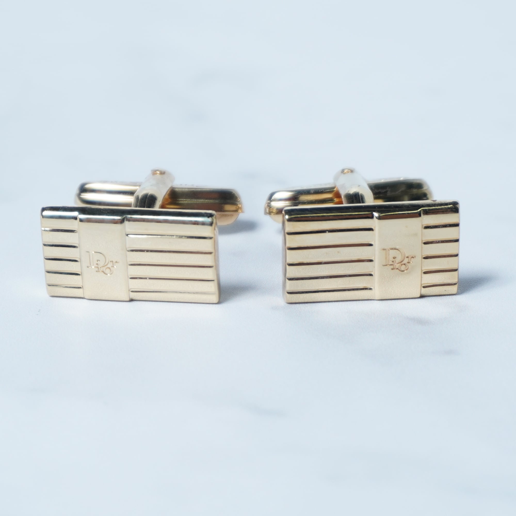 【Christian Dior】クリスチャンディオール トロッターロゴ ボーダーカフスピン gold