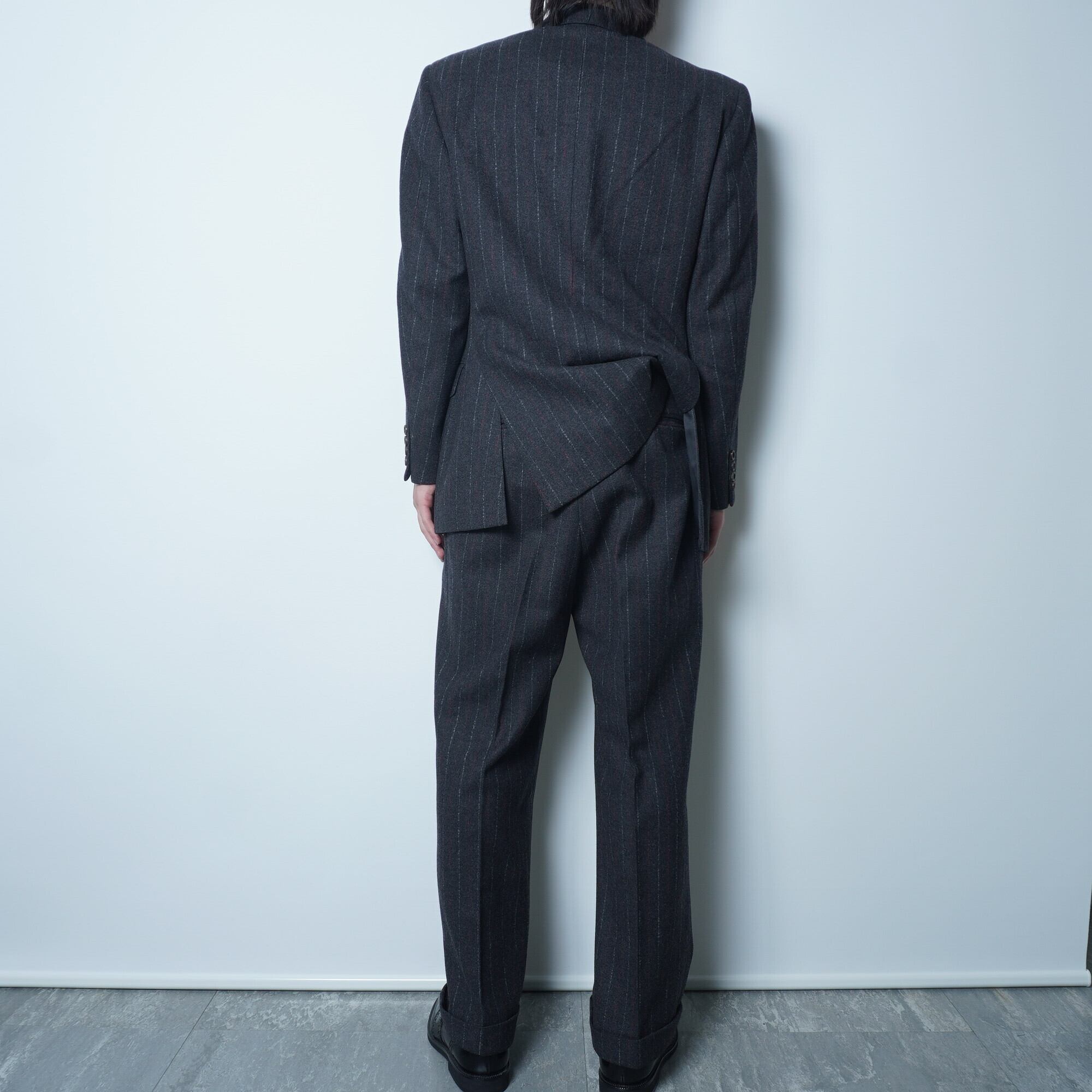 【BURBERRY】バーバリー "WOOL100%" オルタネートストライプ シングル2Bセットアップスーツ dark gray