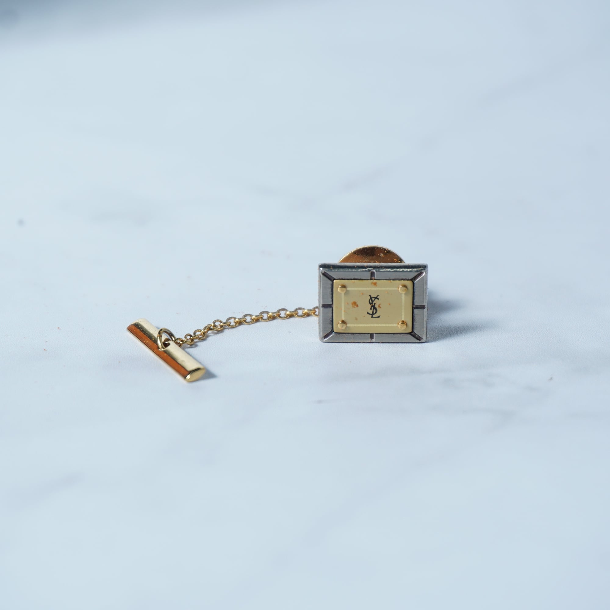 【Yves Saint Laurent】イブサンローラン "ロゴ入" 開場記念 カフスピン・ラペルピンセット 箱付き silver&gold