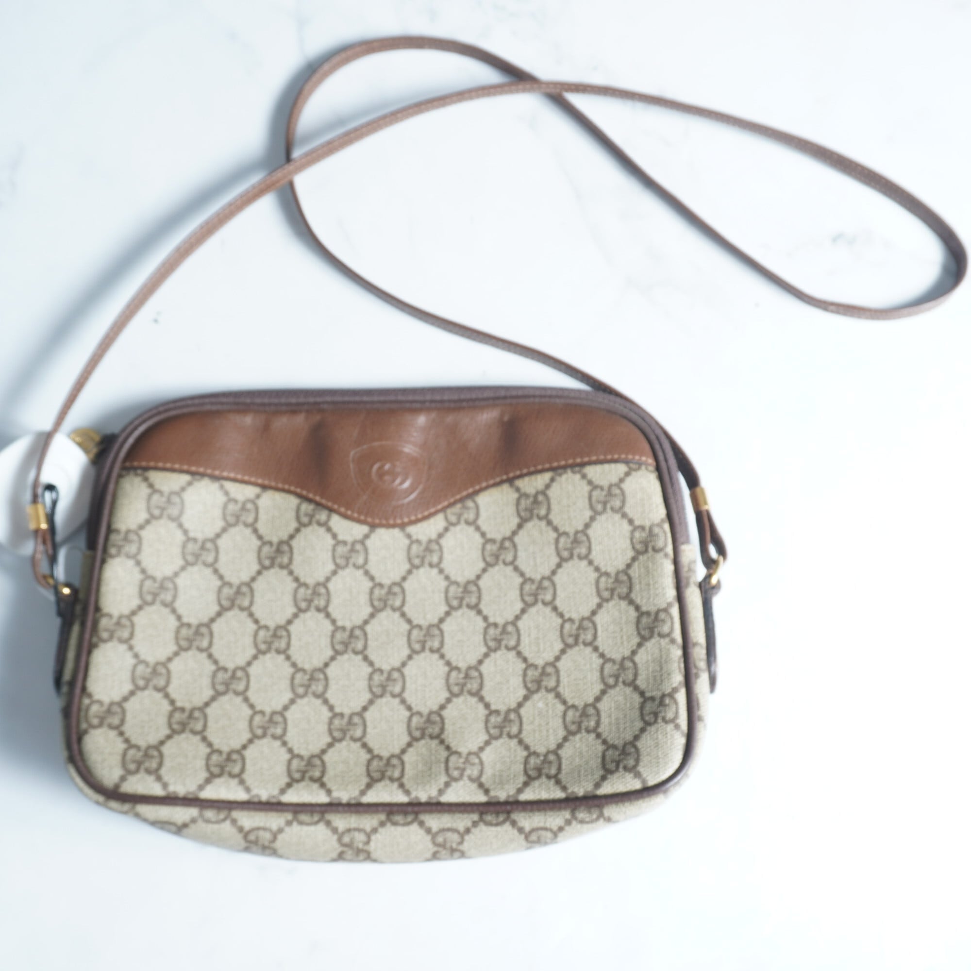 【GUCCI】グッチ オールドモノグラムPVC×レザー切替ミニバッグ