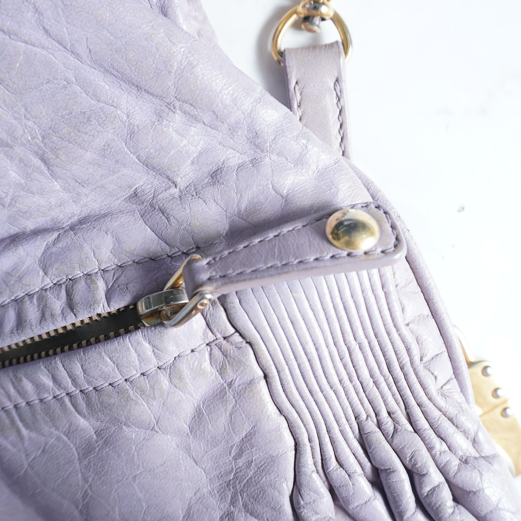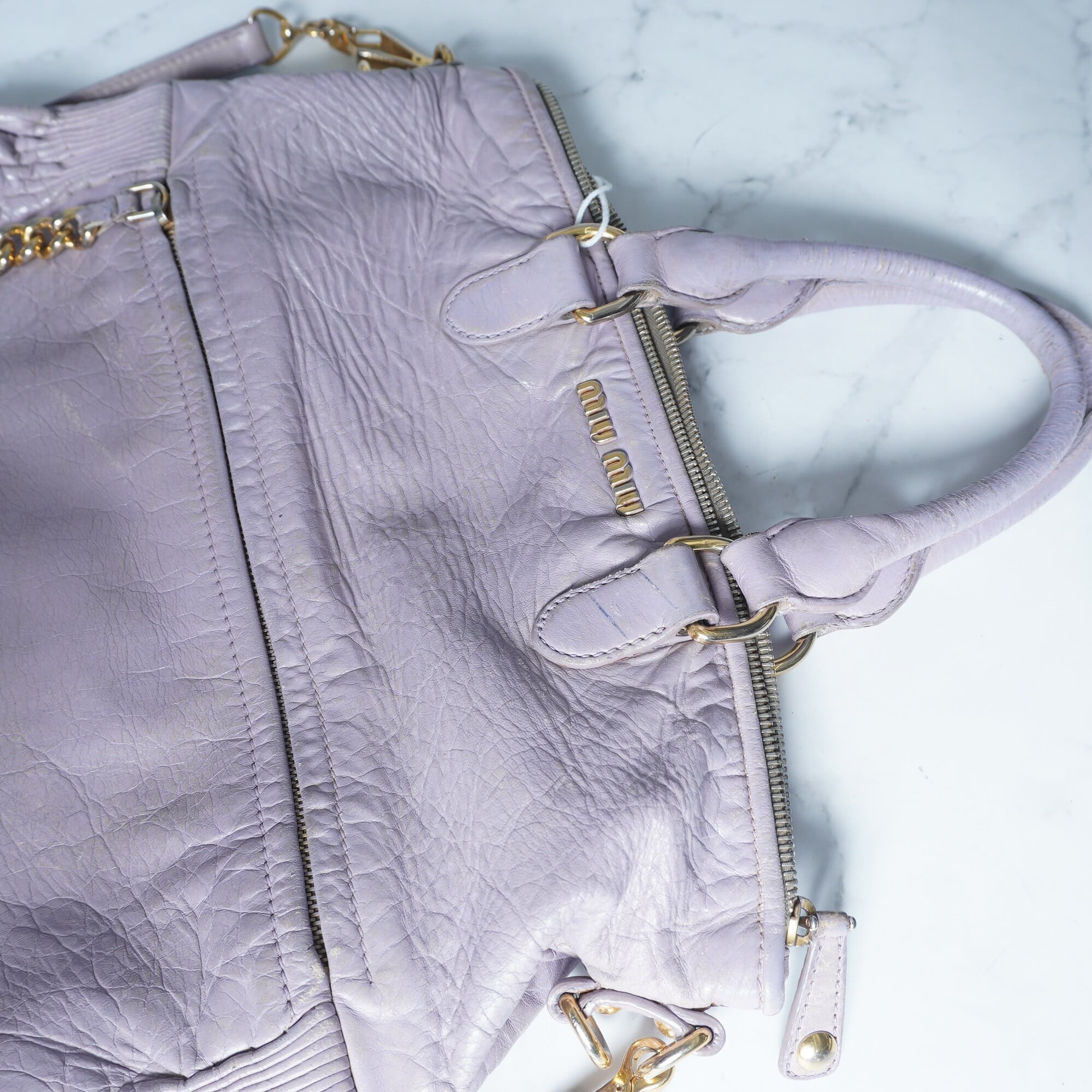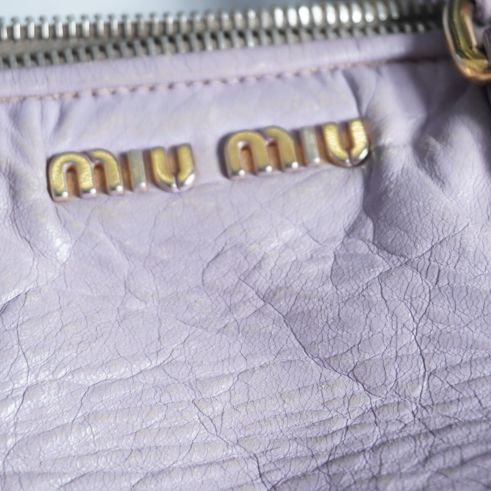 【miumiu】ミュウミュウ シワ加工レザーショルダーバッグ PURPLE