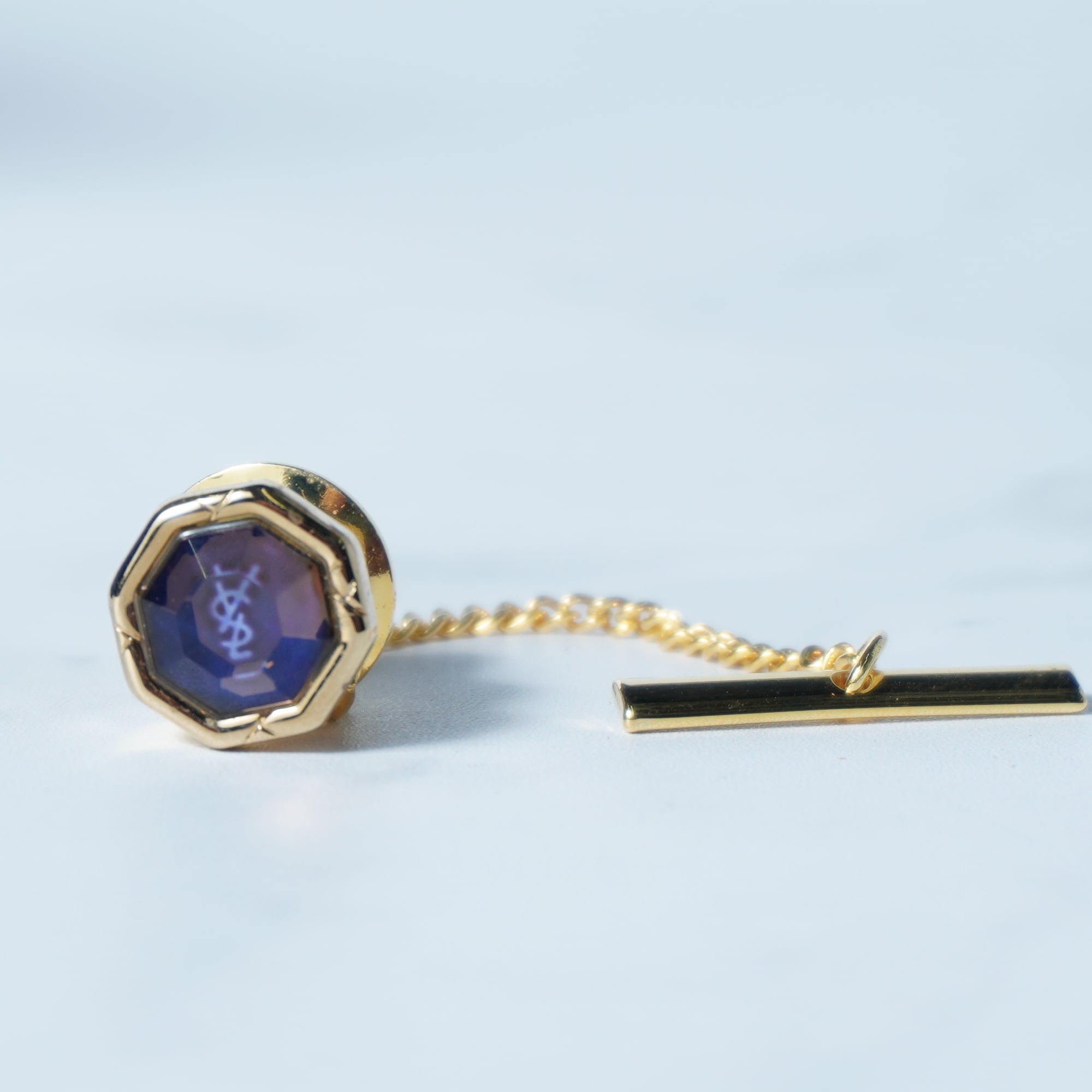 ・【Yves Saint Laurent】イブサンローランの洗練されたデザインが光るブルークリスタルラペルピン