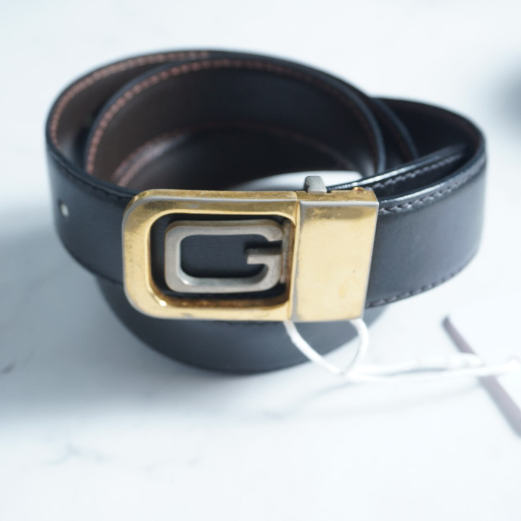 【GUCCI】グッチ イタリア製 old Gロゴバックルレザーベルト black