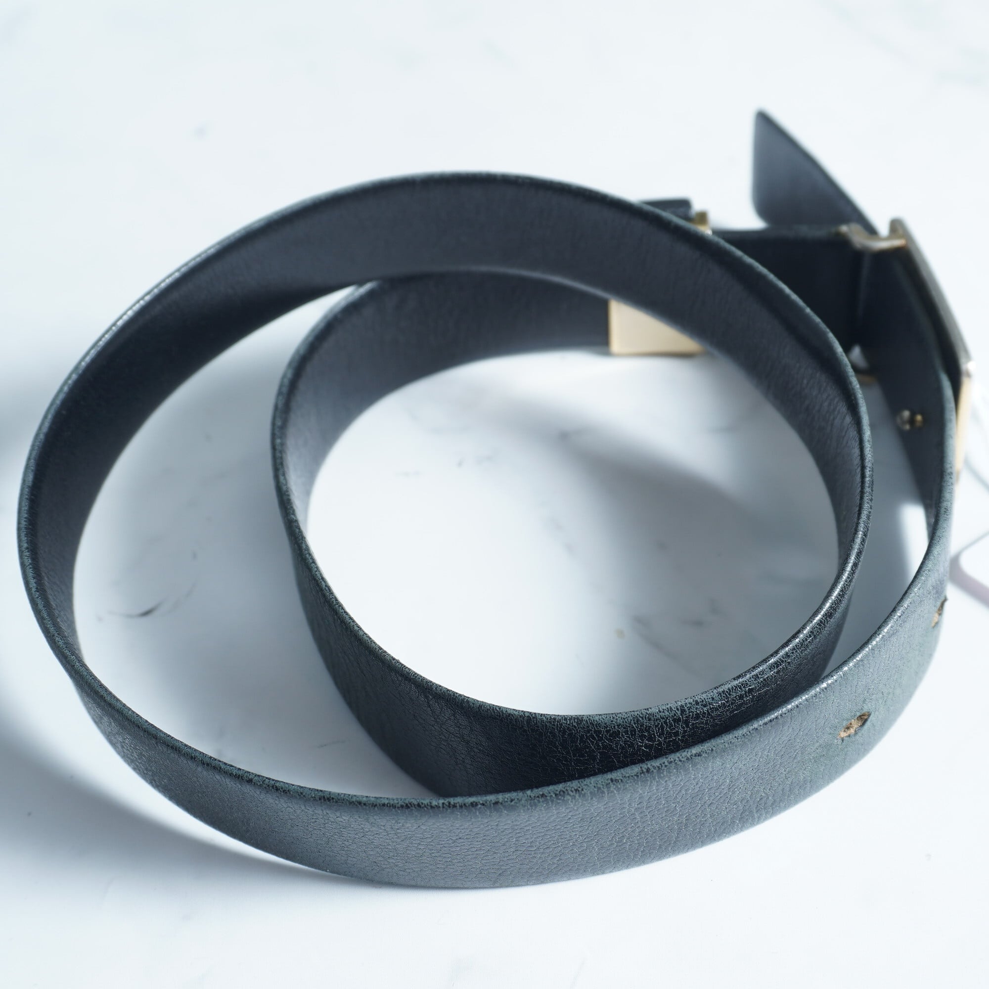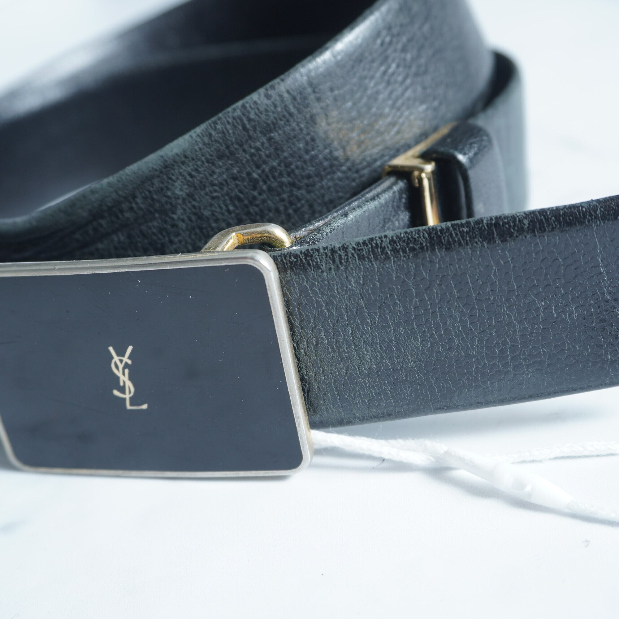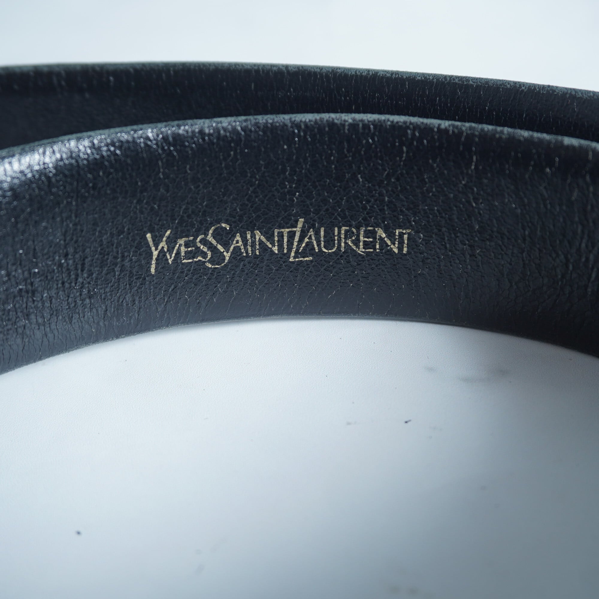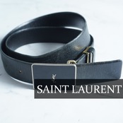【Yves Saint Laurent】イブサンローラン ブラックバックルYSLロゴ プレーンレザーベルト black
