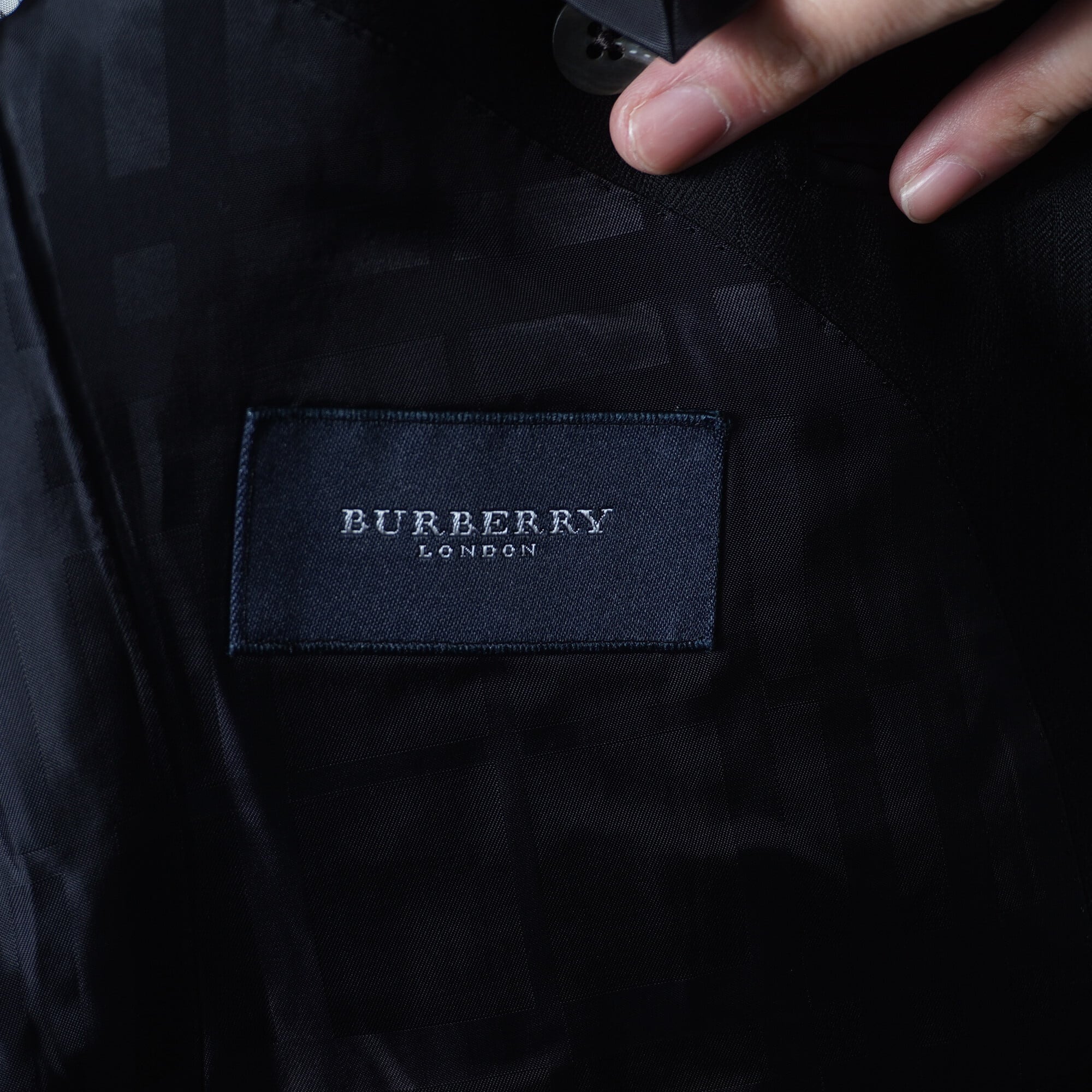 【BURBERRY】バーバリー 日本製ボタンロゴ刻印シャドーストライプノヴァチェック総裏2Bシングルセットアップスーツ black