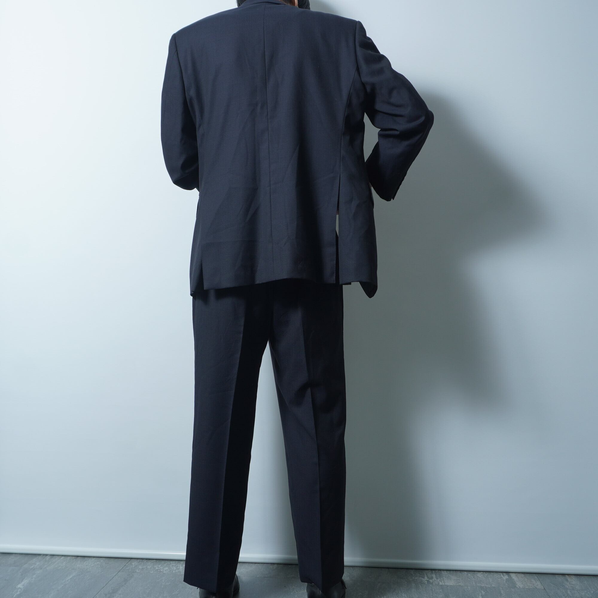 【BURBERRY】バーバリー 日本製 イタリア製ウール100%背抜き2Bシングルセットアップスーツ dark navy