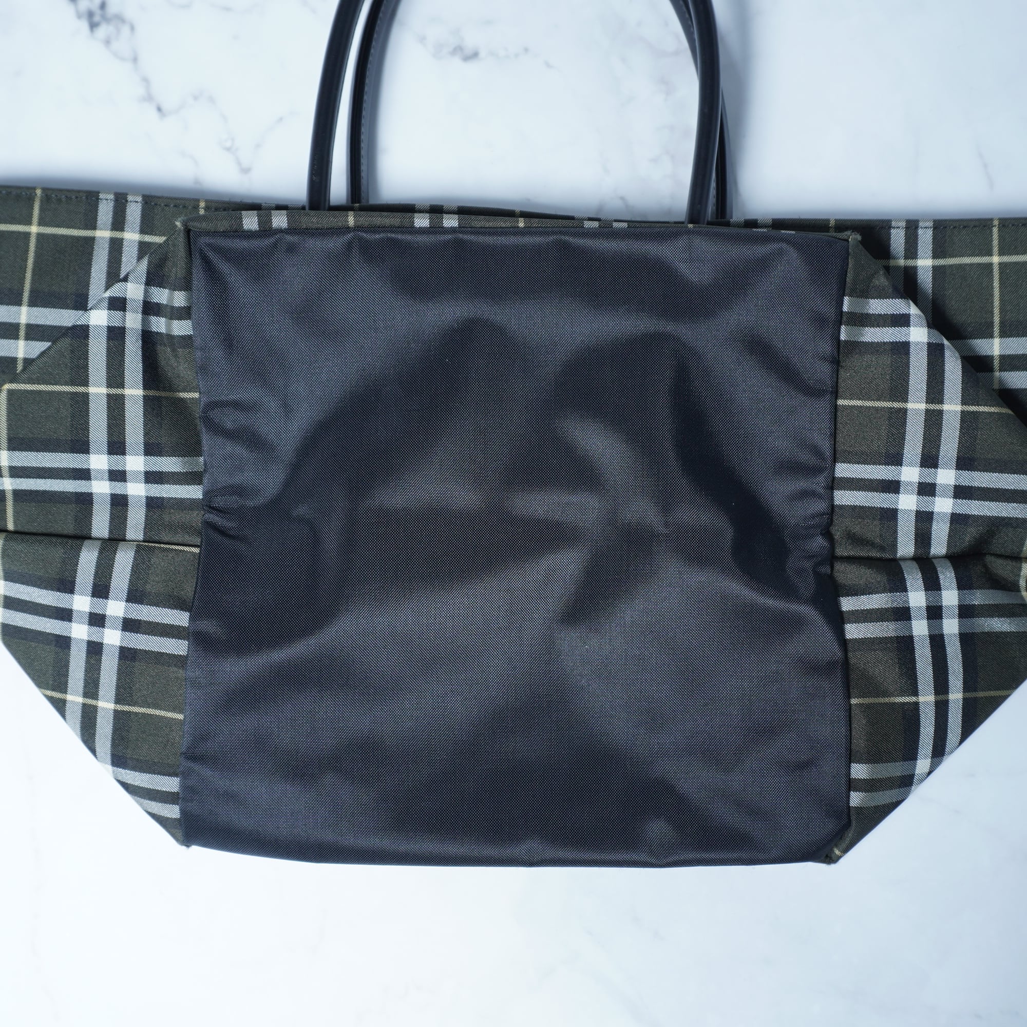 【BURBERRY】バーバリー 美品チェック柄レザー切替トートバッグ khaki & black & white