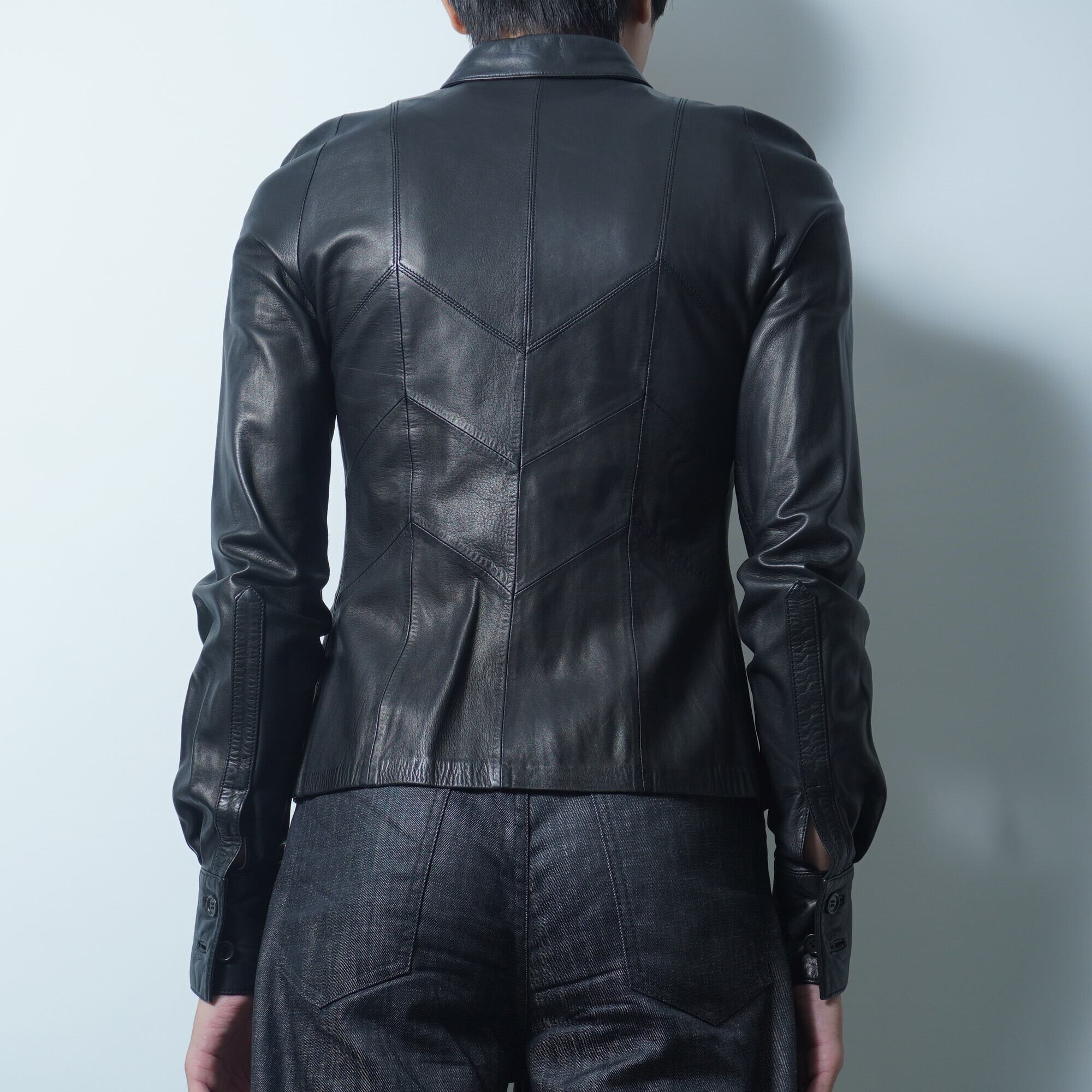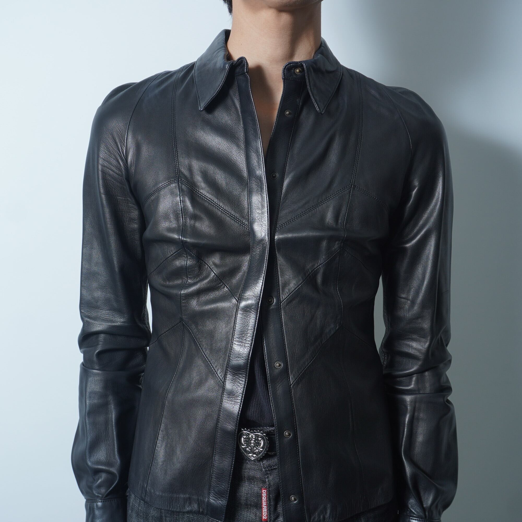 【LOEWE】ロエベ スペイン製 ラムレザースリムシャツ black