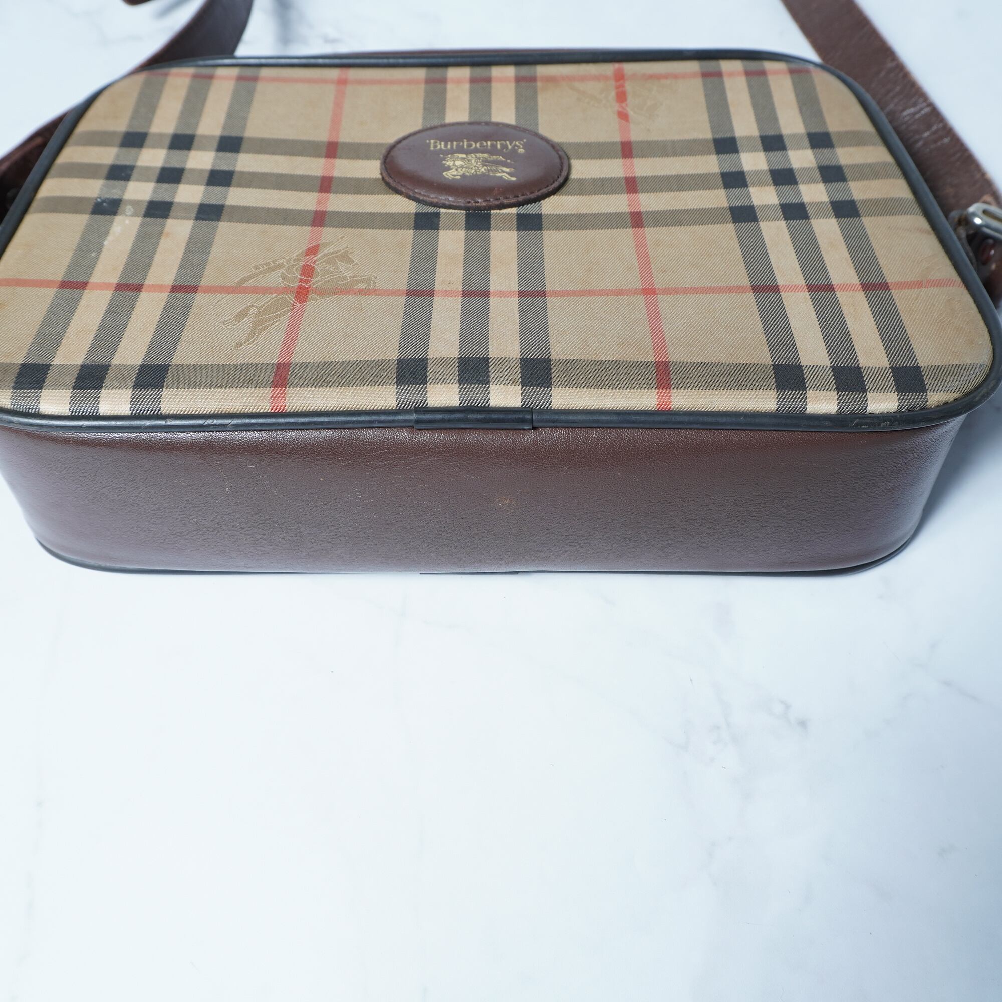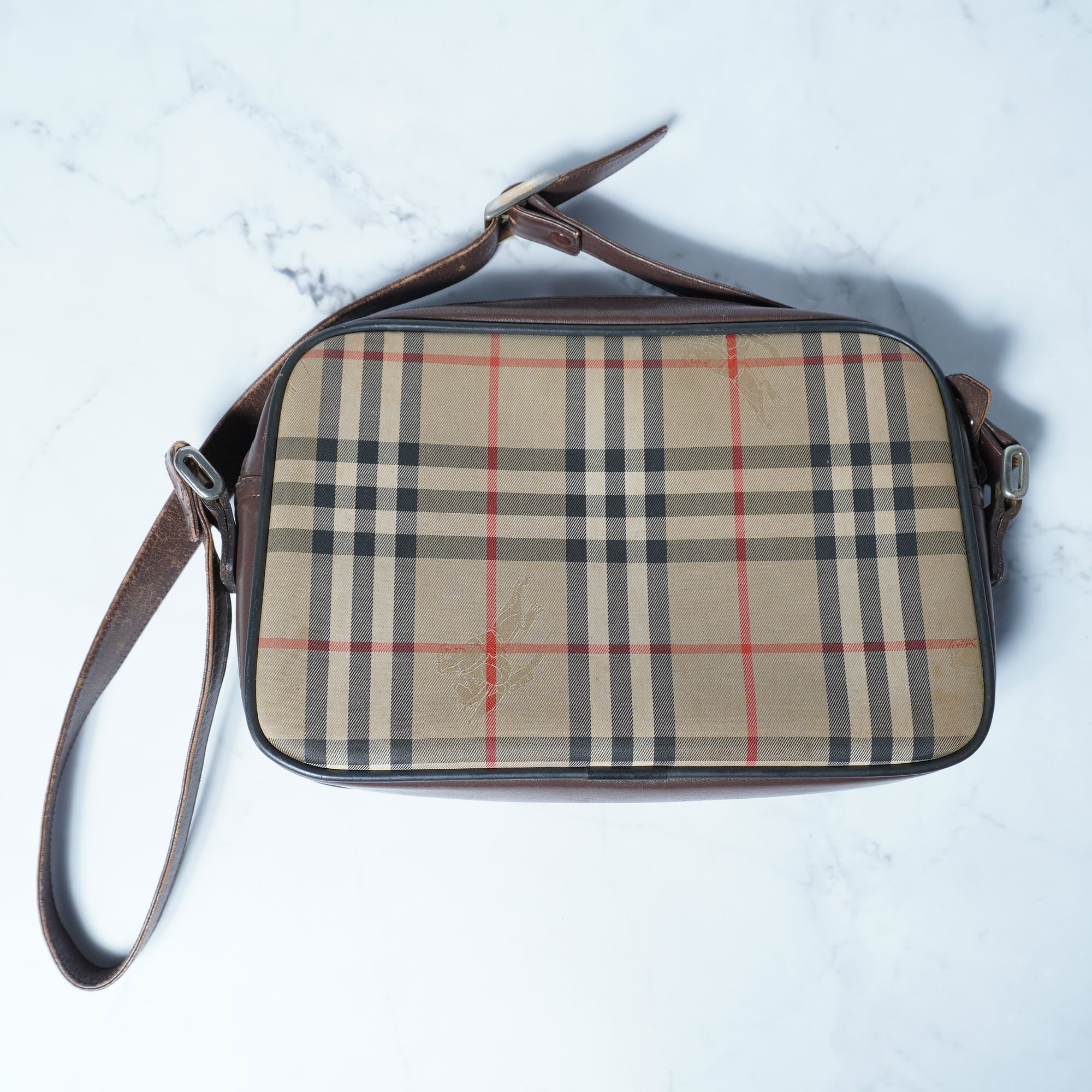【BURBERRY】バーバリー ホースロゴノヴァチェックレザー切り替えショルダーバッグ beige