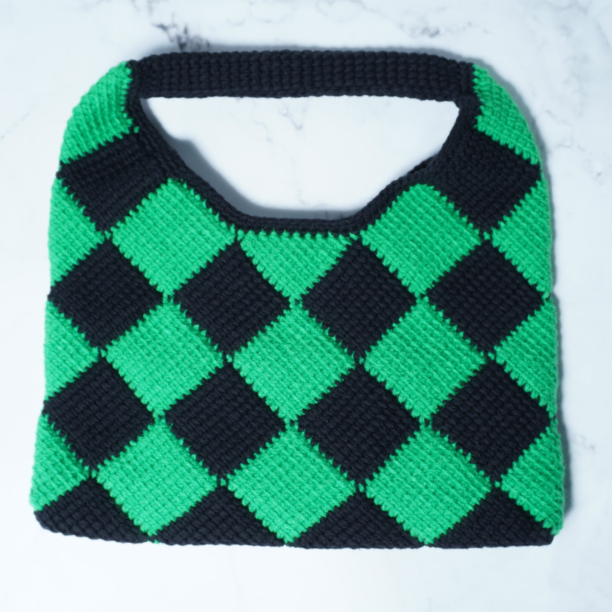 【MARNI】マルニ ダイヤ柄テックウールハンドバッグ green&black
