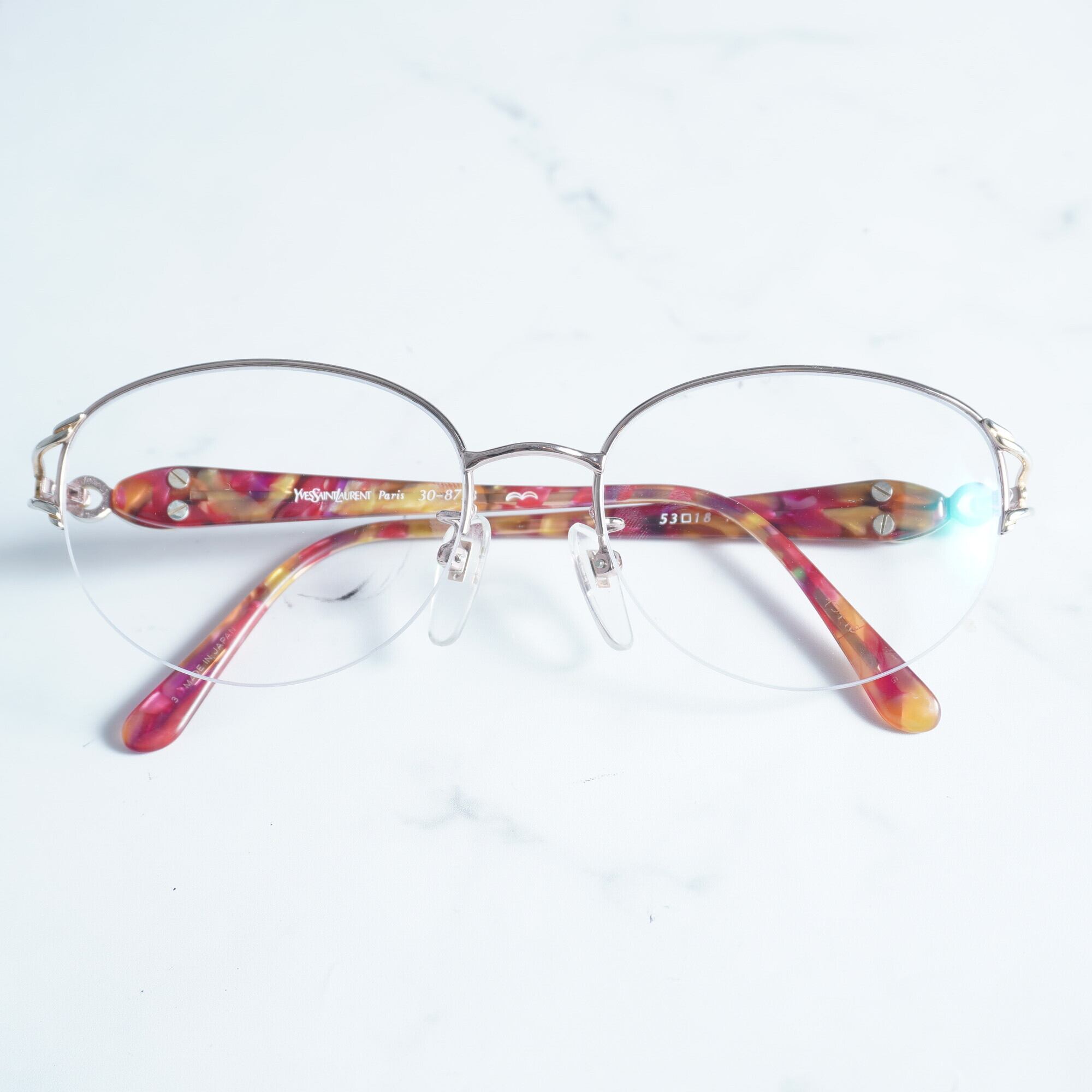 ・洗練された印象を与える【Yves Saint Laurent】イブサンローラン YSLロゴ刻印 メタルハーフリムフレームべっ甲サングラス gold