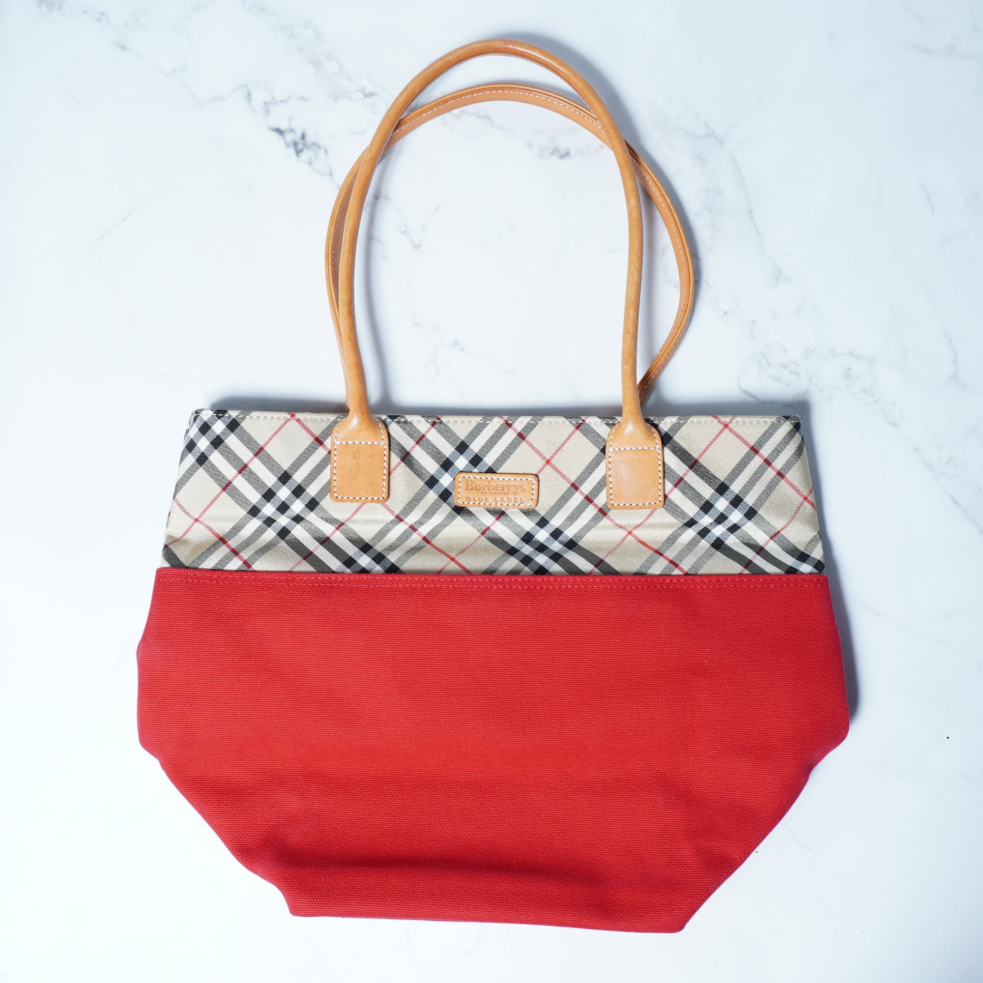 【BURBERRY】バーバリー チェック柄レザー切り替えトートバッグ red
