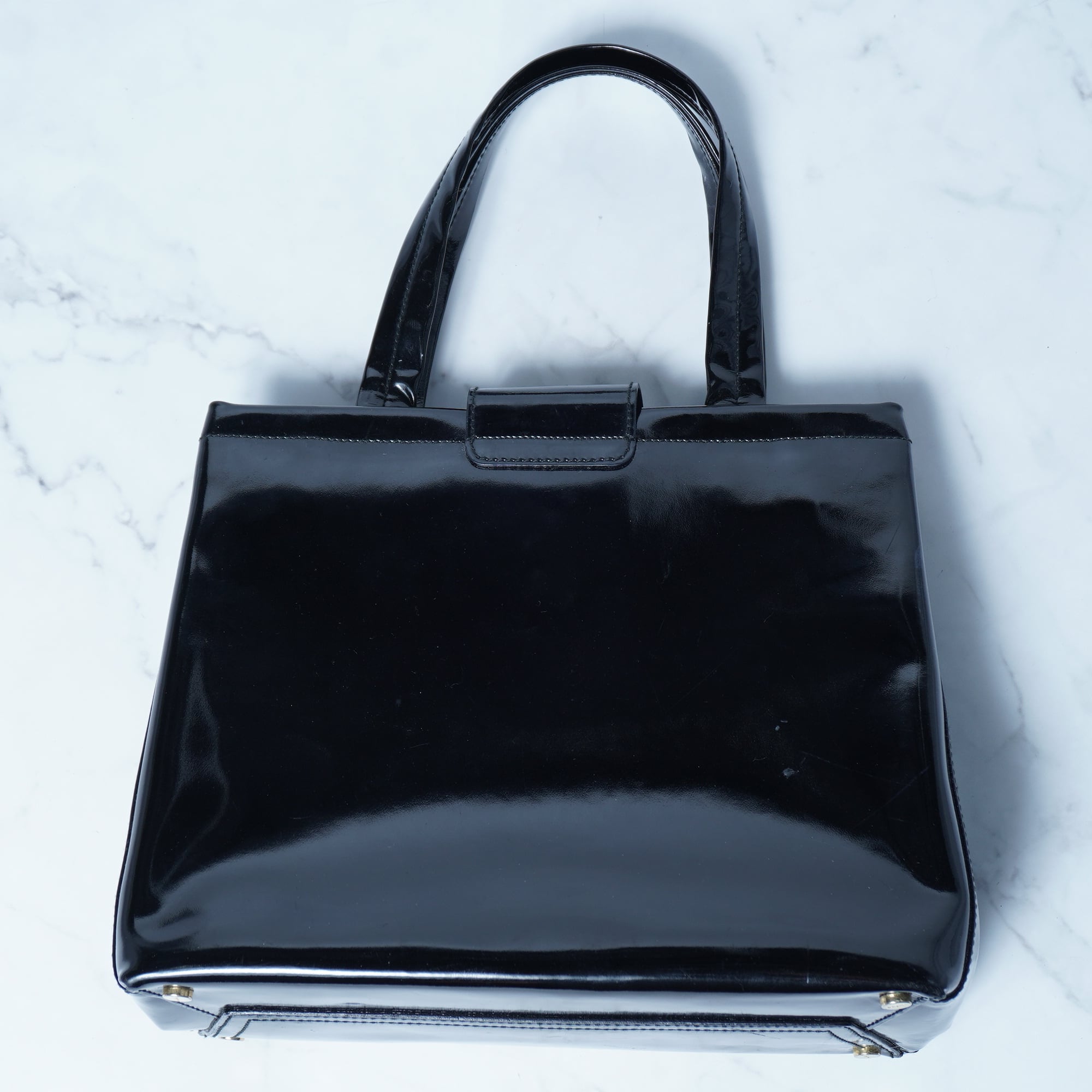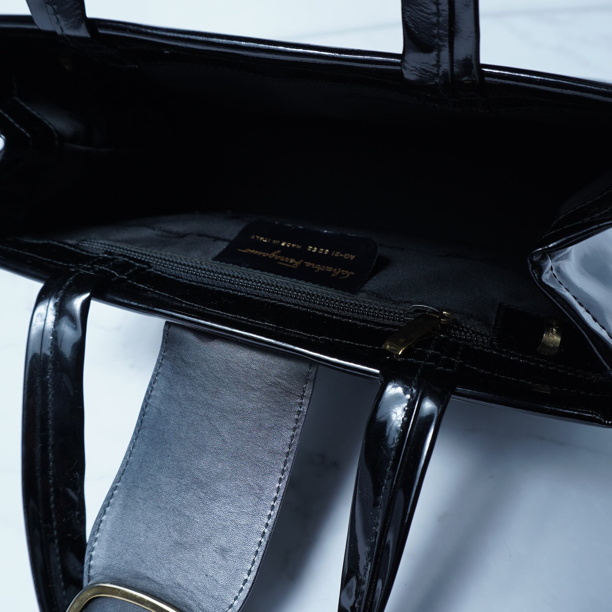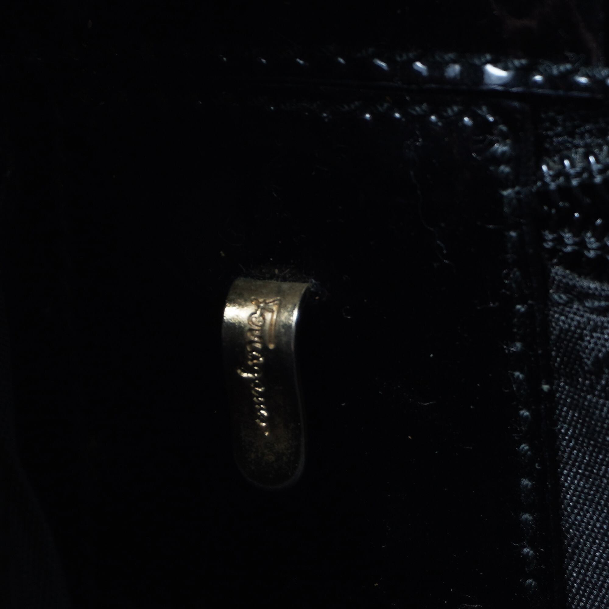 【Ferrgamo】フェラガモ 金装飾ロゴ エナメルレザーハンドバッグ black
