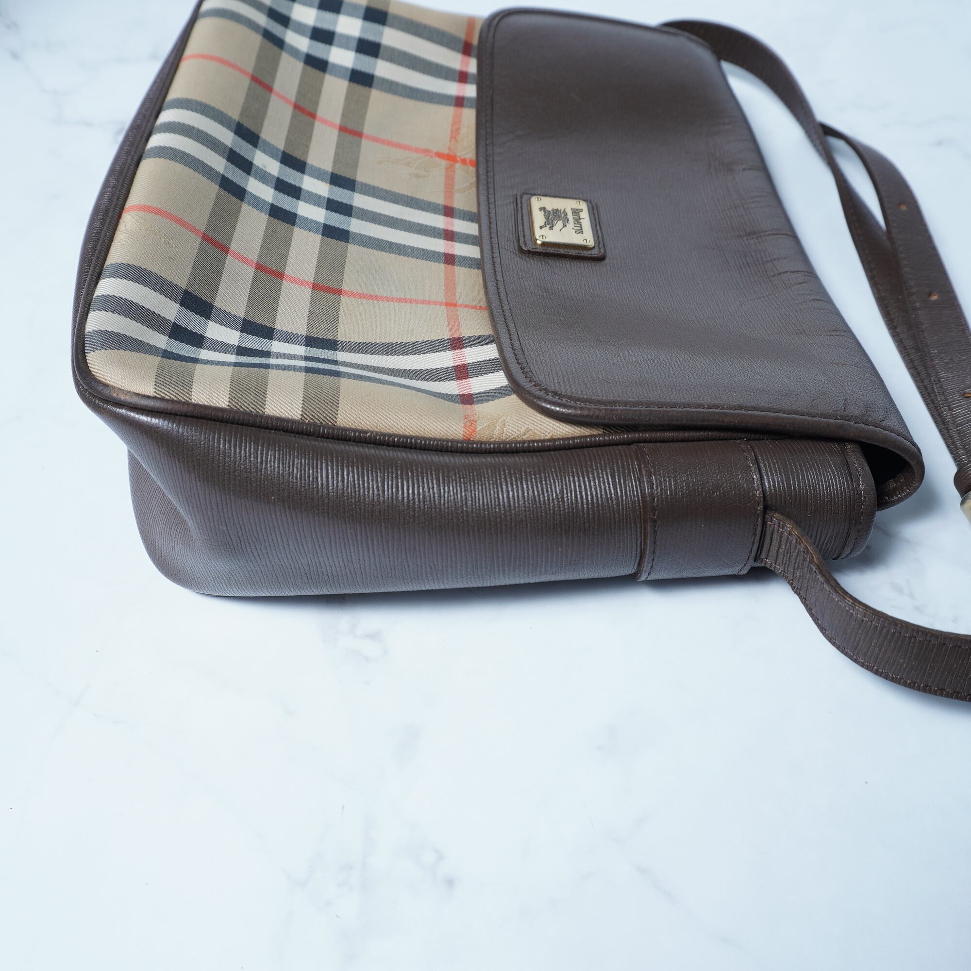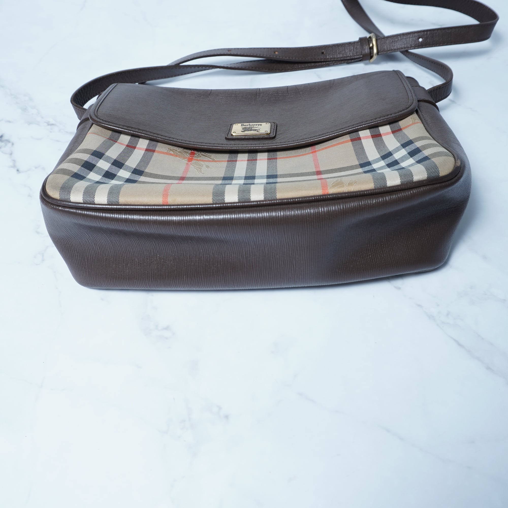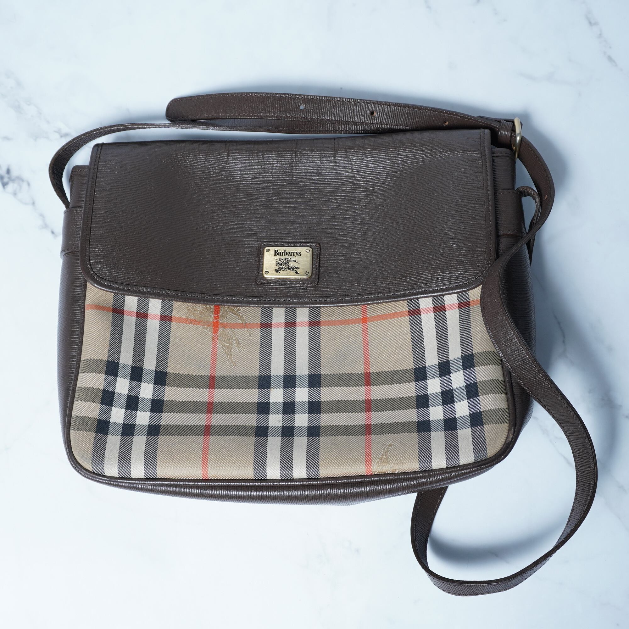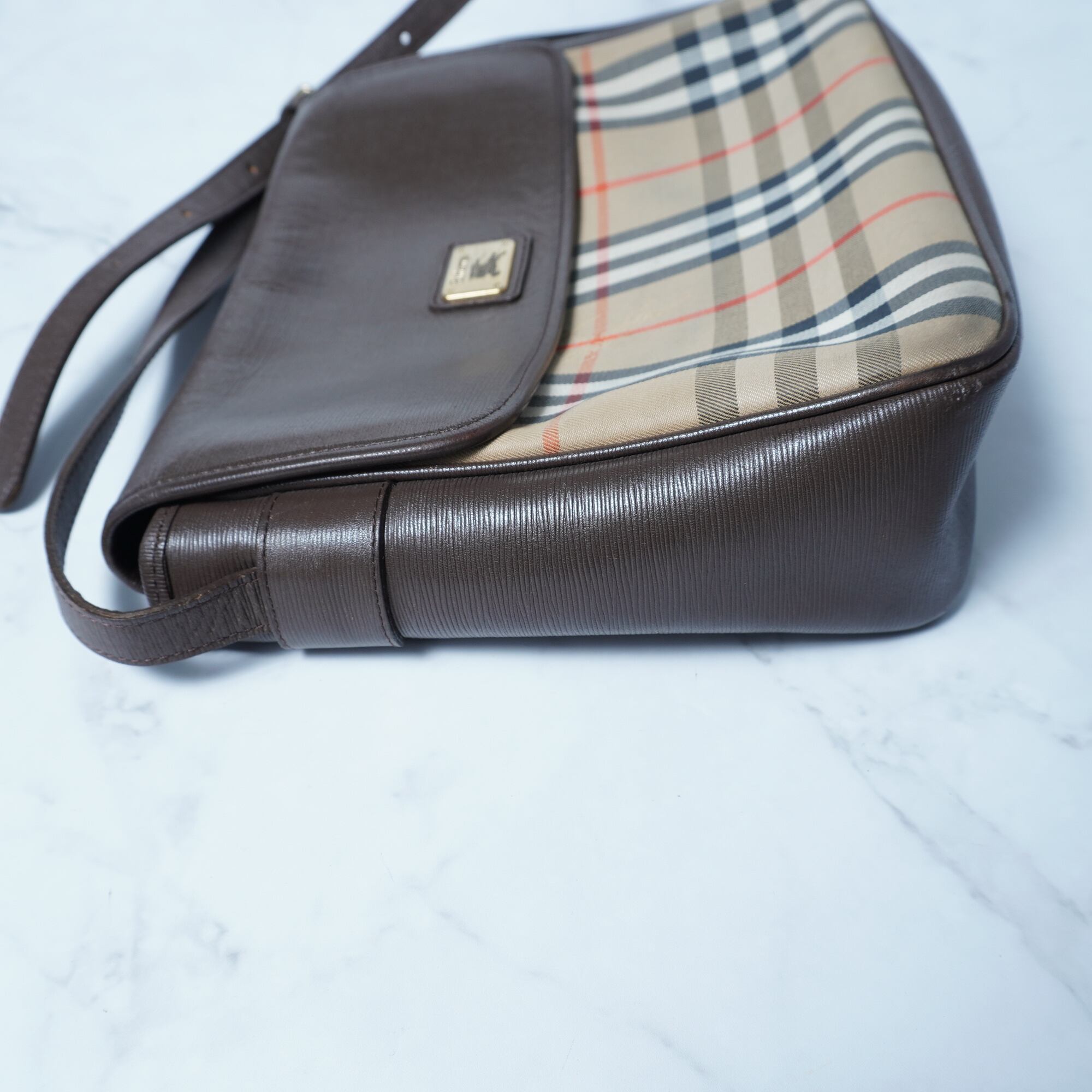 【BURBERRY】バーバリー ノヴァチェックゴールドホースロゴレザー切り替えショルダーバッグ beige&brown