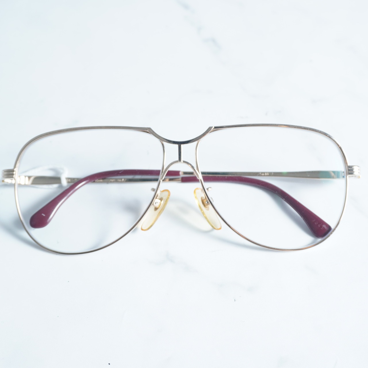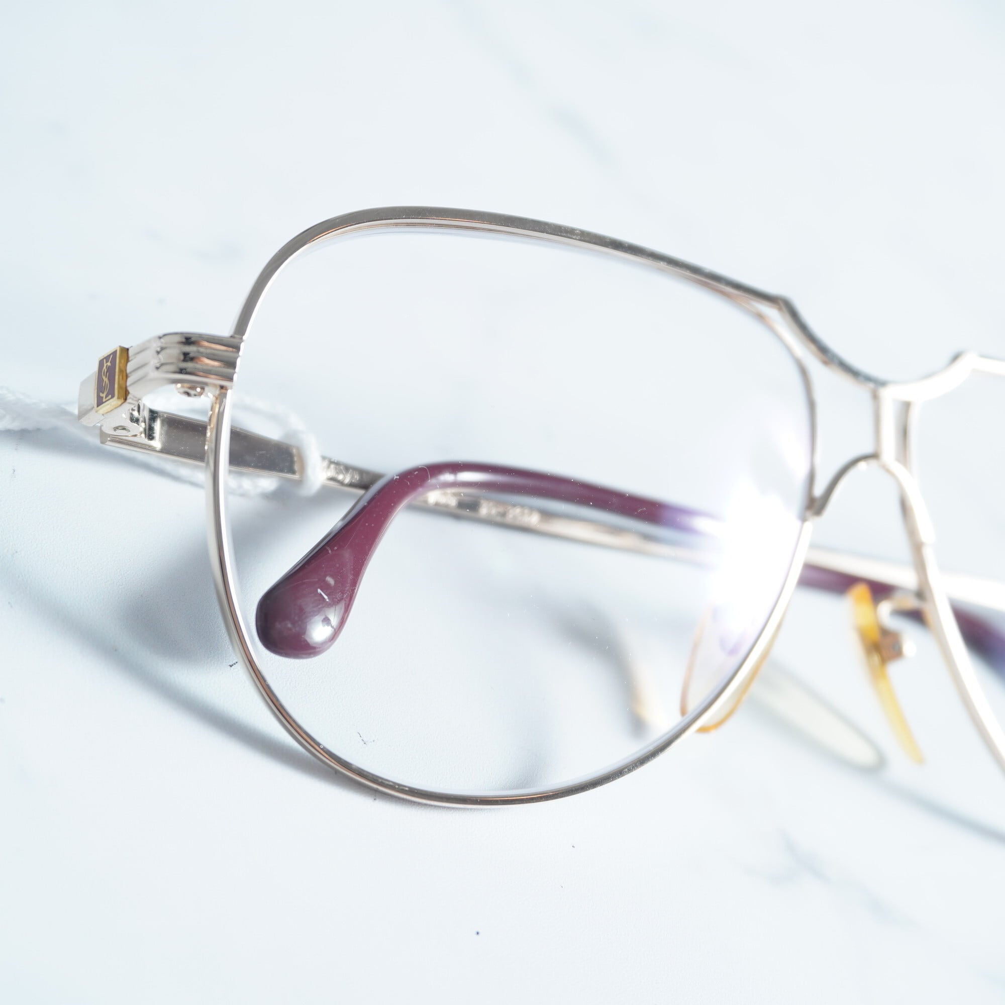 【Yves Saint Laurent】イブサンローラン YSLロゴ刻印メタルフレームティアドロップクリアレンズサングラス gold