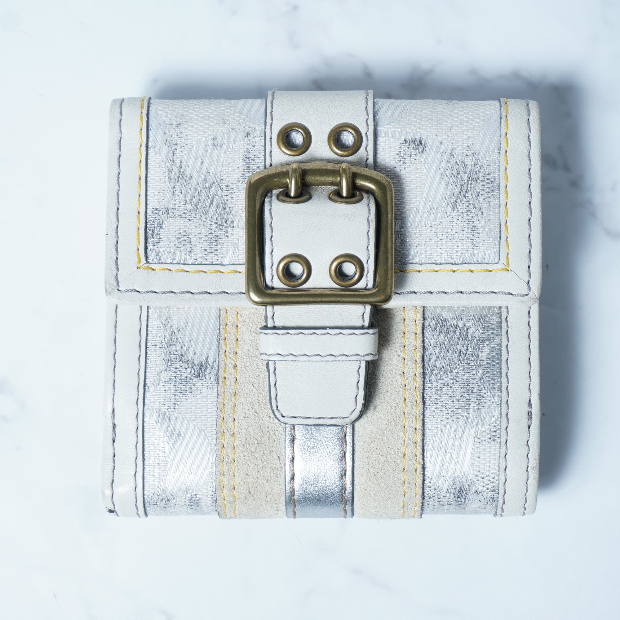 【COACH】コーチ レザー切替ベルトデザイン折りたたみウォレット white