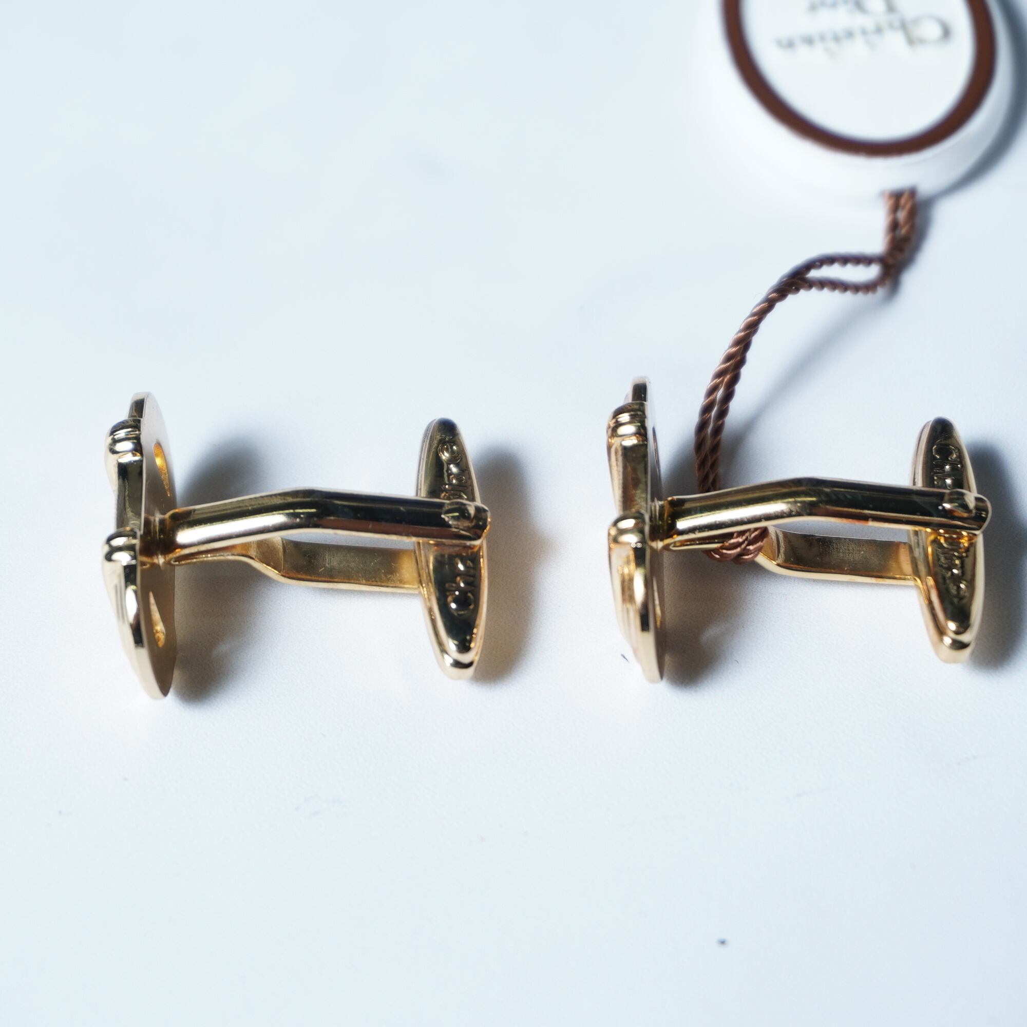 【Christian Dior】クリスチャンディオール ロゴ入 タグ付きカフスピン gold