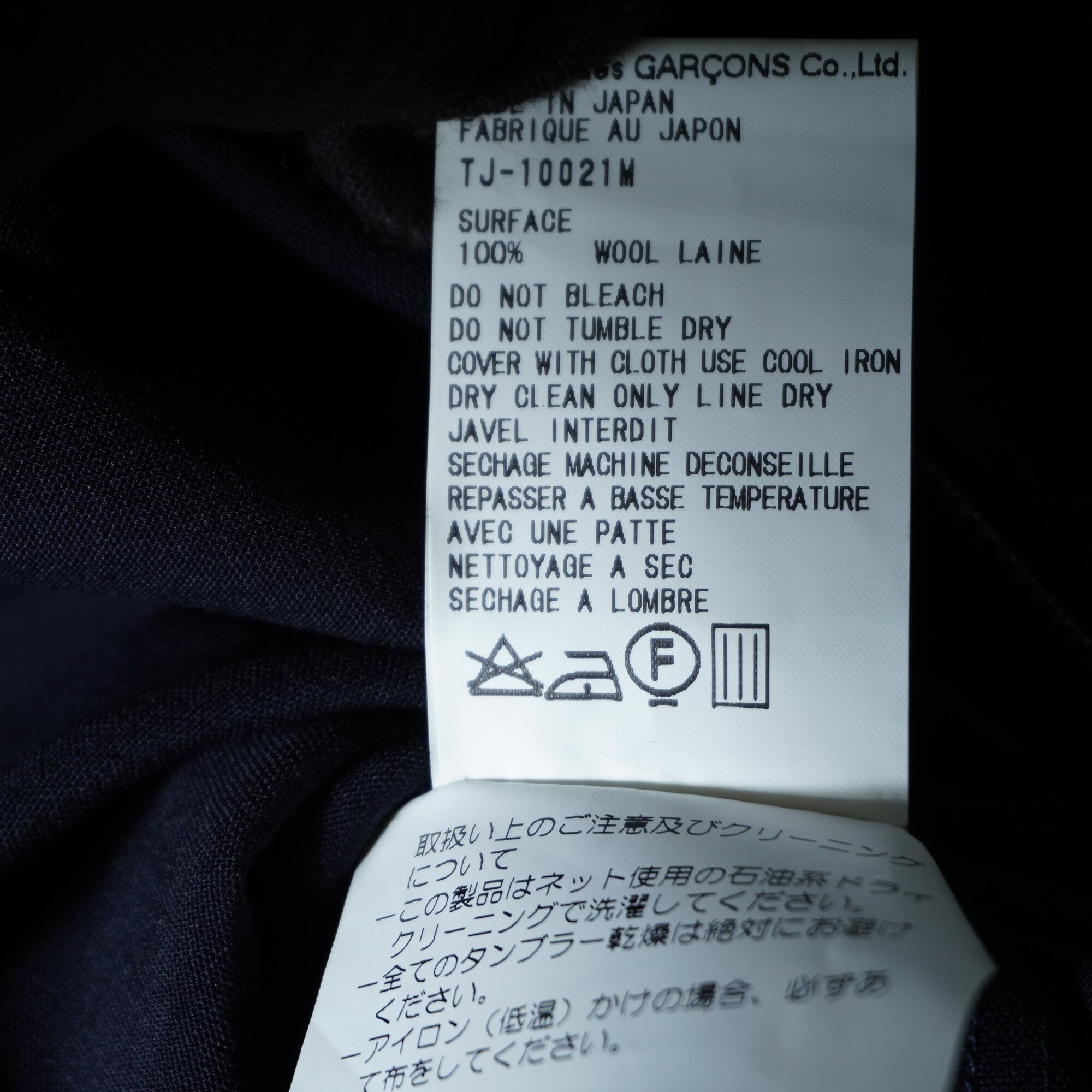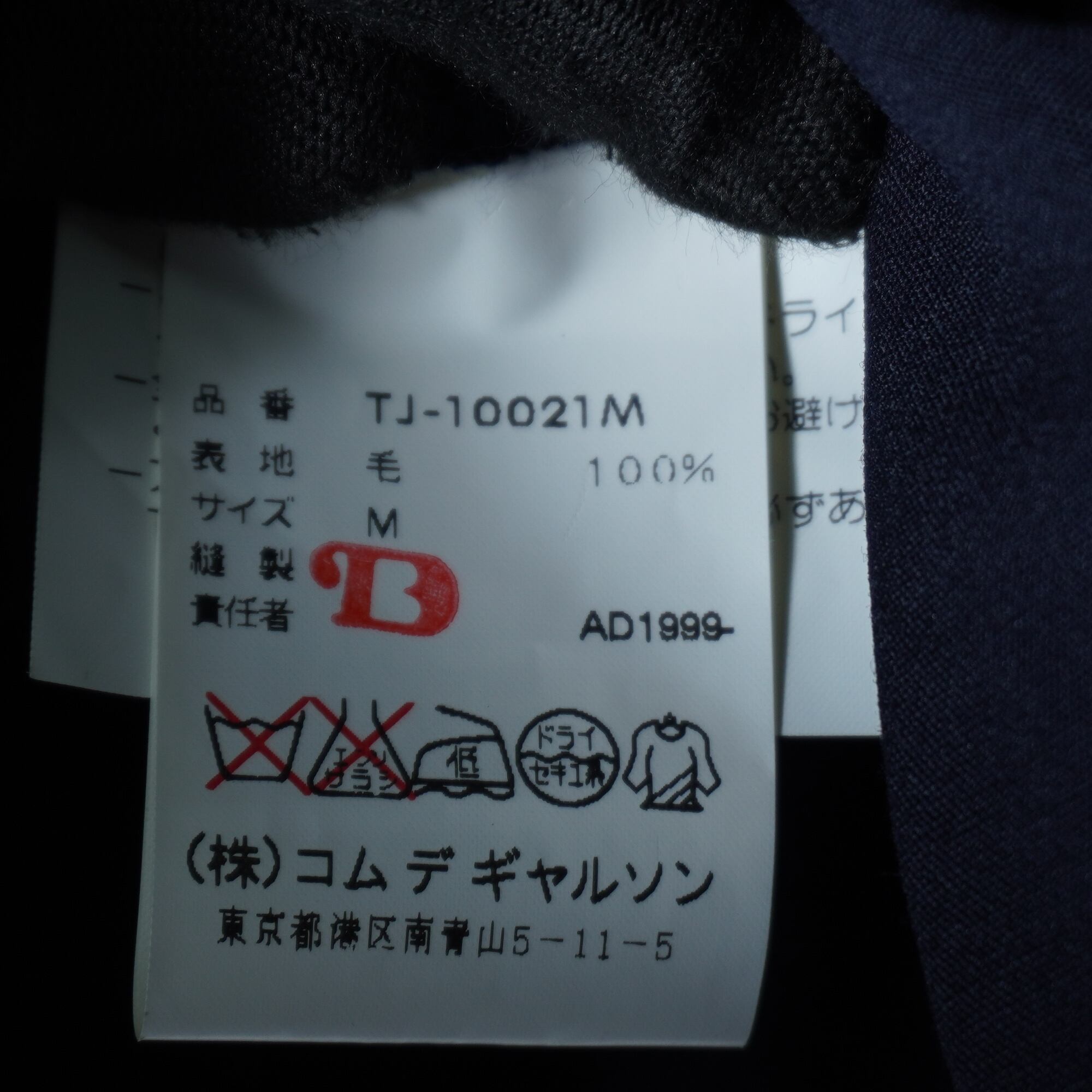 【COMME des GARCONS】コムデギャルソン "99年製” 極美品 タグ付 WOOL100%”ジップジャケット dark navy