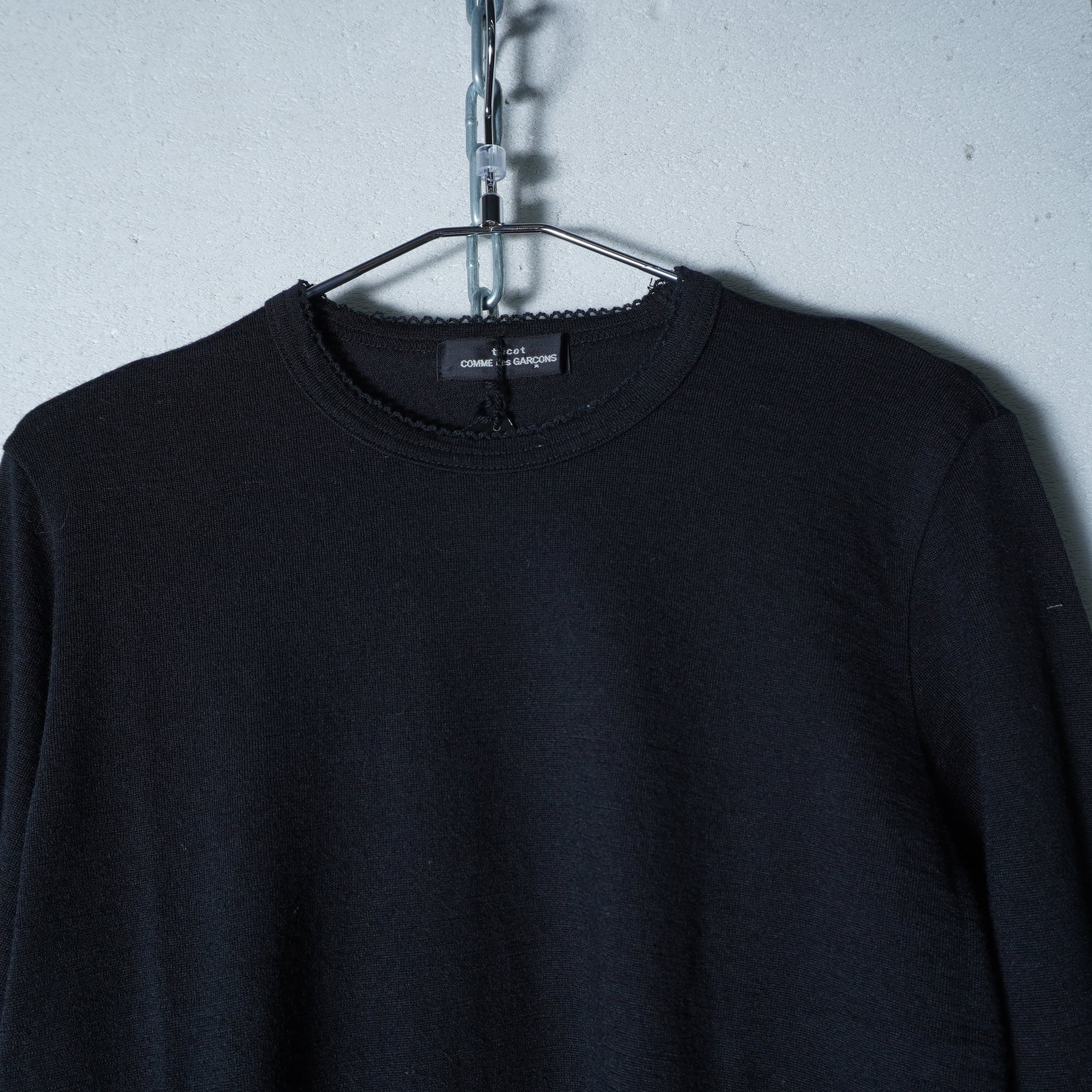 【COMME des GARCONS】コムデギャルソン "98年製”極美品 タグ付 WOOL100%”レースリブニットカットソー black