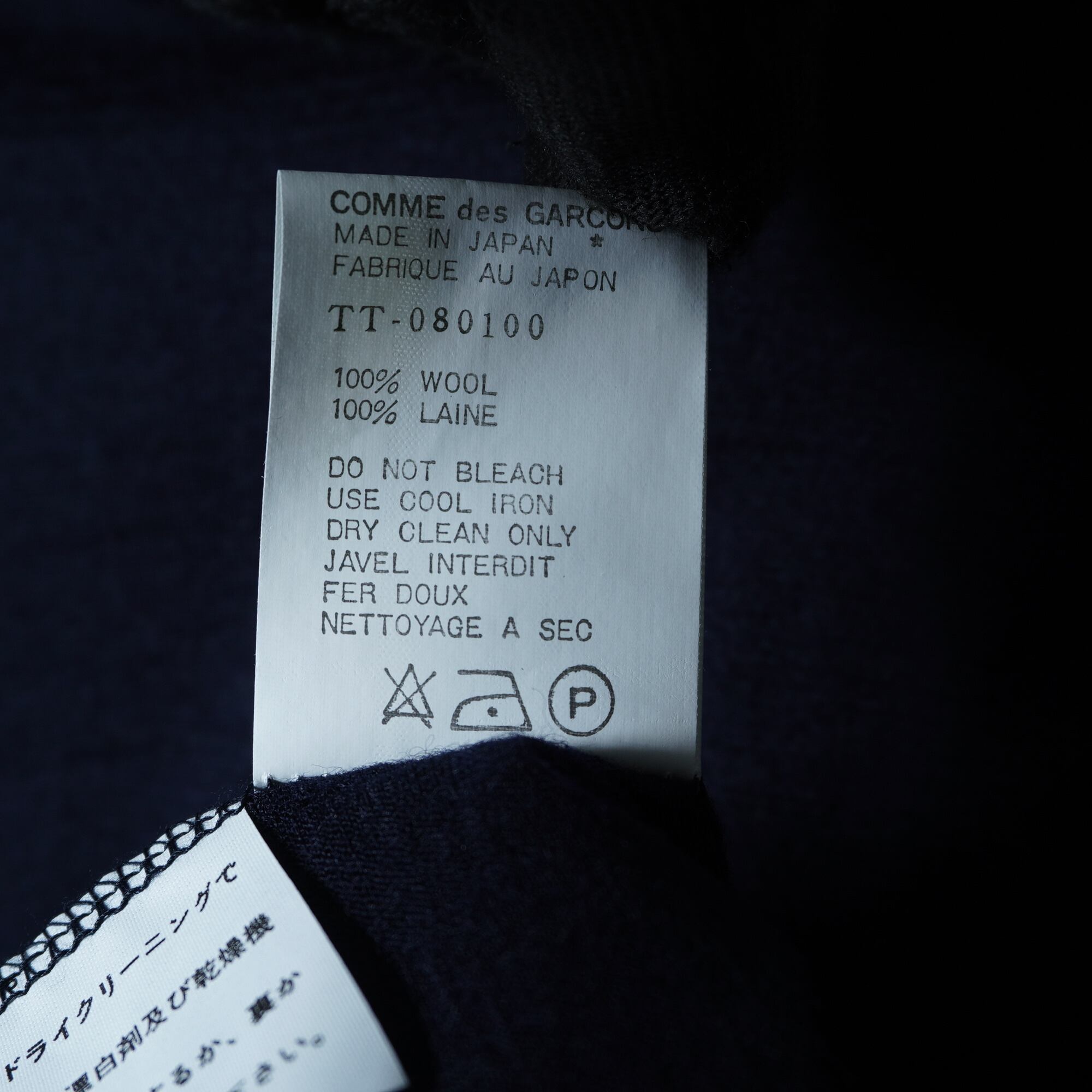 【COMME des GARCONS】コムデギャルソン "95年製” 極美品 タグ付 WOOL100%”モックネックシャツ dark navy