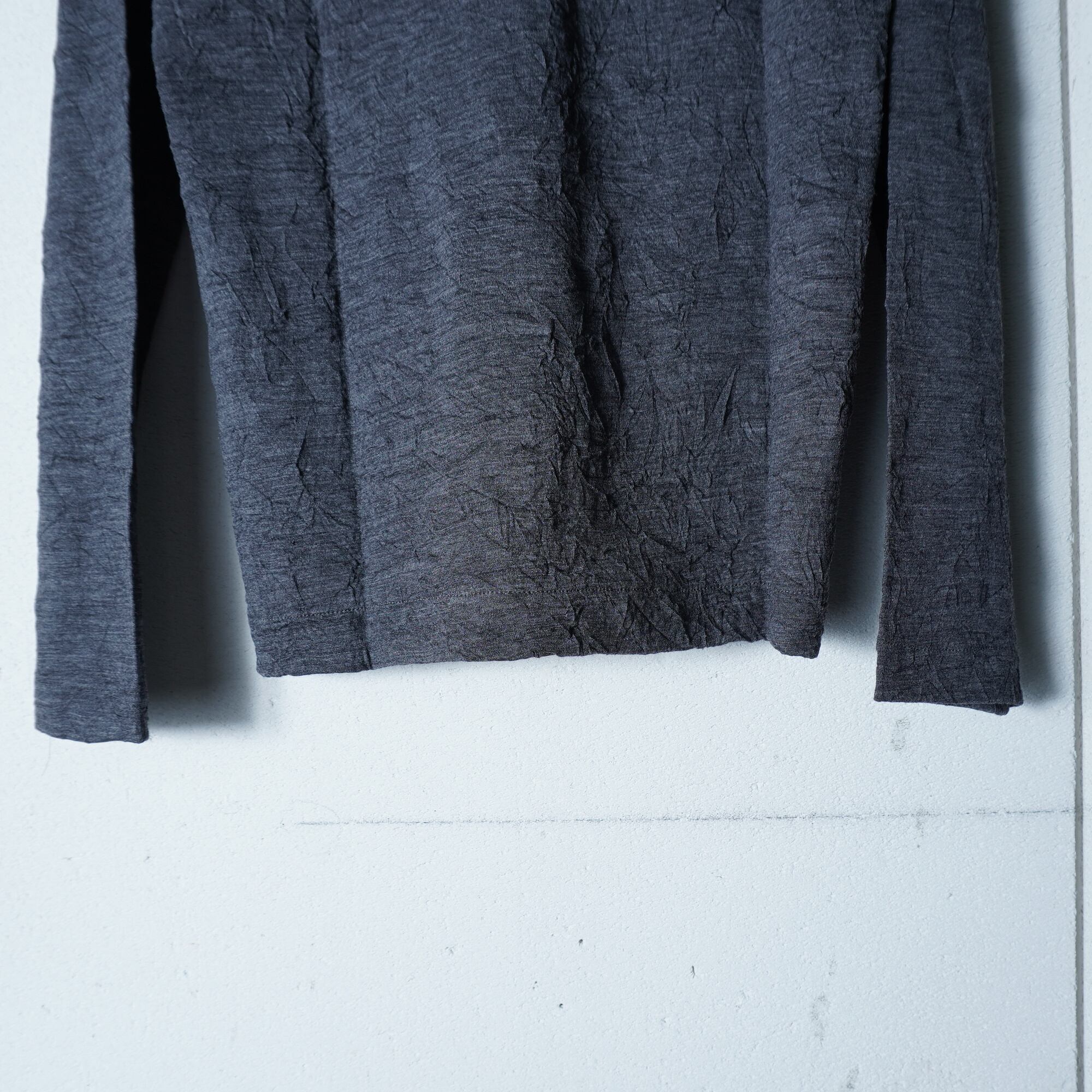 ・洗練されたデザインが際立つグレーの縮絨カットソー