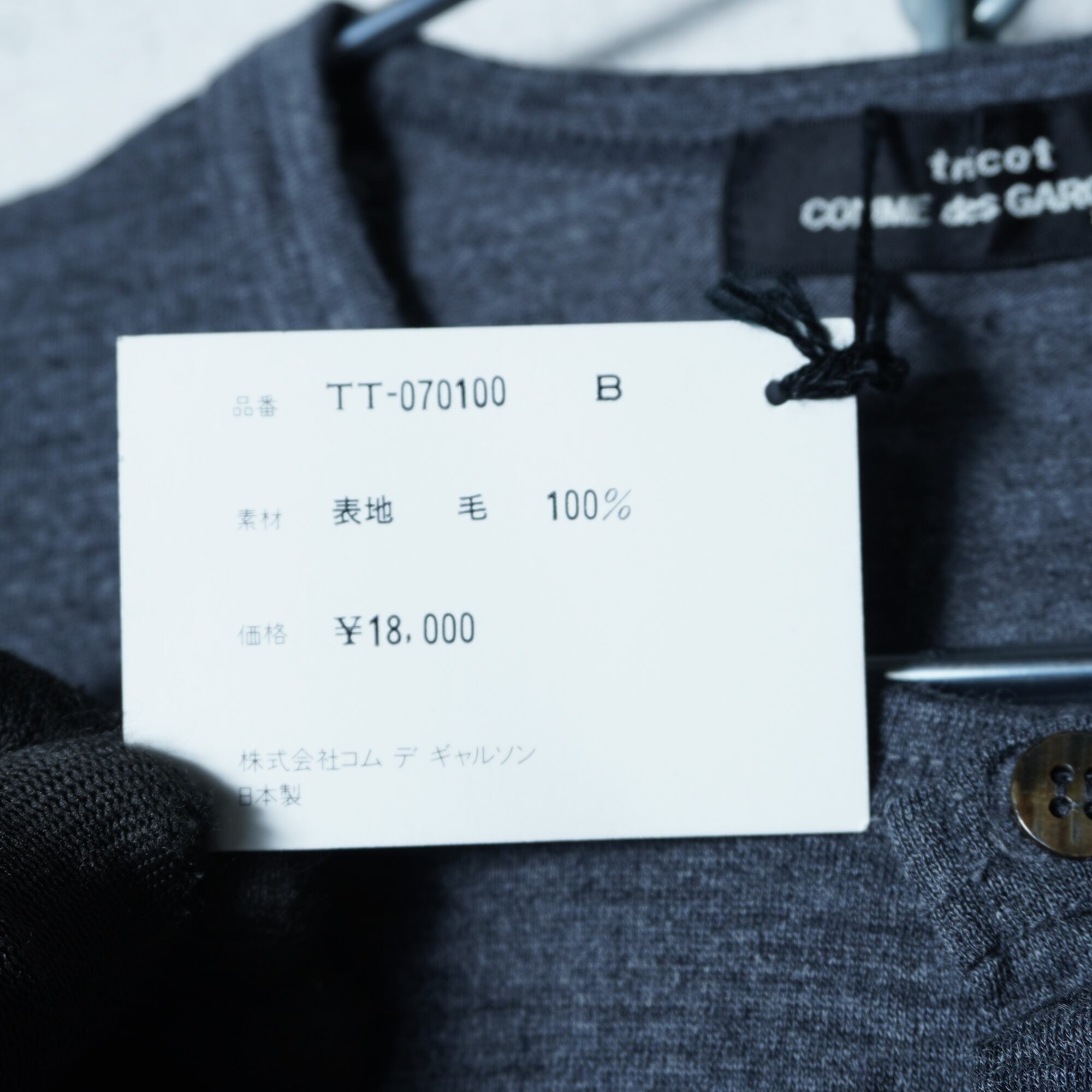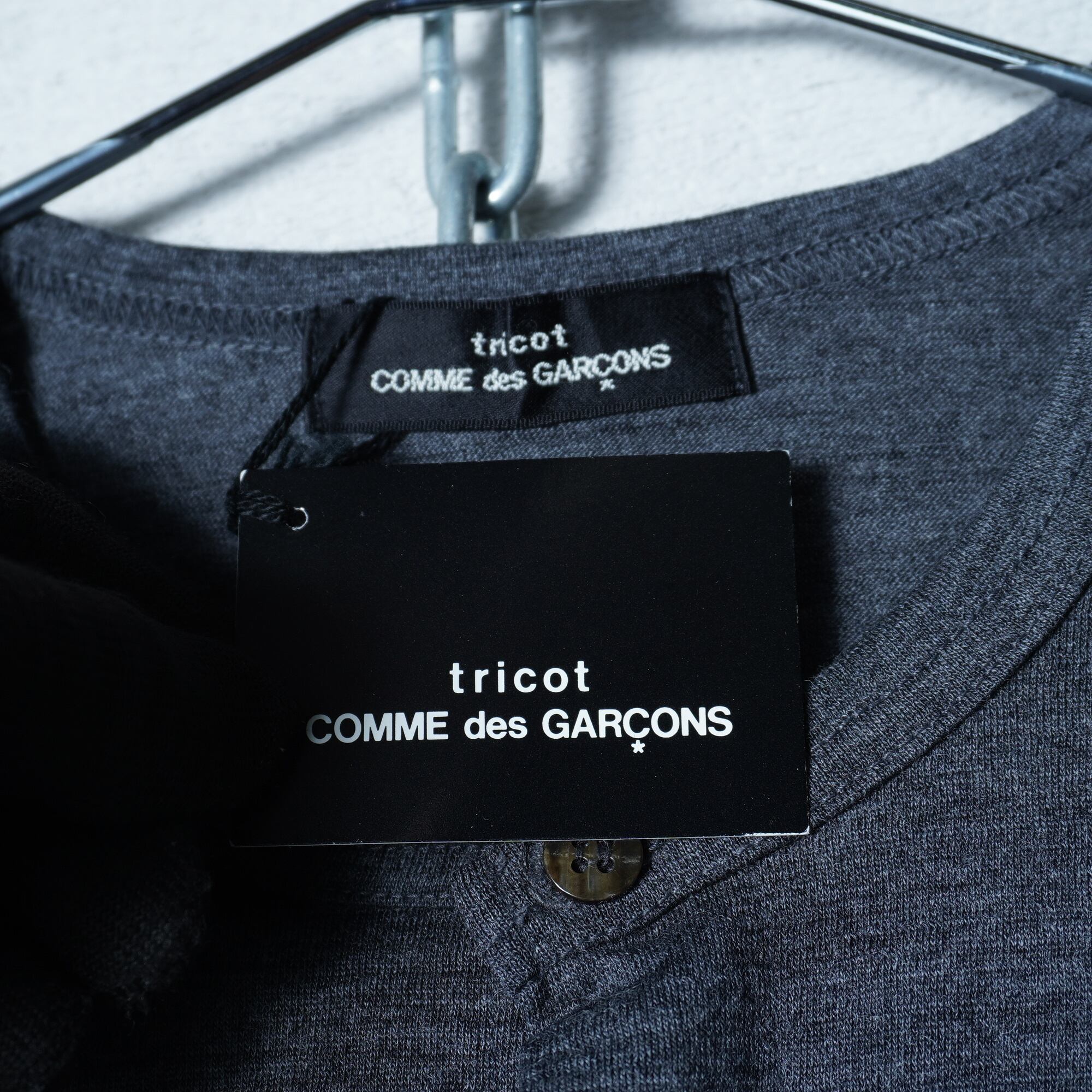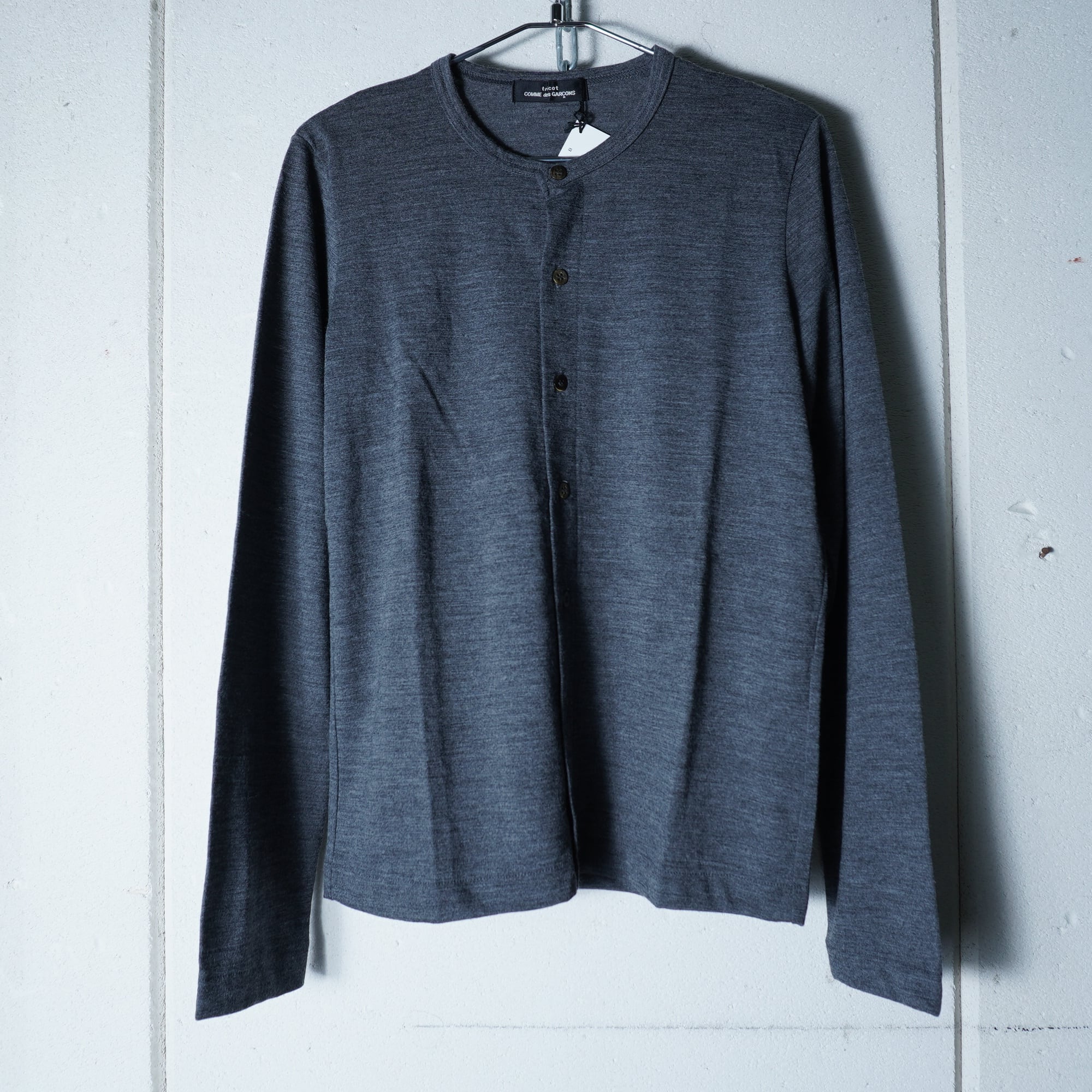【COMME des GARÇONS】コムデギャルソン "98年製”極美品 タグ付 WOOL100%”クルーネックカーディガン gray