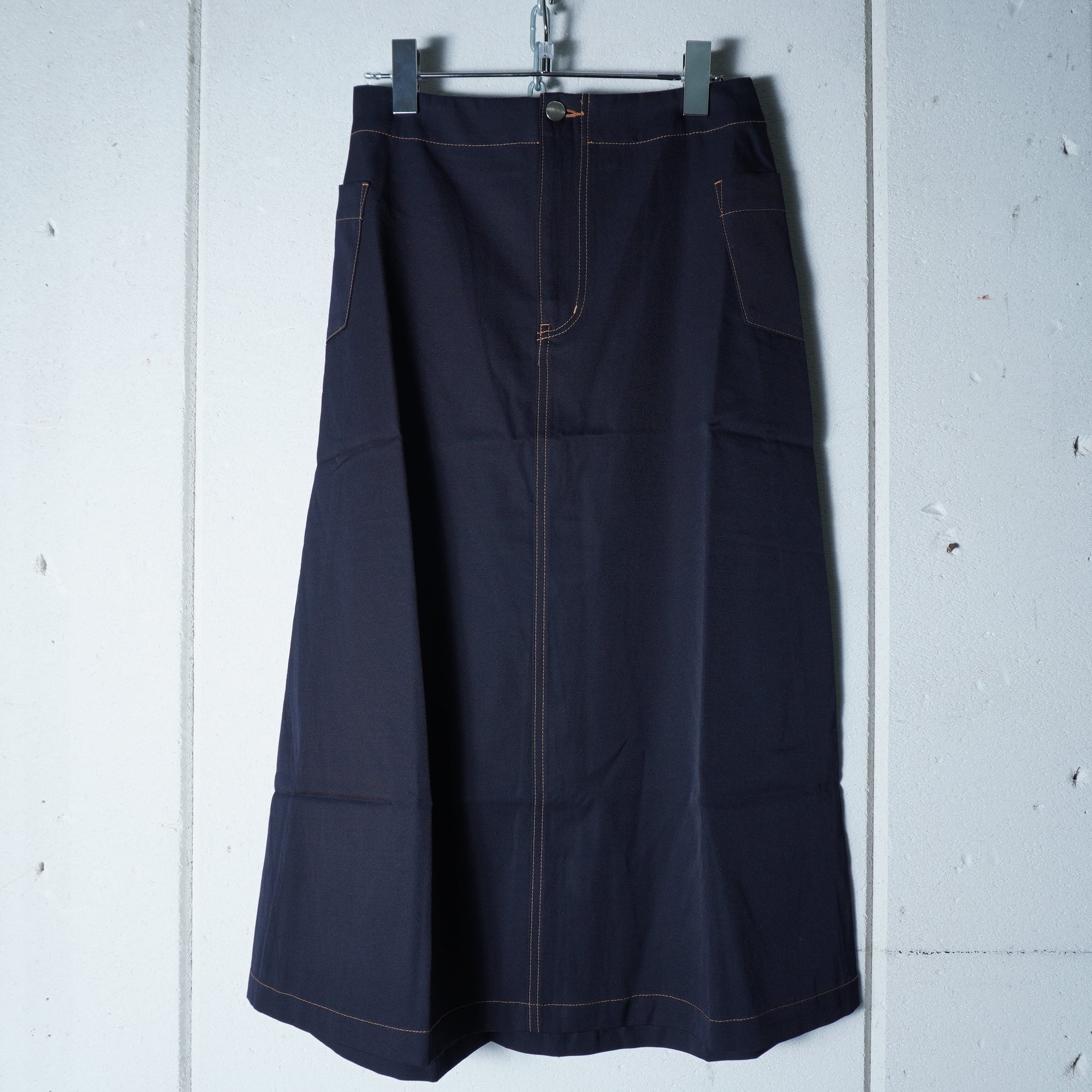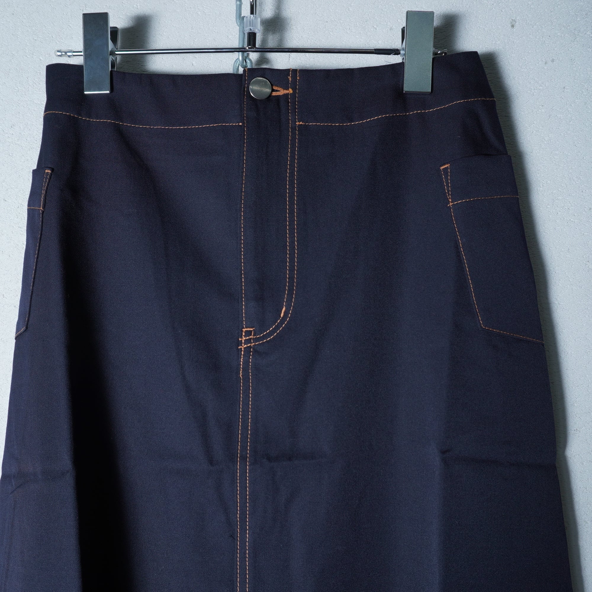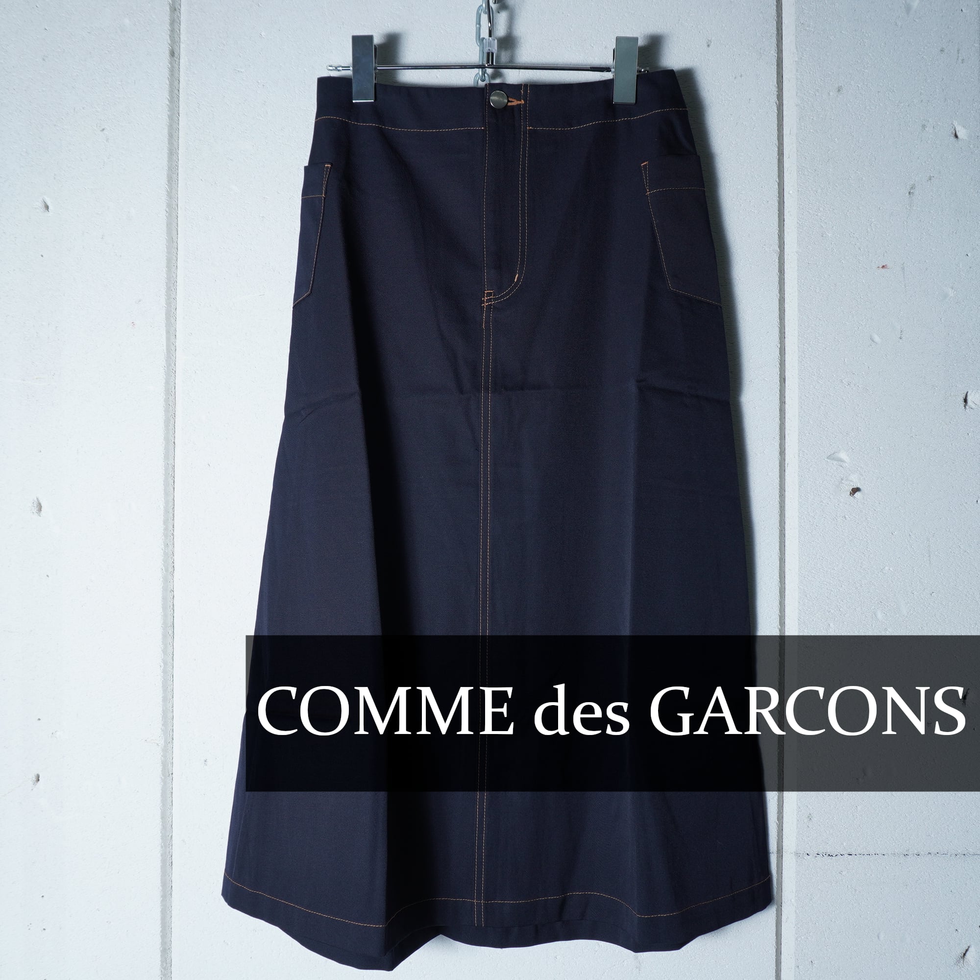 【COMME des GARÇONS】コムデギャルソン 00年製 極美品 タグ付 シンチバックWOOL100% ロングスカート dark navy