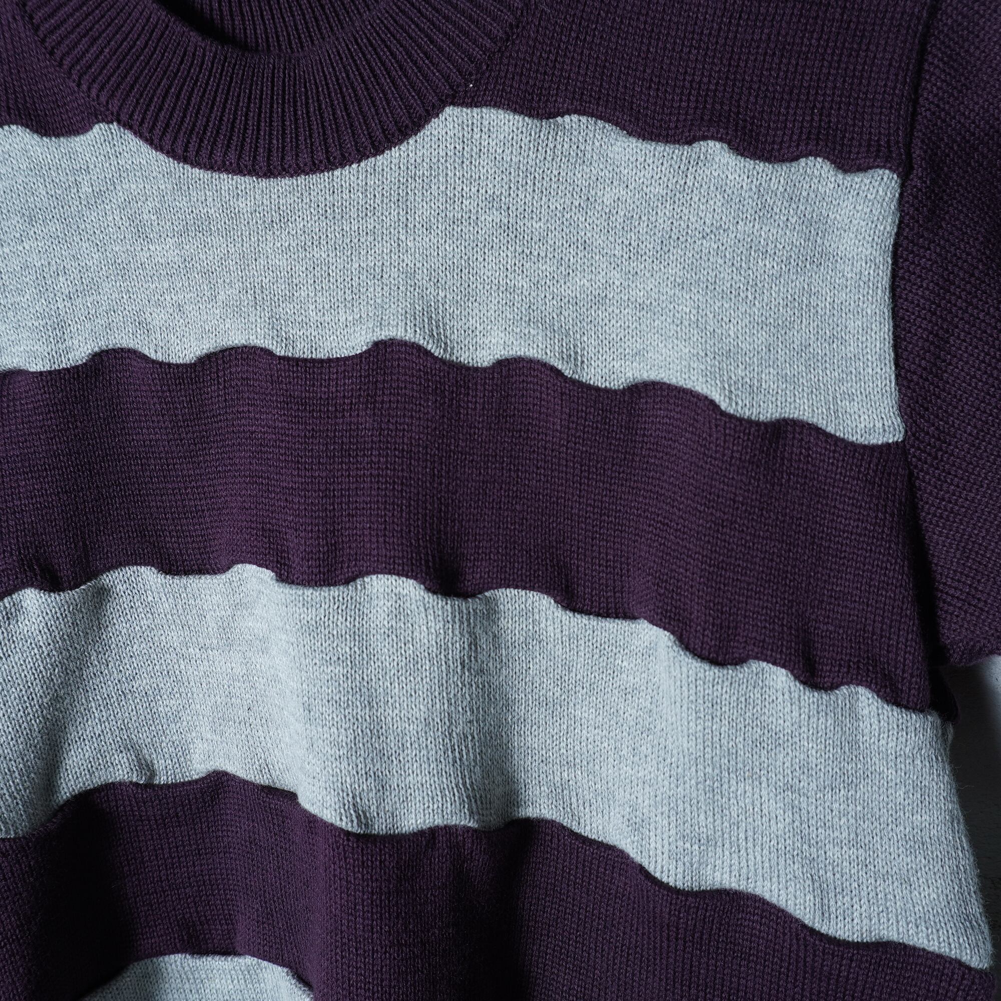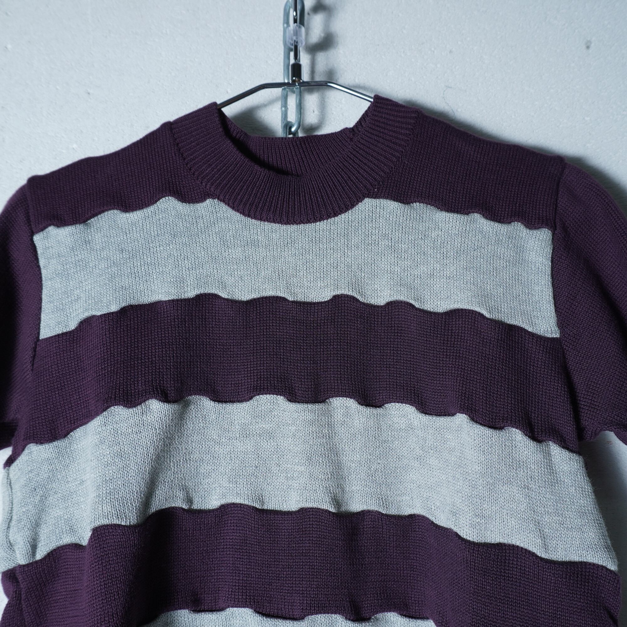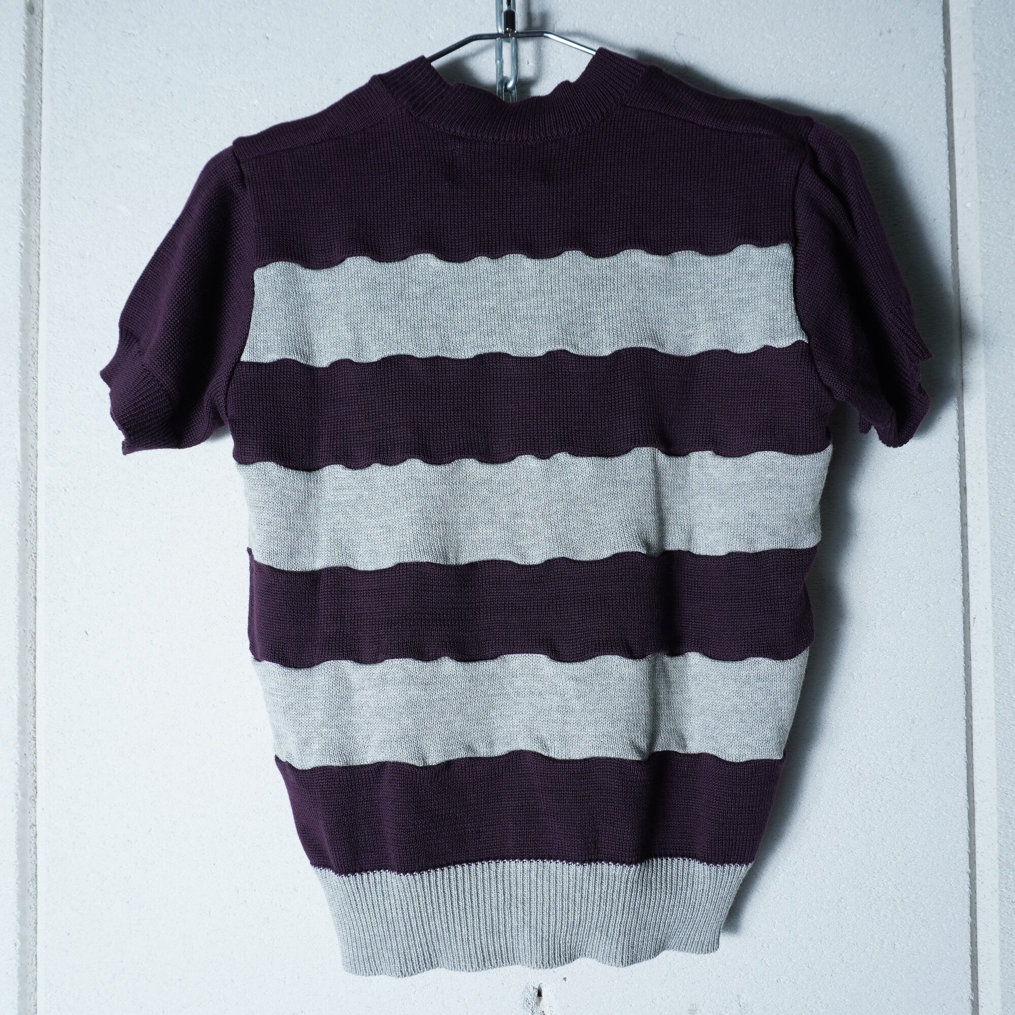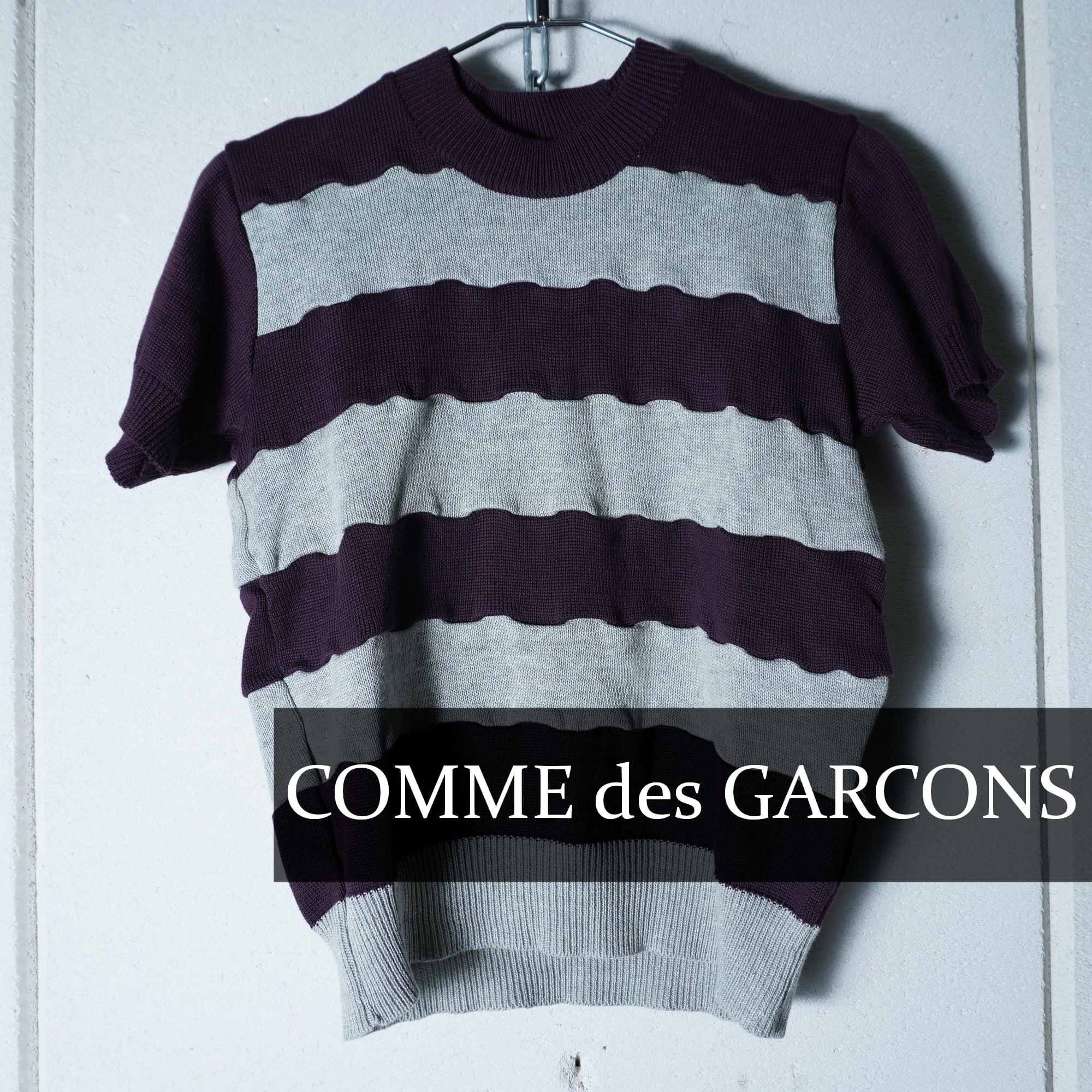 【COMME des GARÇONS】コムデギャルソン 96年製 極美品 タグ付 ボーダーコットン半袖ニット gray&burgundy